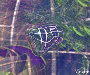 Große Kugel, Metallisches Mat, etwas transparent gemacht, Foto auf die Kugel (Einstellung Parametisch). 2 Metabälle (Mat Spiegel) und ein RAdiallicht in die Kugel zum Ausleuchten gebracht. Hier das Ergebnis: -