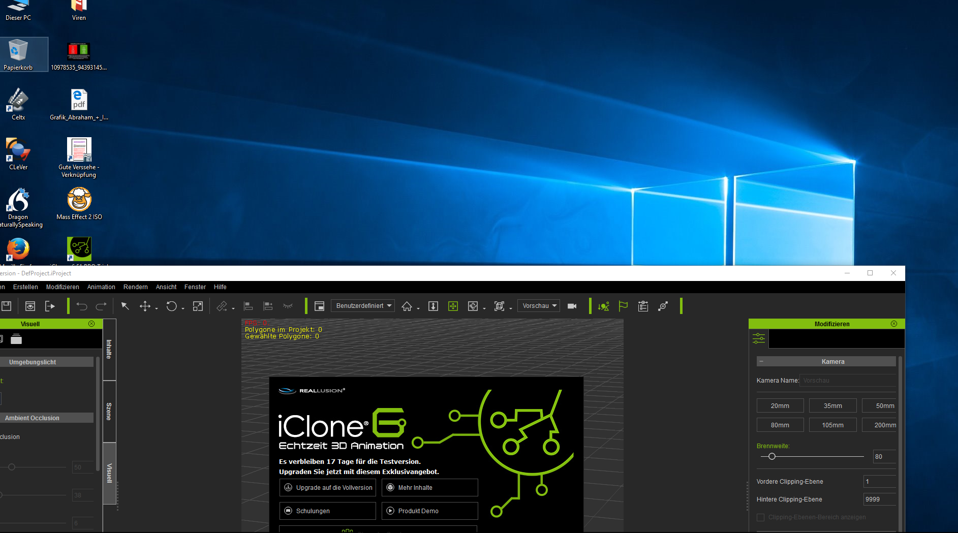 gemacht. Leider kann ich mit dem Programm iClone 6 nicht arbeiten,weil