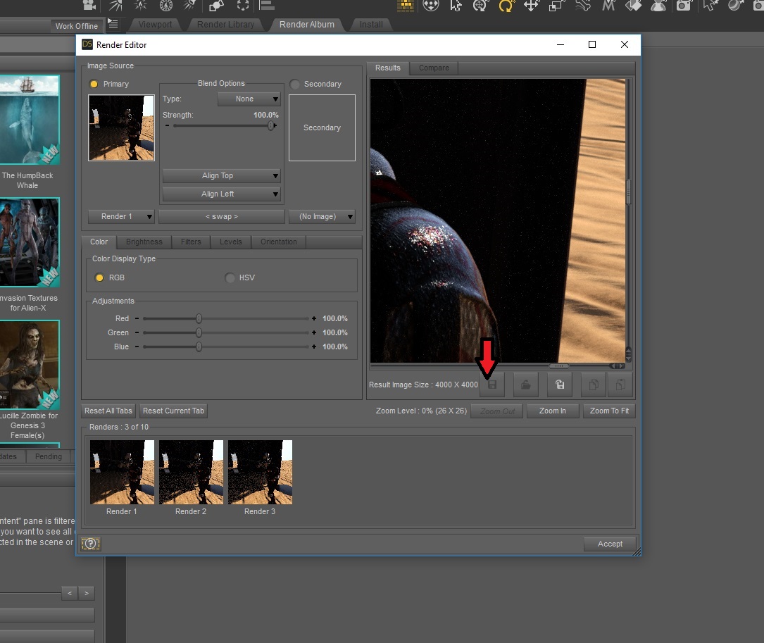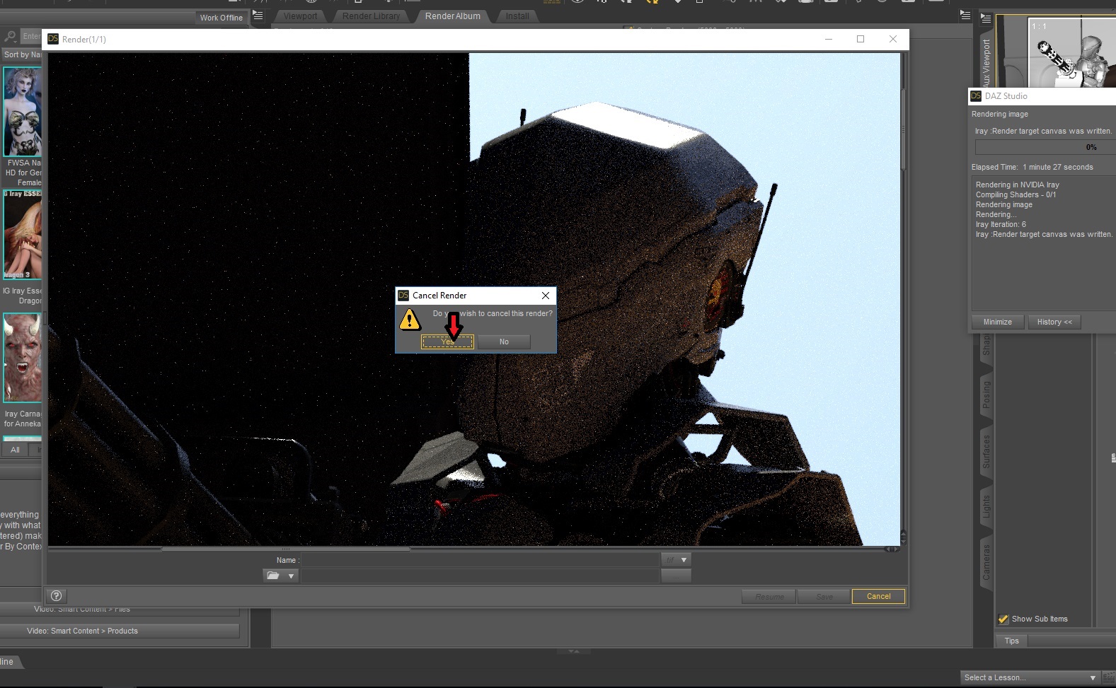 wenn man nun ein Bild speichern möchte kann man nachdem man das Abrechen bestätigt hat das Renderbild minimieren !! Nicht Schließen oder Speichern!! und im Render Album auf das ensprechende Bild doppelklicken --> tut 6