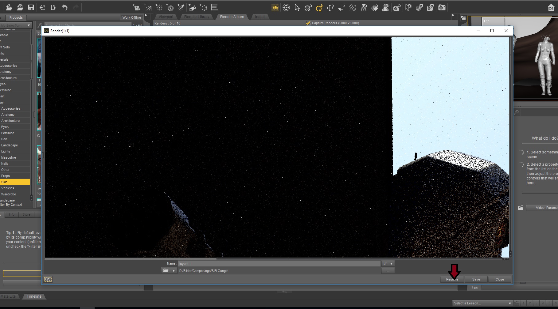 Solang man das Fenster mit dem Renderbild nicht schließt oder speichert kann man das Rendern mit Resum immer wieder aufnehmen. -->tut5