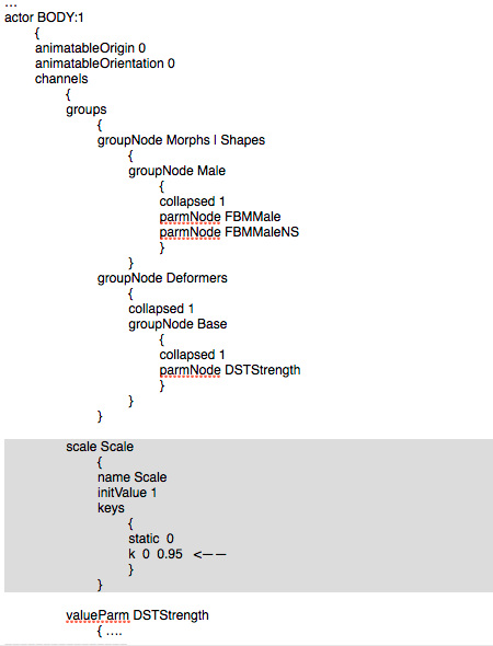 Die Möglichkeit Poser Dateien auf einfache Weise zu editieren ist eins der Features die ich an Poser mag. Vieles geht in einem Editor einfach schneller und einfacher als sich durch irgend welche Programm-Menues zu hangeln. In VUE z.B. habe ich diese Möglichkeit schon sehr oft vermisst.