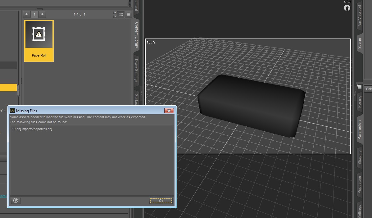 Klingt auch gut! Aber jetzt kommts, nicht lachen, aber ich weiß nicht, wie ich diese Paperroll in DAZ öffne? Das ist eine *.duf, ich hab, was bestimmt falsch war, einfach einen Ordner manuell unter Windows eröffnet im bestehenden Props-Ordner in der MY-Library. Dann bin ich im Content-Manager auf diesen Ordner gegangen, da steht dann auch die Paperroll, aber wenn ich die doppel-klicke, bekomme ich eine Fehlermeldung, das irgendwas fehlt und in die Szene geladen wird die Paperroll als riesige schwarze Kiste ... sorry!