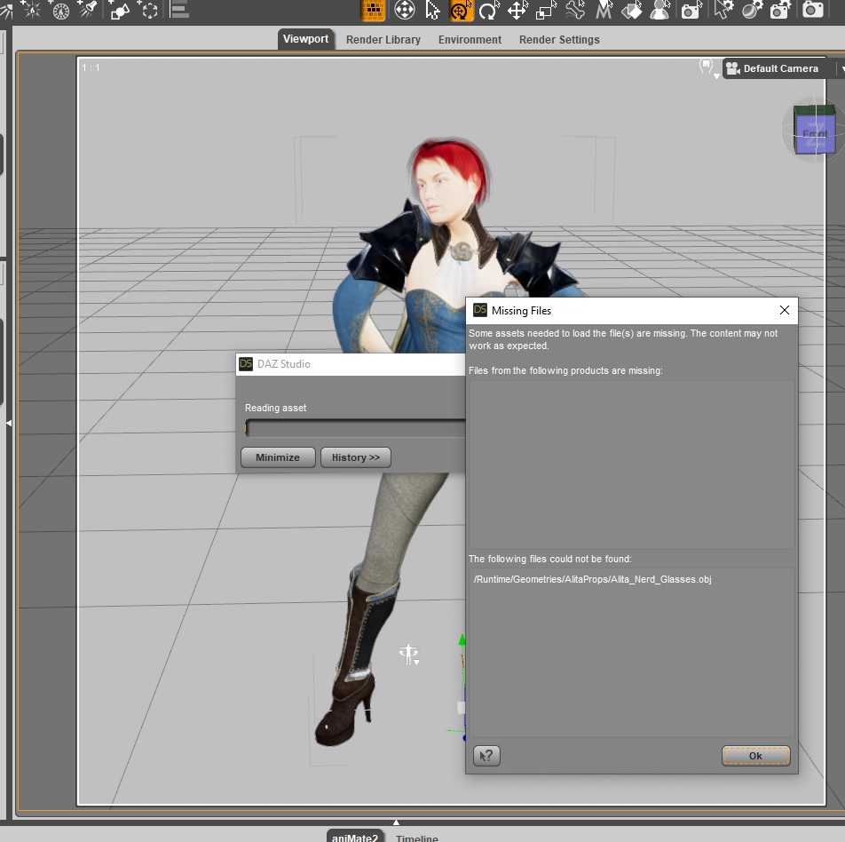 Ich sehe meinen gewohnten Inhalt, aber wenn ich aber etwas aufrufen möchte erscheint die Nachricht "missing files" (runtime/textures usw.) und man hat diese klobigen Formen in der Szene