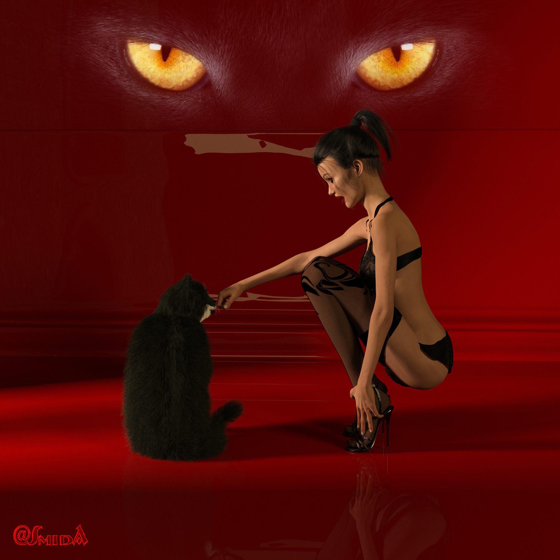 bei der Dame in Rot hätte ich vermutlich das saugende Supertier ein Stück nach hinten gesetzt..saugen nicht vergessen, Füsse bleiben kleben wo sie sind..und schon hättest Du es. Will sagen, Fußgelenke mehr beugen...Hintern dann etwas näher an die Fersen bringen - dadurch würdest Du den Schwerpunkt schon verlagern ohne die eigentliche Pose zu sehr zu verändern...idealerweise kannst Du eine Senkrechte zwischen Hinterkopf und Absätzen ziehen.