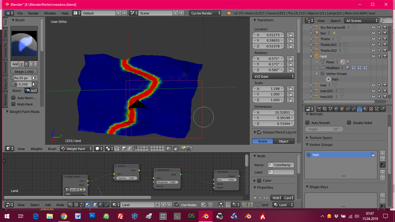 Leider funktioniert das mit dem Pfad nicht so wie es soll. Ich habe auf der Plane einen Pfad definiert und aus dem soll sich das Gras raus halten - tut es auch