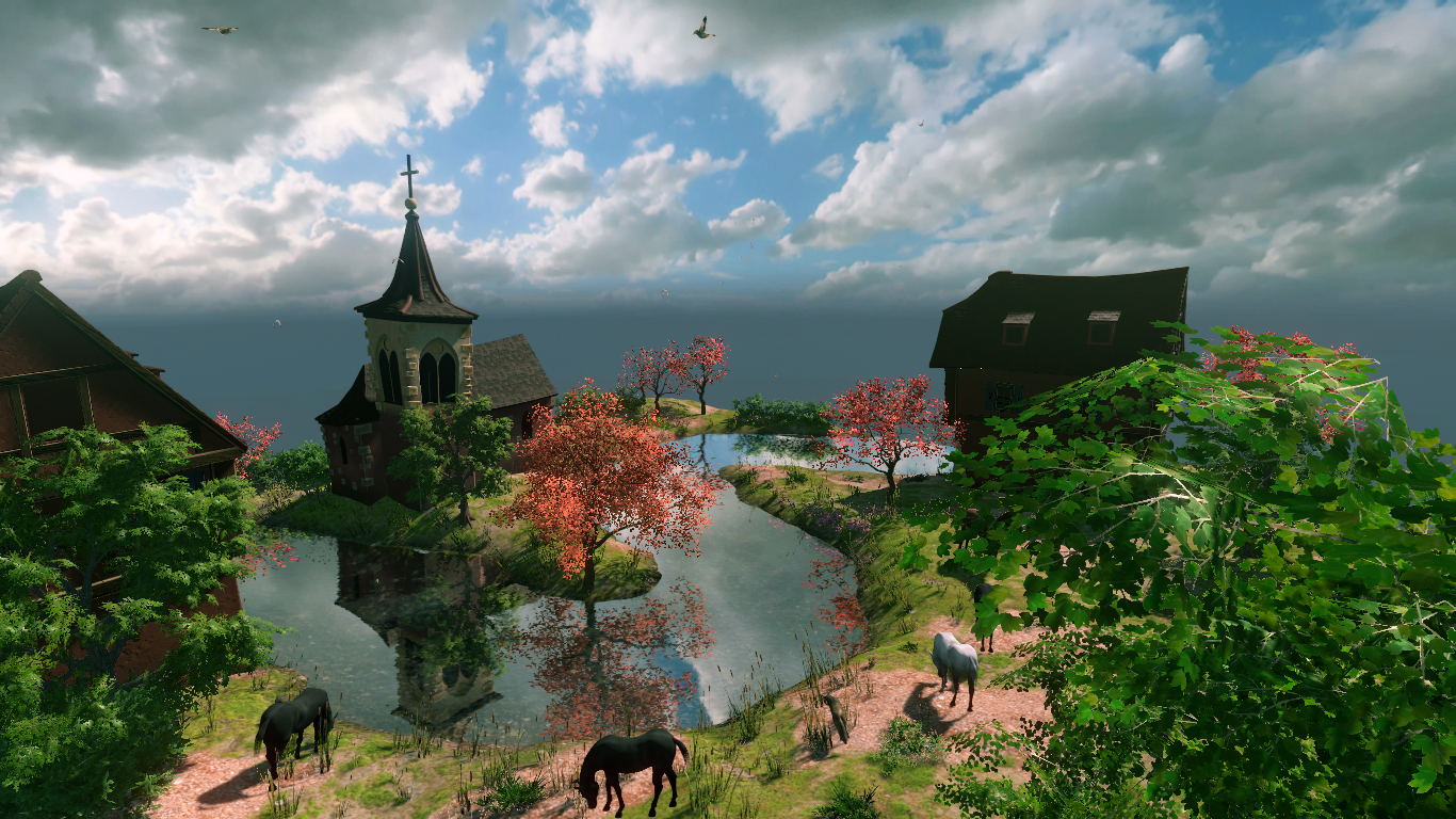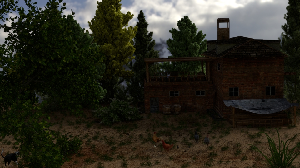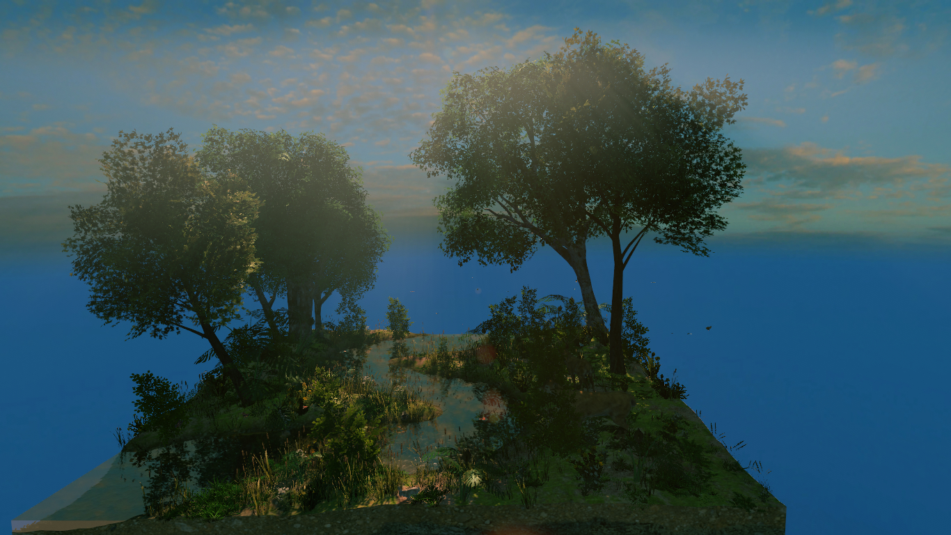 Die Bäume sind mit einem Addon in Blender entstanden und die Wolken sind ein HDRI