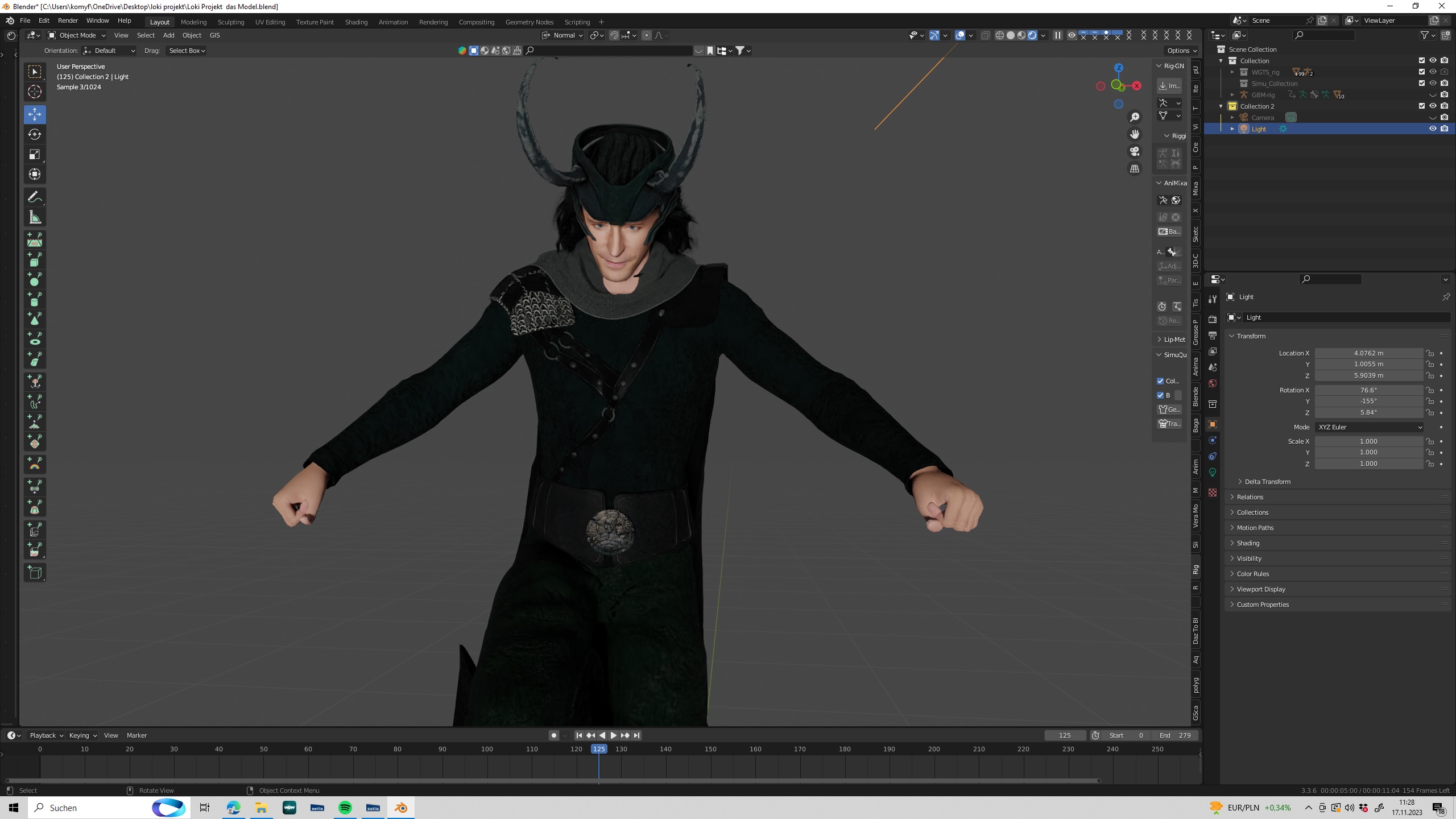Ich liebe den Geruch von einen schönen Orangensaft am Morgen und der erste Animationstest---es läuft ganz gut. Loki steigt dank Rng Rig und importierten BHV Animation die imaginäre Treppe hoch.Schöööön langsam,schließlich solls ja nicht eilig aussehen bei den gewichtigen Wurzelranken im Schlepptau