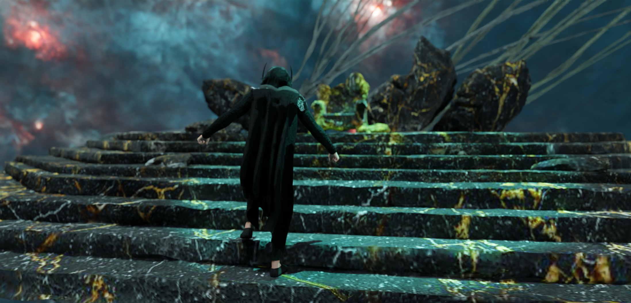 Wooow ,sieht schon beeindruckend aus,aber mich gruselts doch vor den ganzen Nodes Verknüpfungen...ach du meine Güte o.o aber das kommt schon sehr den wabernden Cape hinne mit den vielen glühenden grünen Strängen