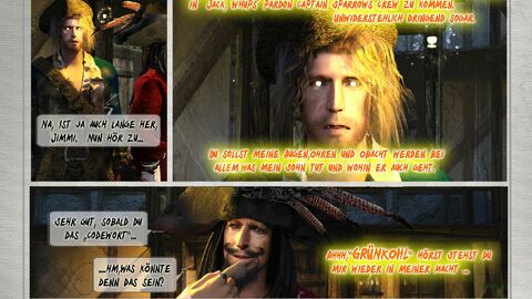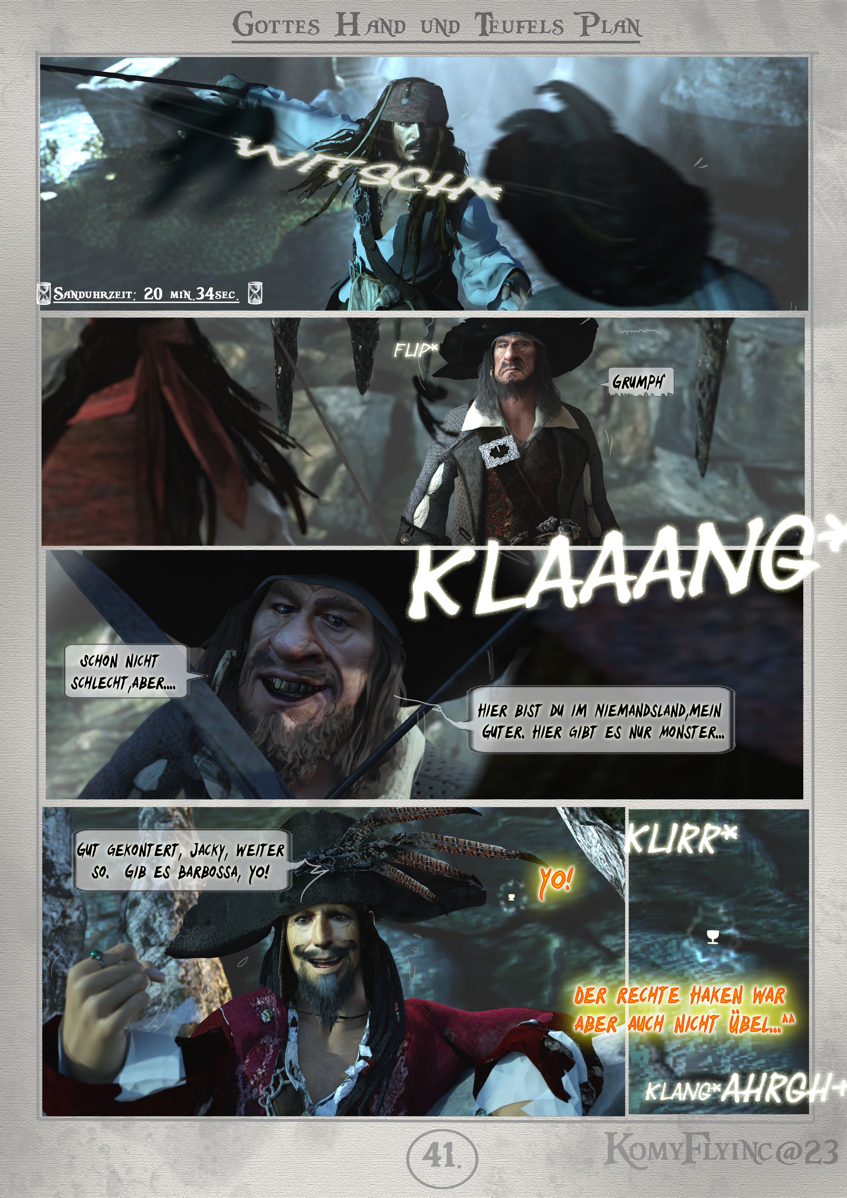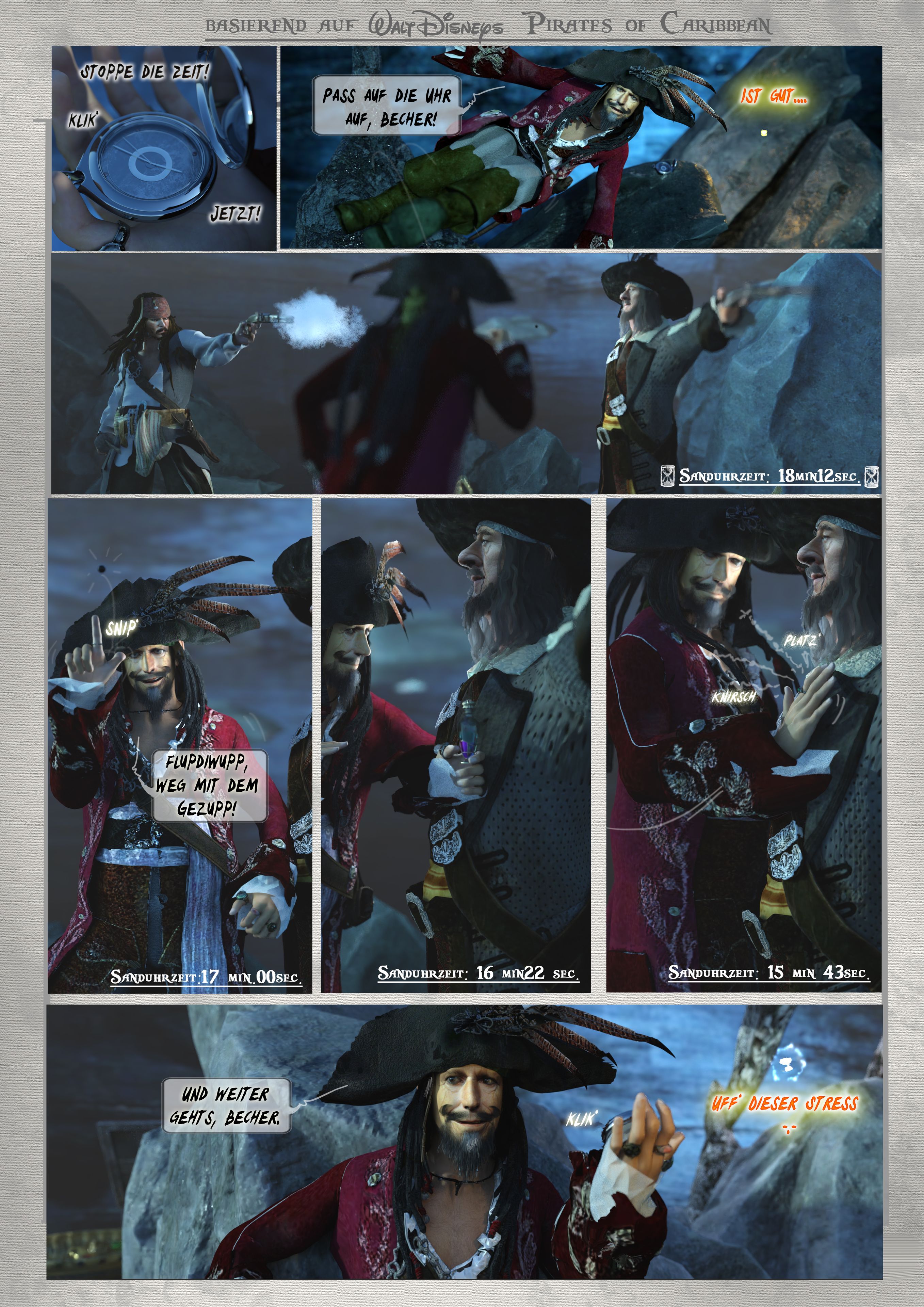 T.S kommentiert es lakonisch: Hm, typisch für Barbossa-theatralisch wie gehabt.
