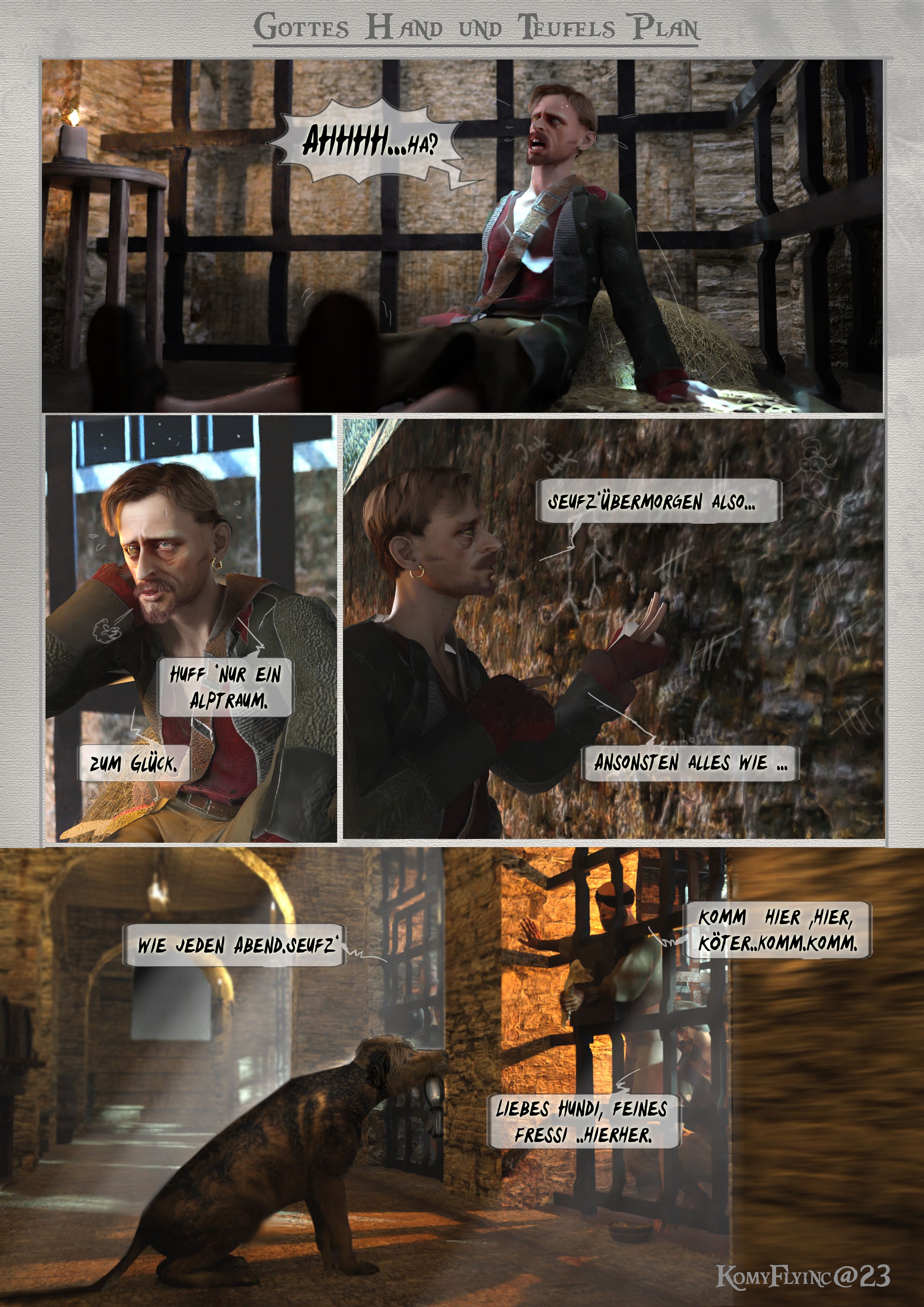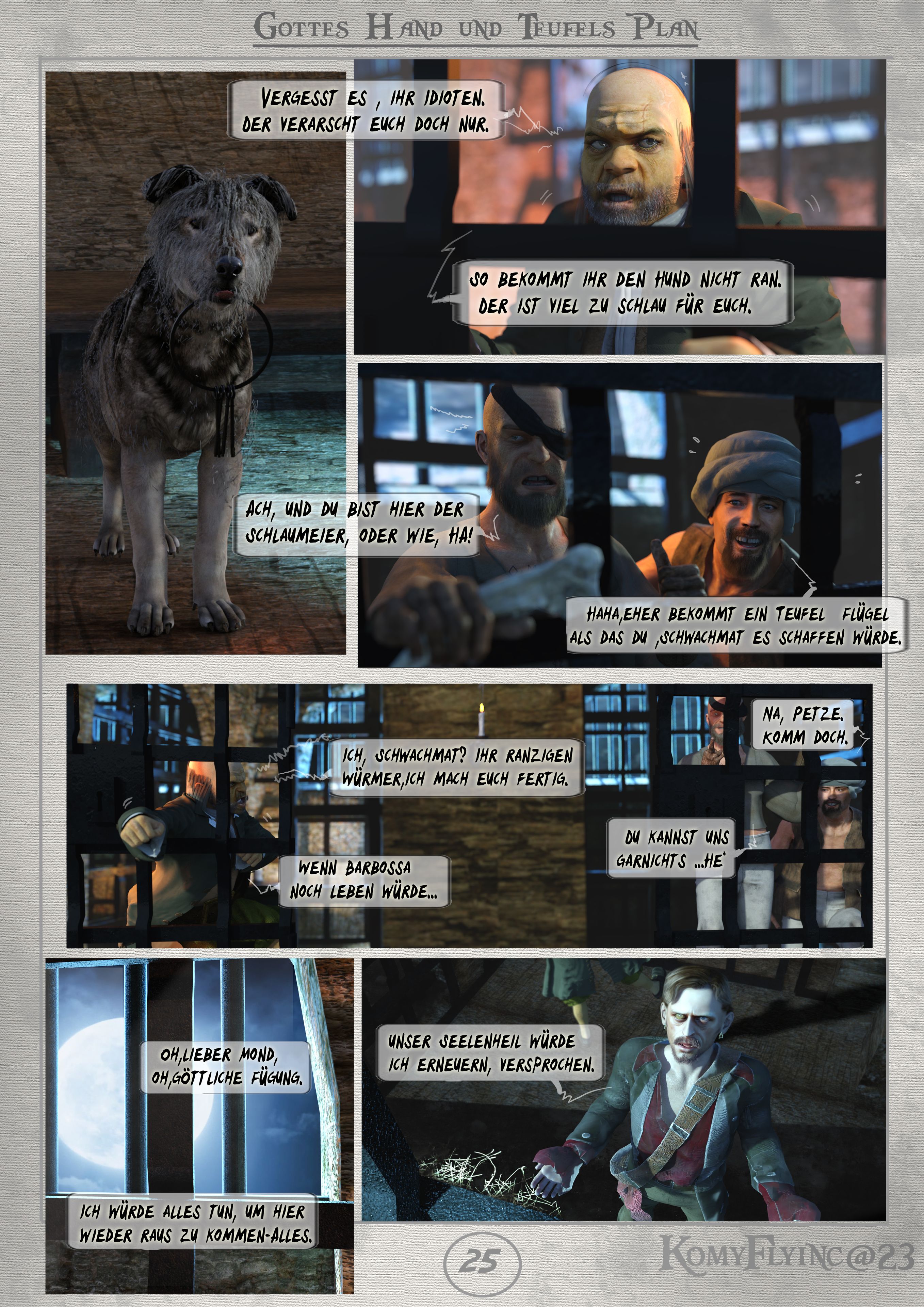 Ragetti geht derweil zum vergitterten Fenster und schaut zum aufgehenden Mond ,der lieblich friedlich scheint. Ragetti packt fest die Gitter und seufzt laut :
