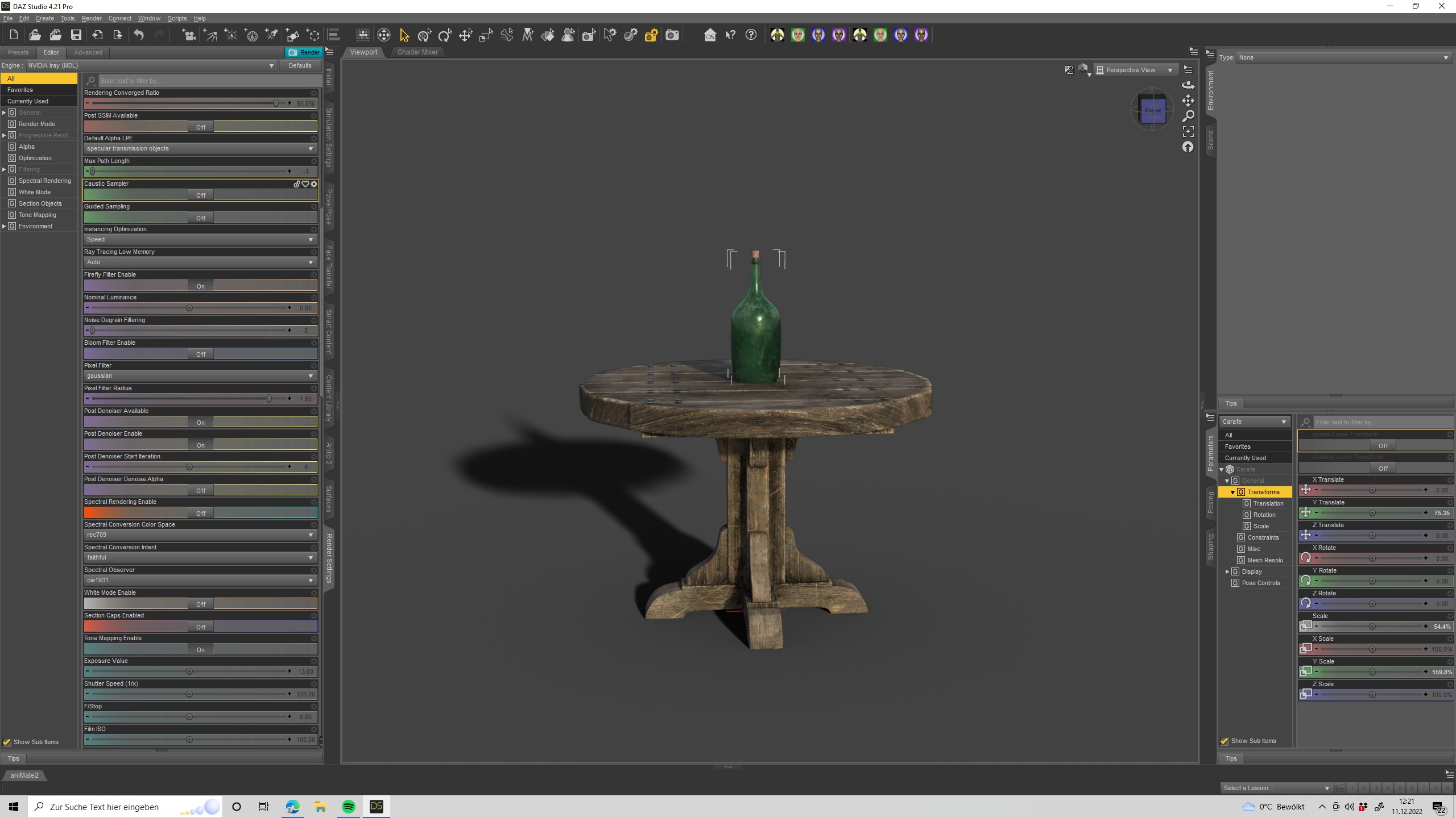und tun erstmal dann dein Tisch und Flasche hinein-so! Und aktivieren im Rendersetting folgendes: