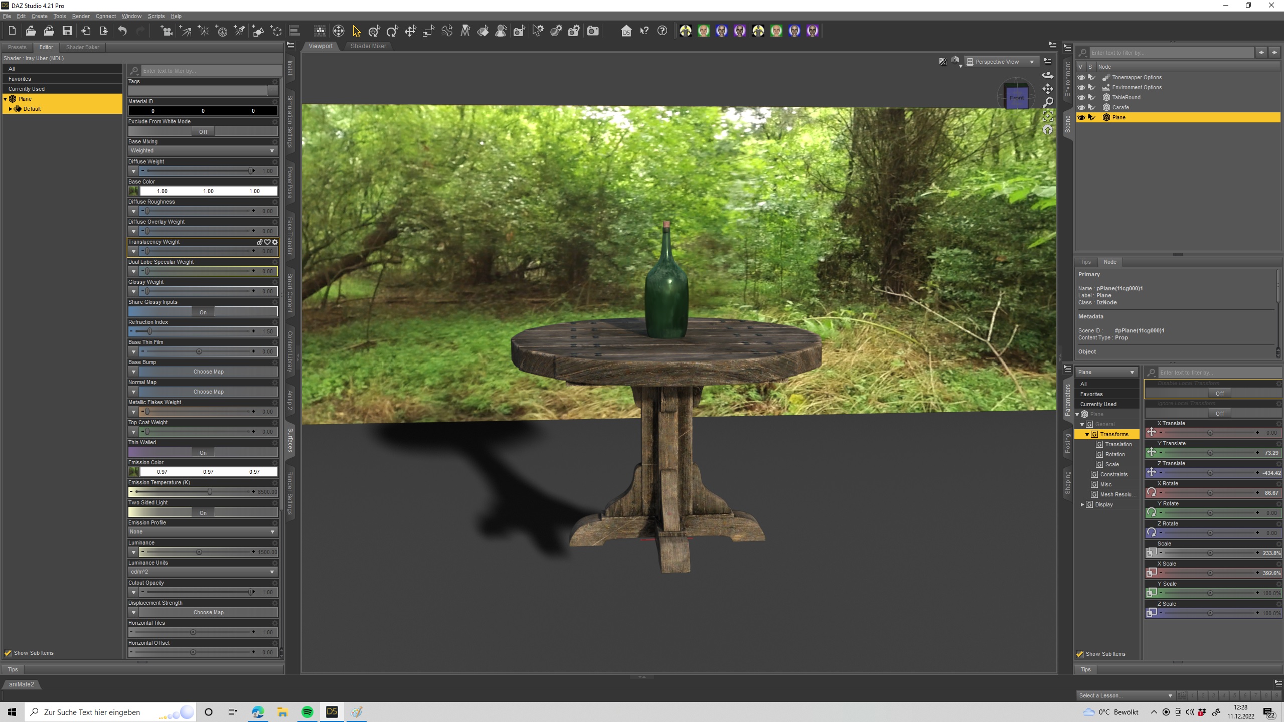 die platzieren wir hinter den Tisch und setzen nun das gerenderte HDR Bild in die Surface ein. Einmal bei der Base Color map und bei der Emessions Color Map und stellen die auf weiss ,Base Mixed auf wheighted