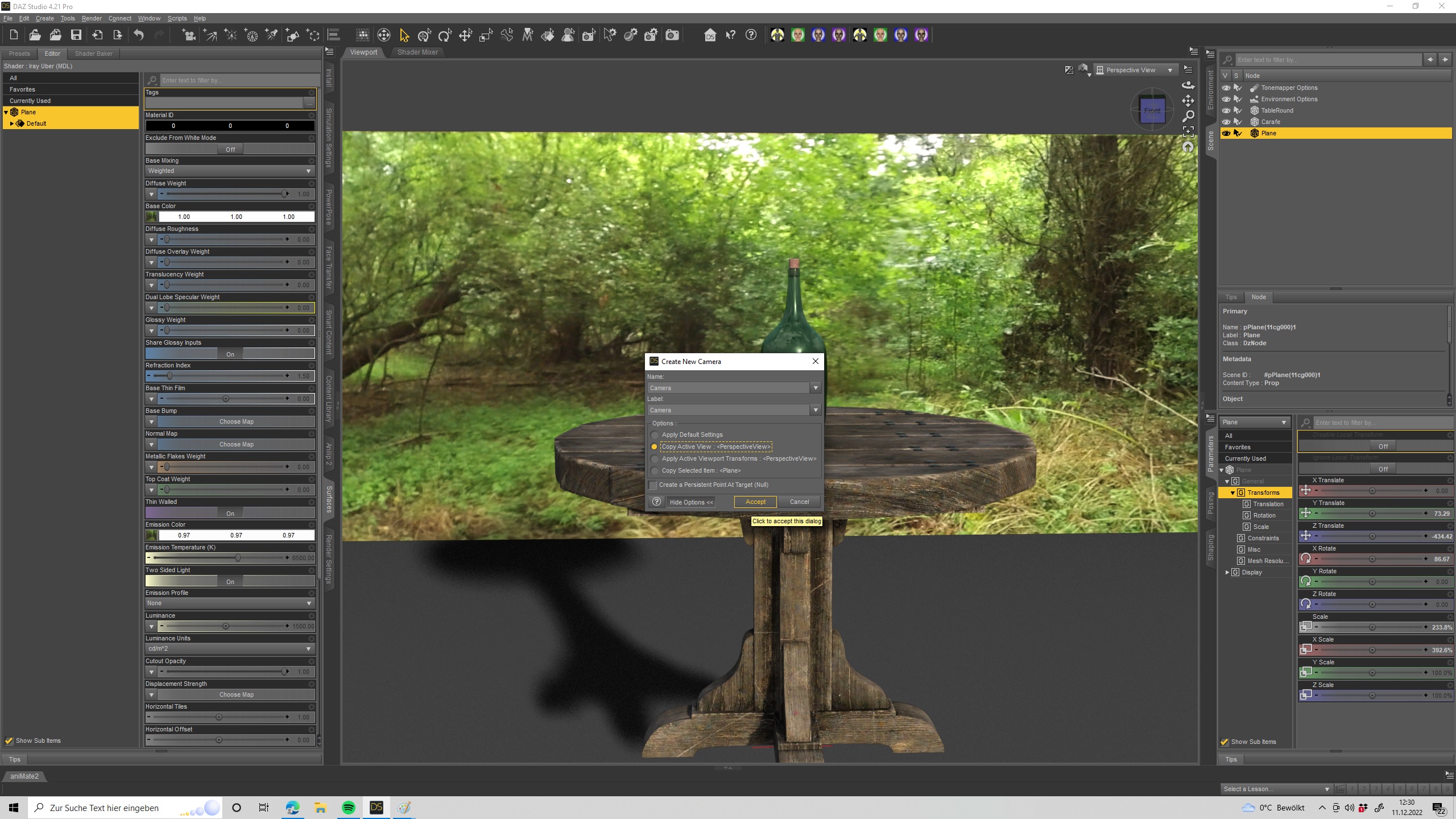 wir gehen auf Create a new Camera und klicken einen Haken bei Copy Active View und gehen auf dann accept