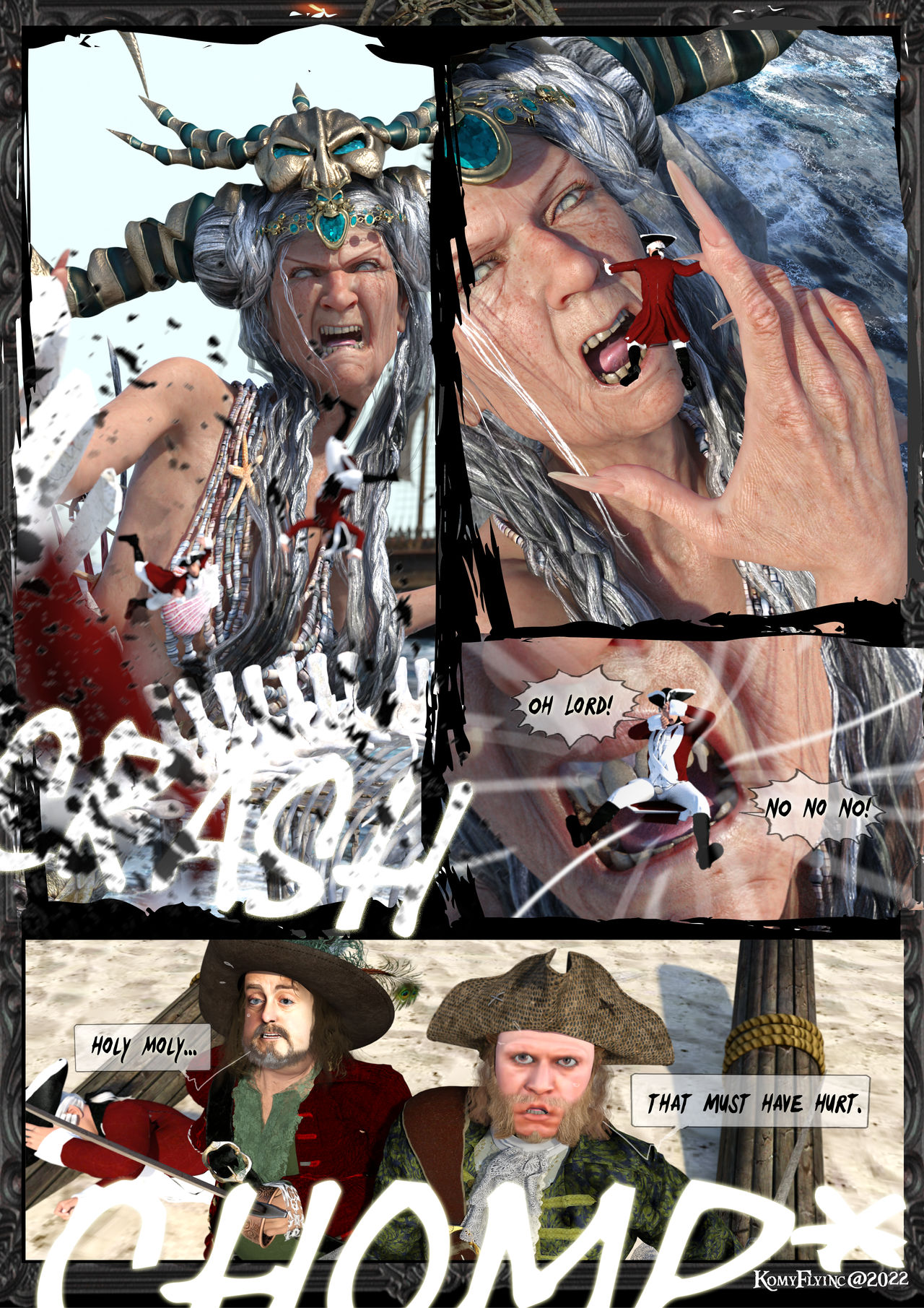 Ein Schwanzflosse schiesst hervor und mit einen riesenhaften SLAM* geht er auf Benbows Crew hernieder.