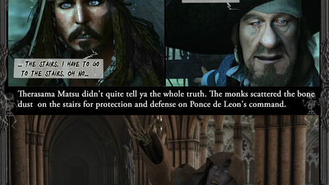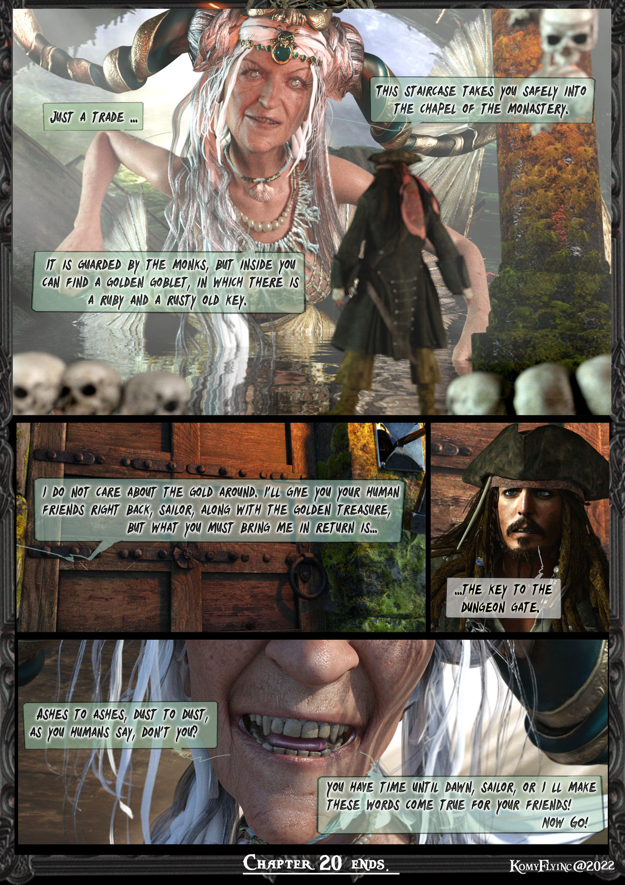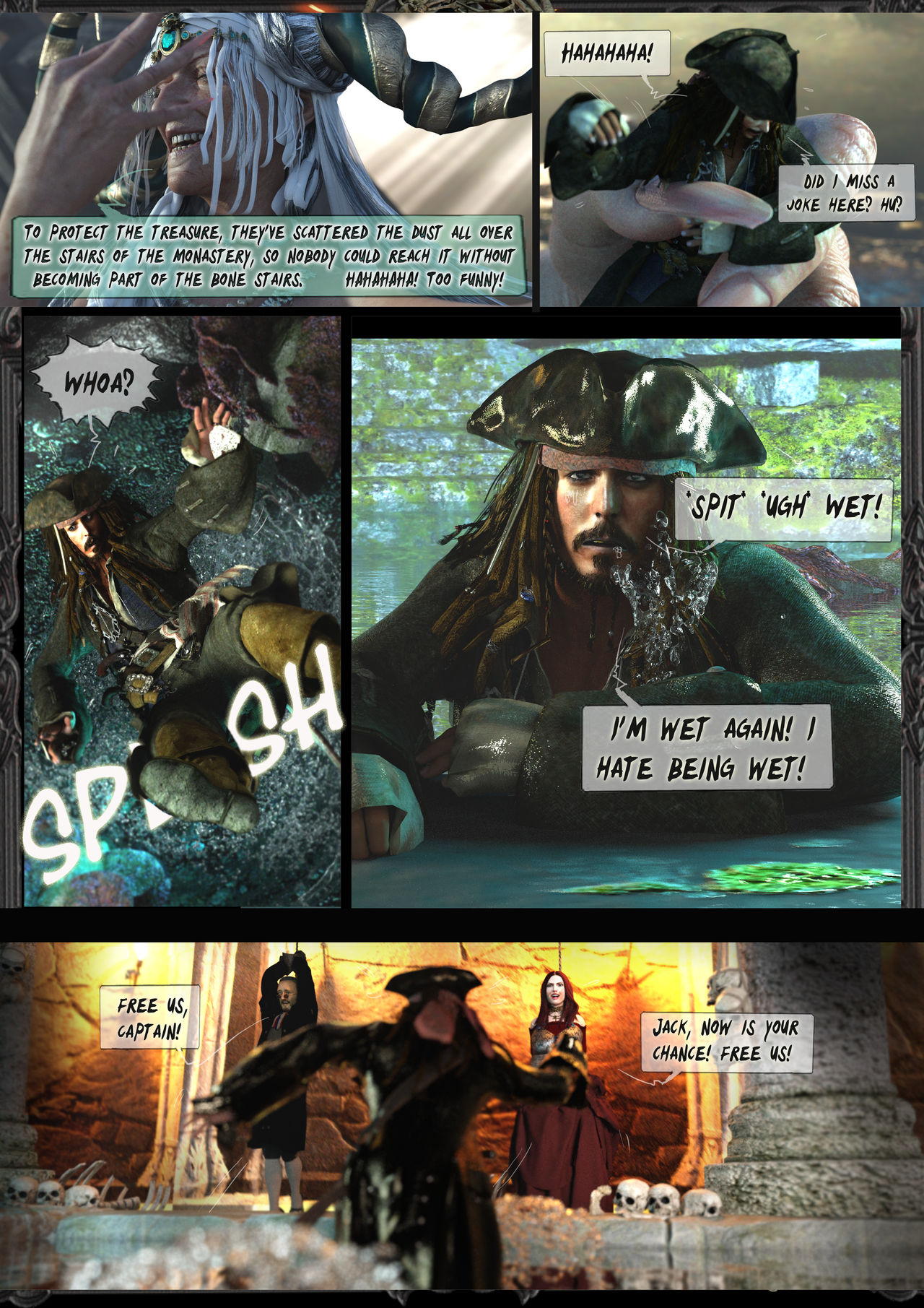 Jack will ihn zornig anspringen und wird klirrend von eiserne Handschellen festgehalten, die an der Säule befestigt sind.