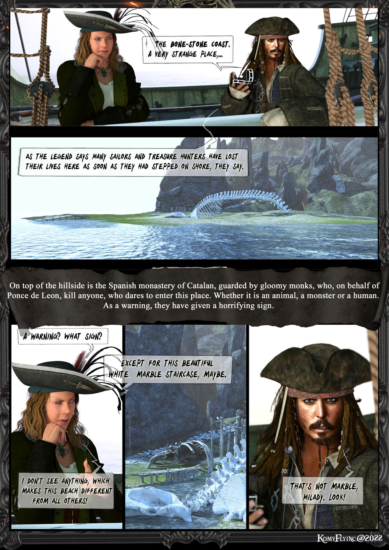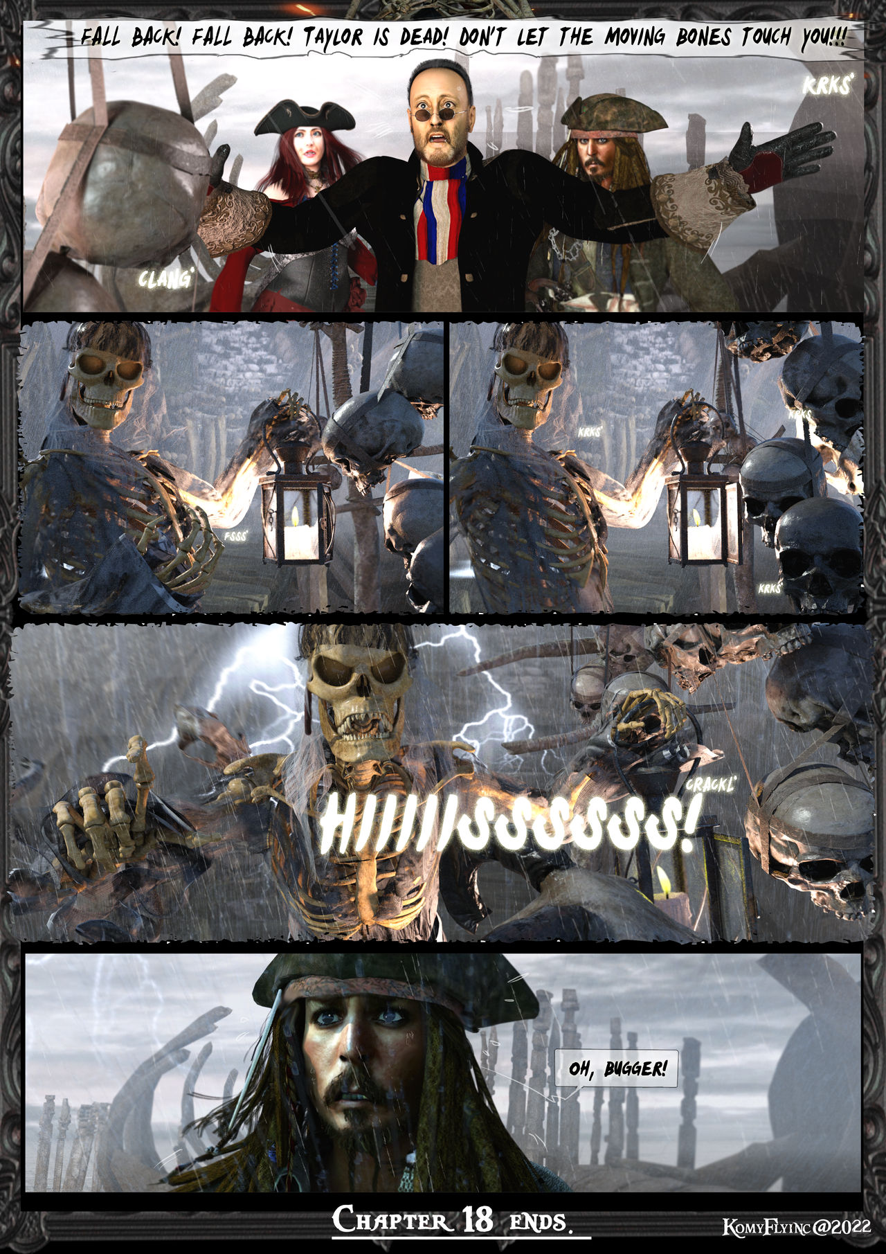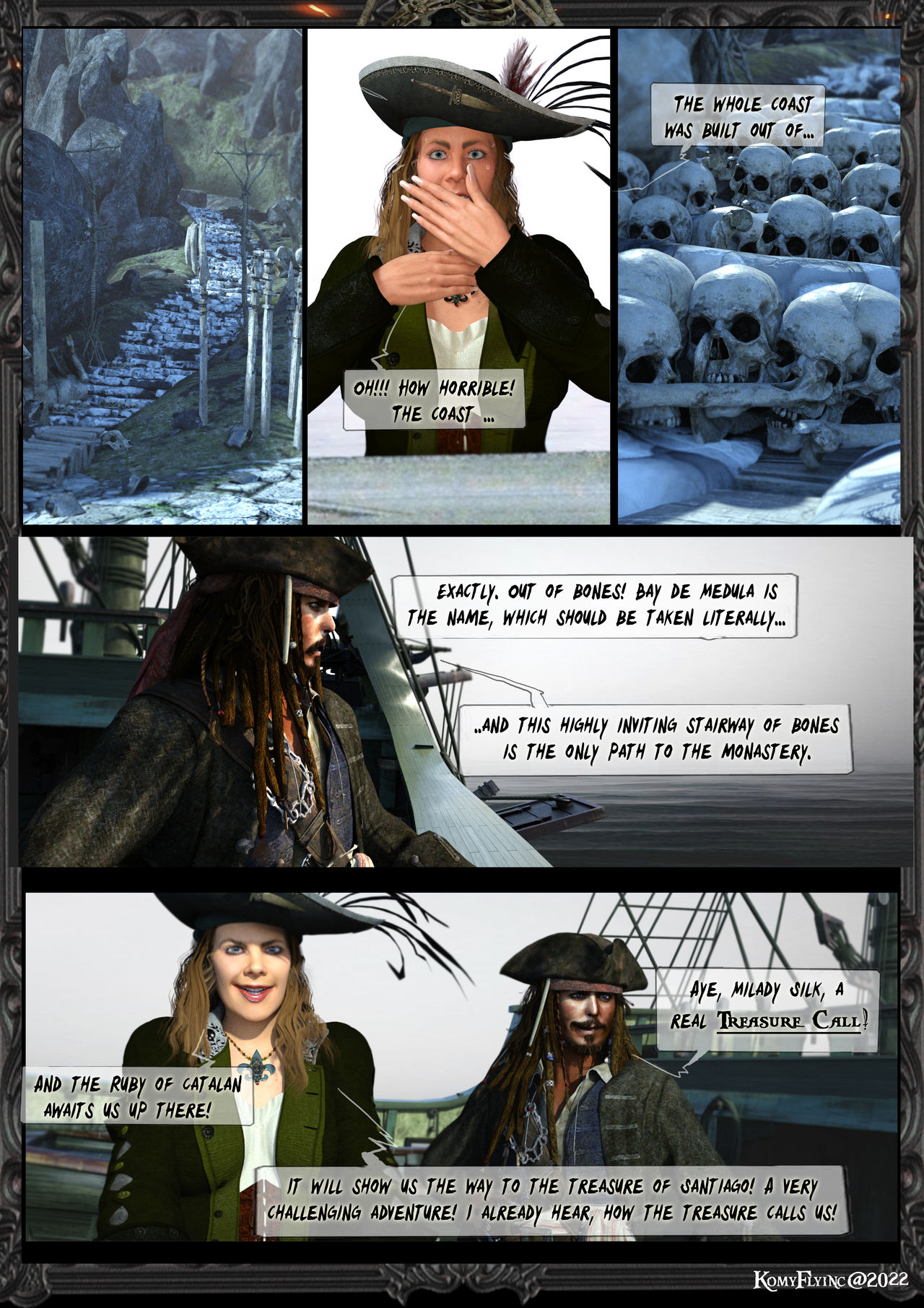 Jack ,Red Ginger ,Mr Smirk und ein gewisser Taylor landen mit einen Dinghy an der Küste und versuchen vorsichtig an Land zu gehen.Bewaffnet mit Säbeln ,Pistolen ,