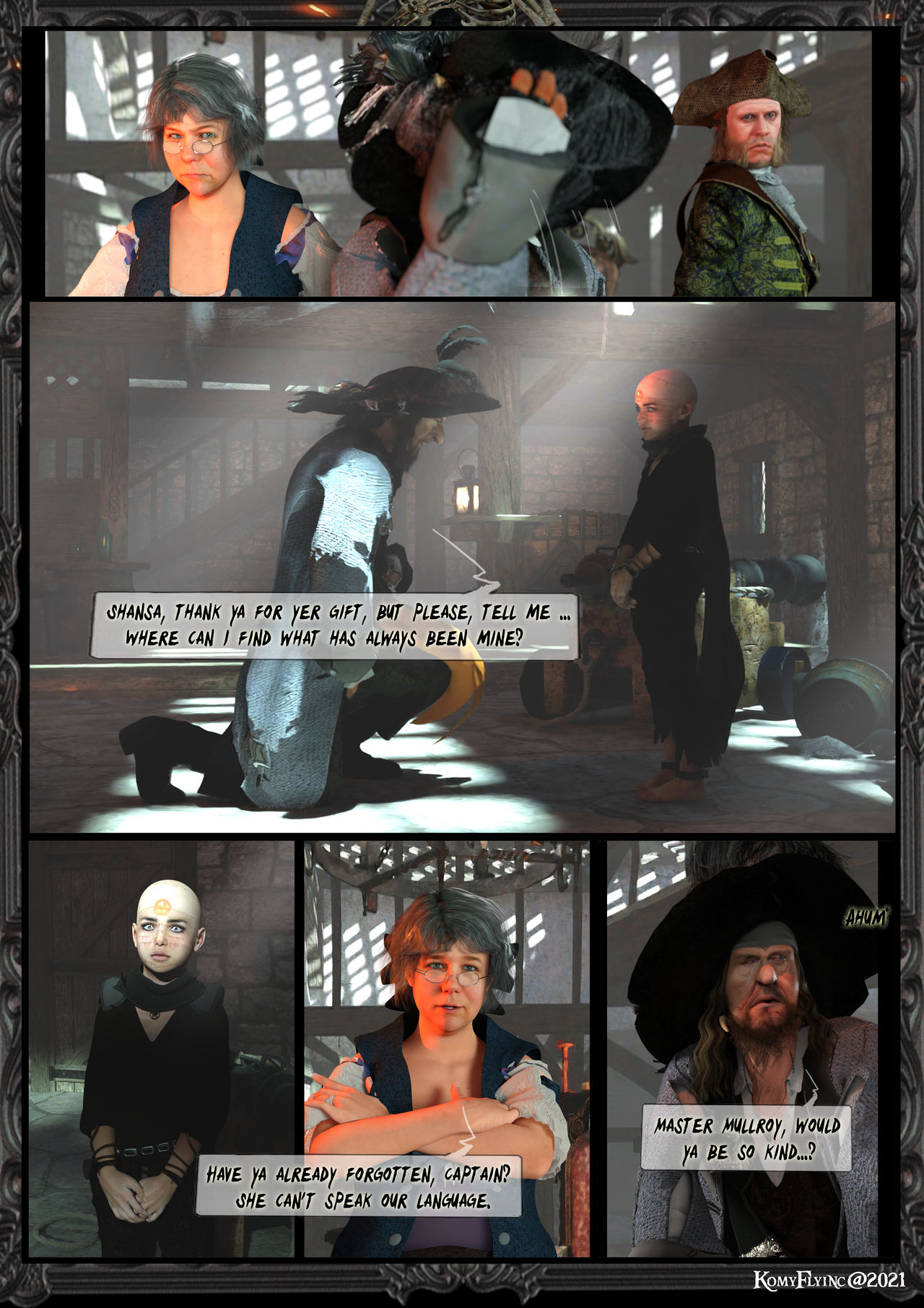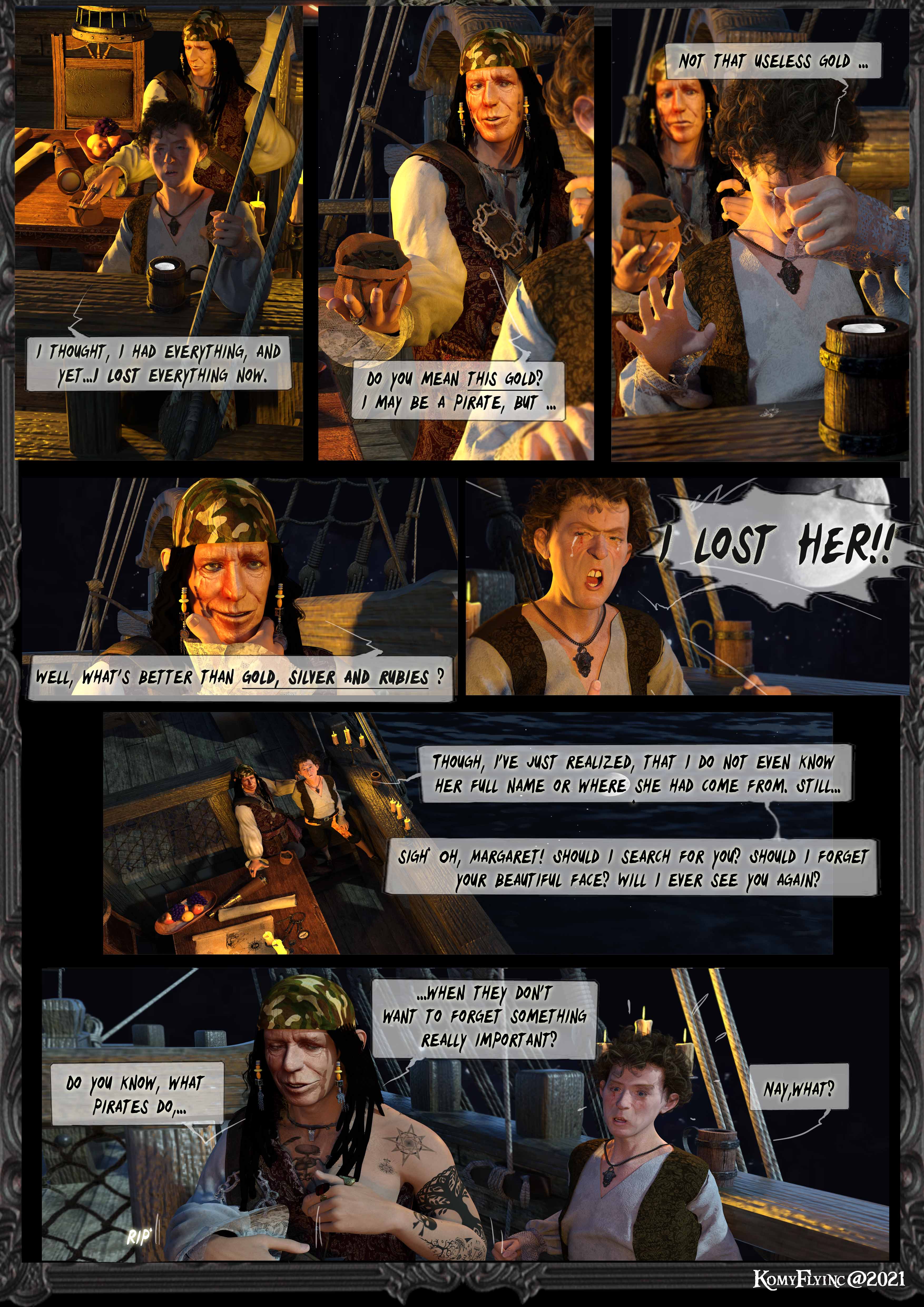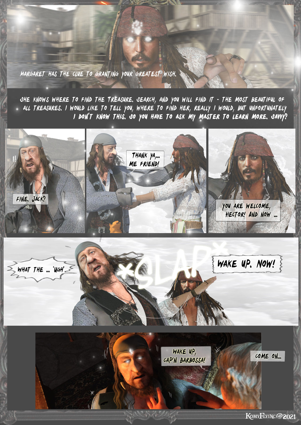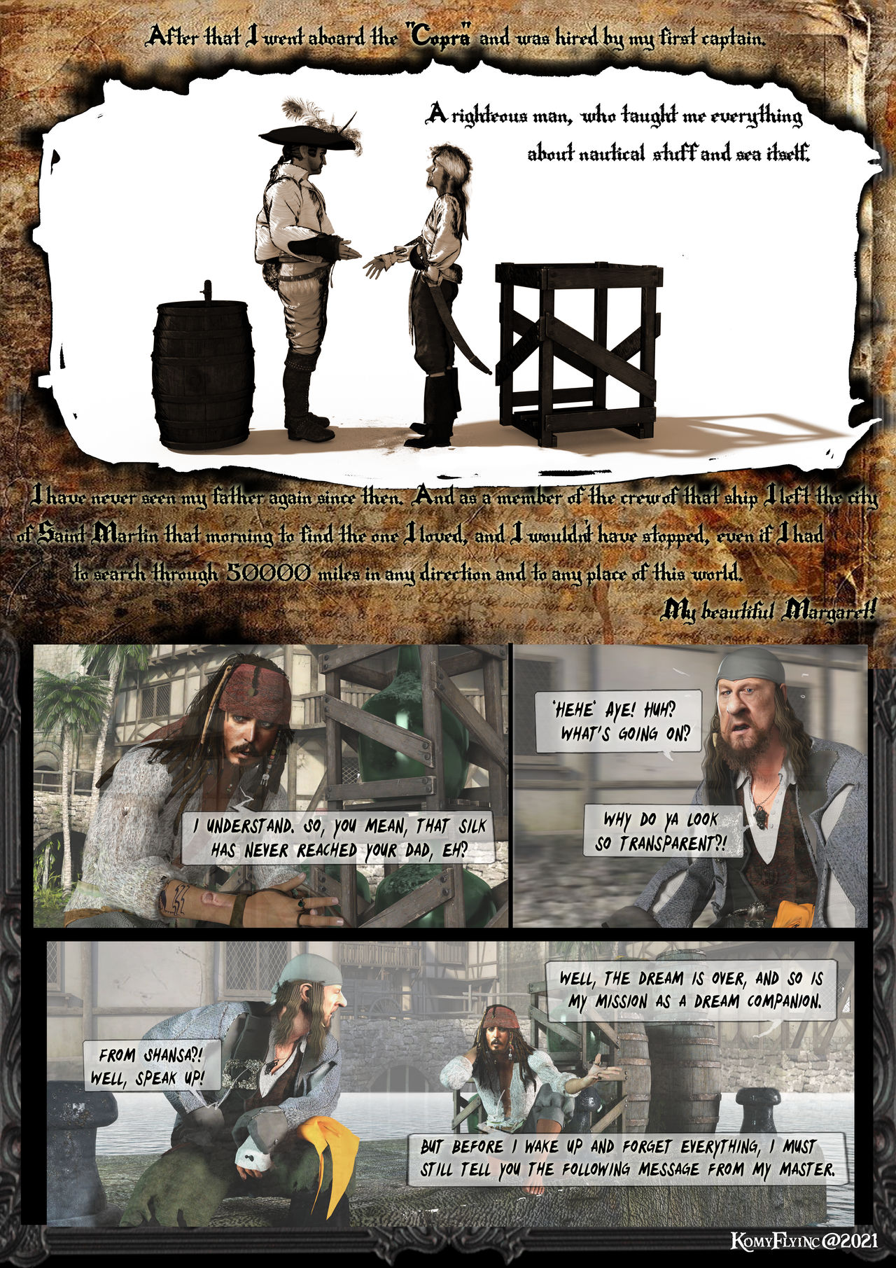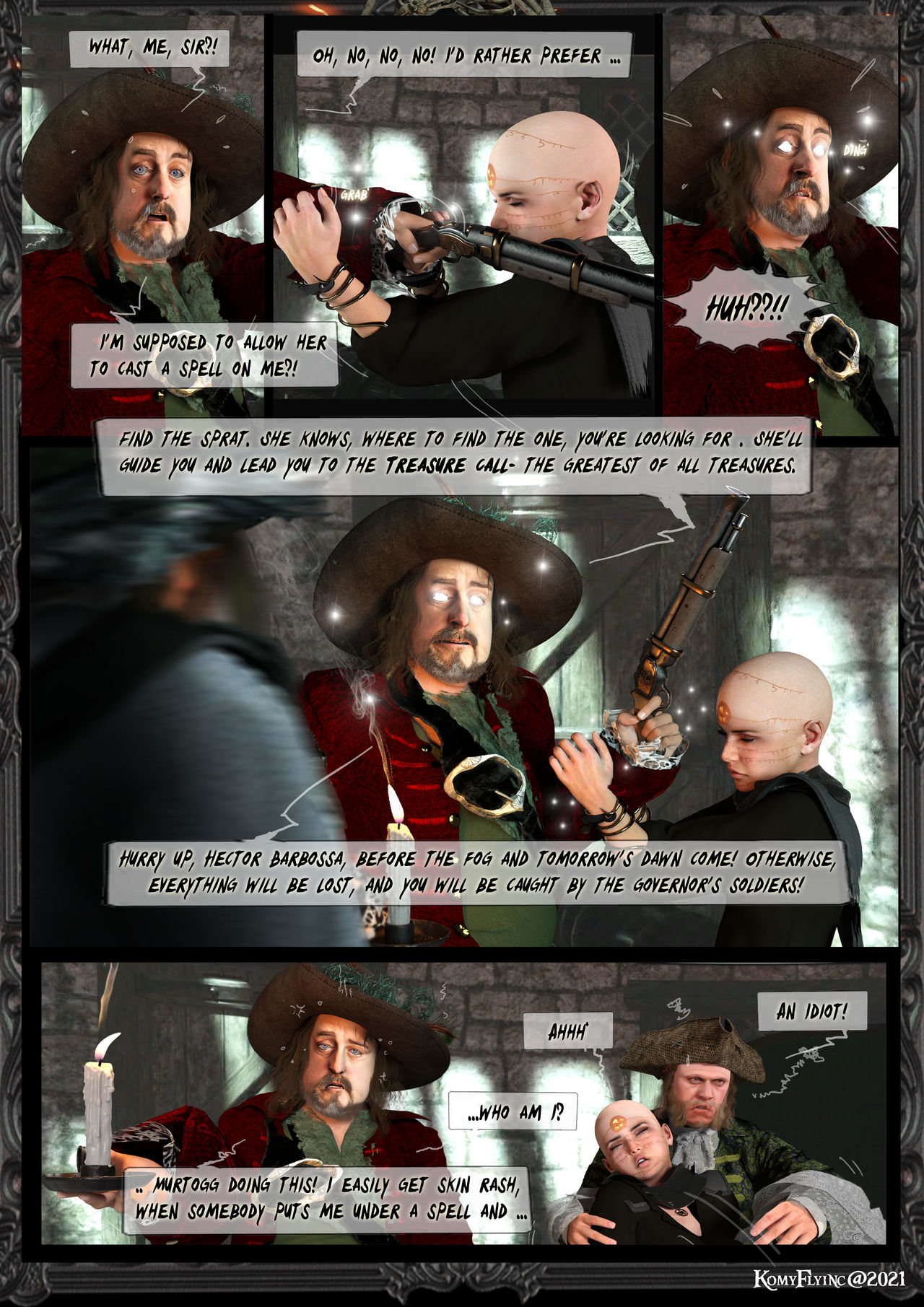 Eile dich,Hector Barbossa,bevor der Nebel und Morgen graut,muss es geschehen. Sonst ist alles verloren und ihr werdet gefasst von den Soldaten des Bürgermeister´s.