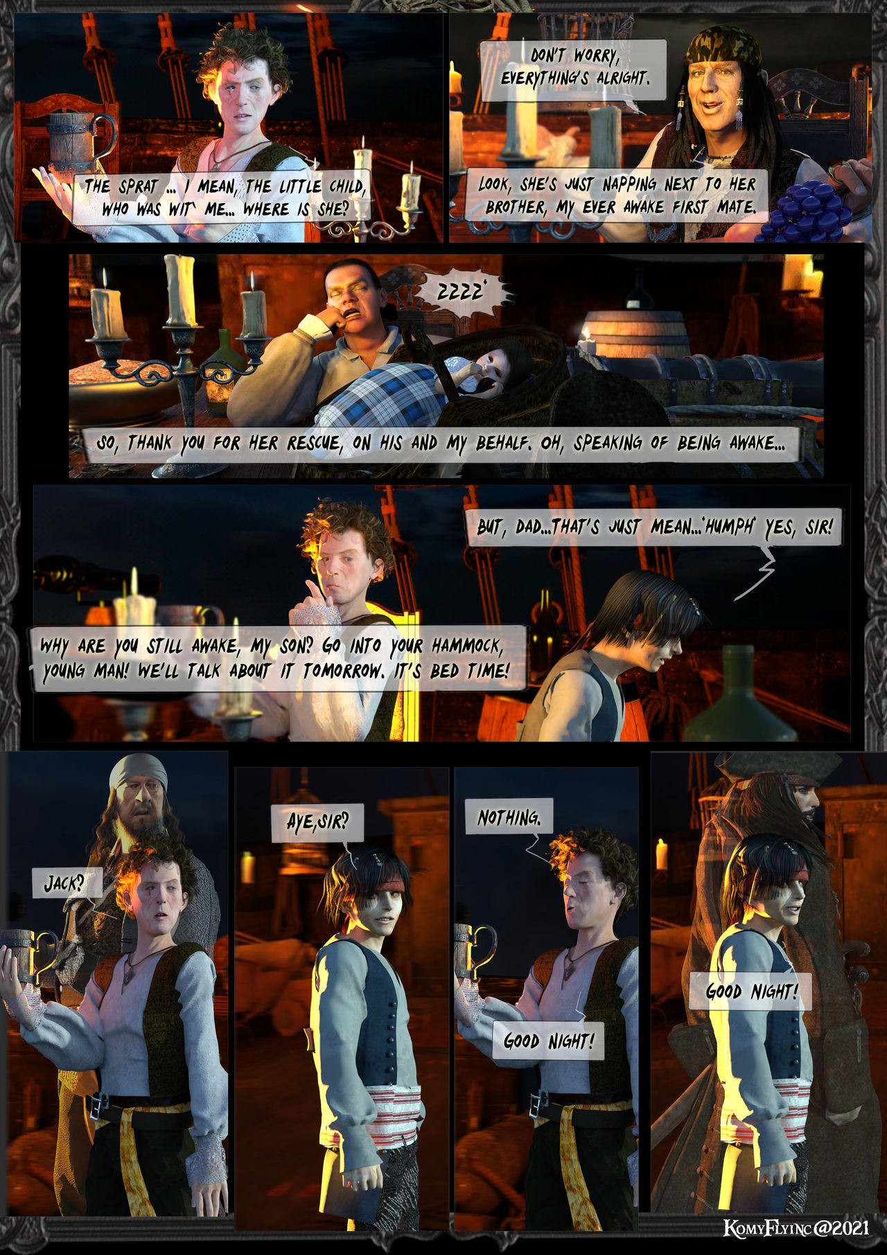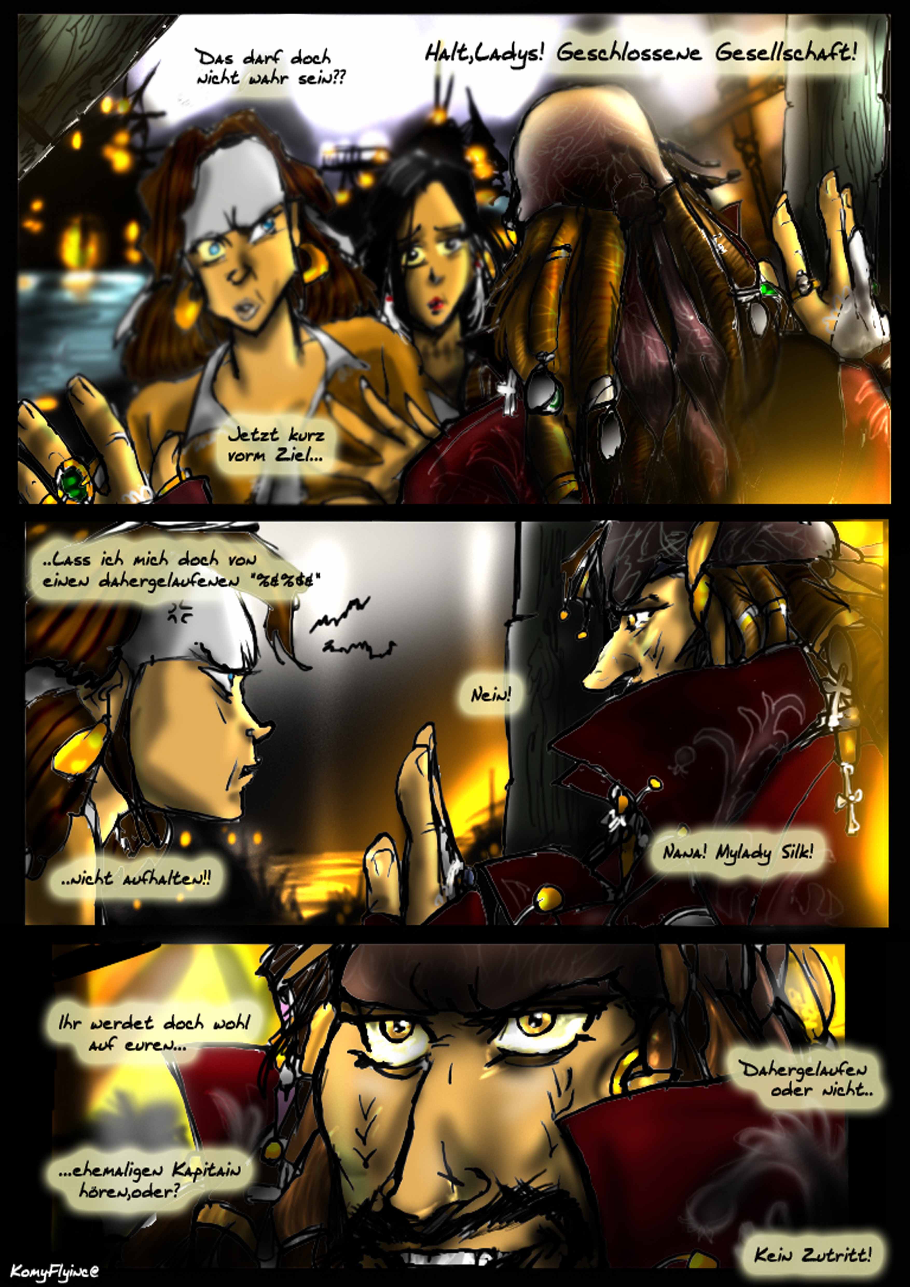 Neben ihr sitzt der junge Maat und schläft fröhlich mit.In seinen Armen eine Rumbuddelflasche.Maat: Chrrzzz*