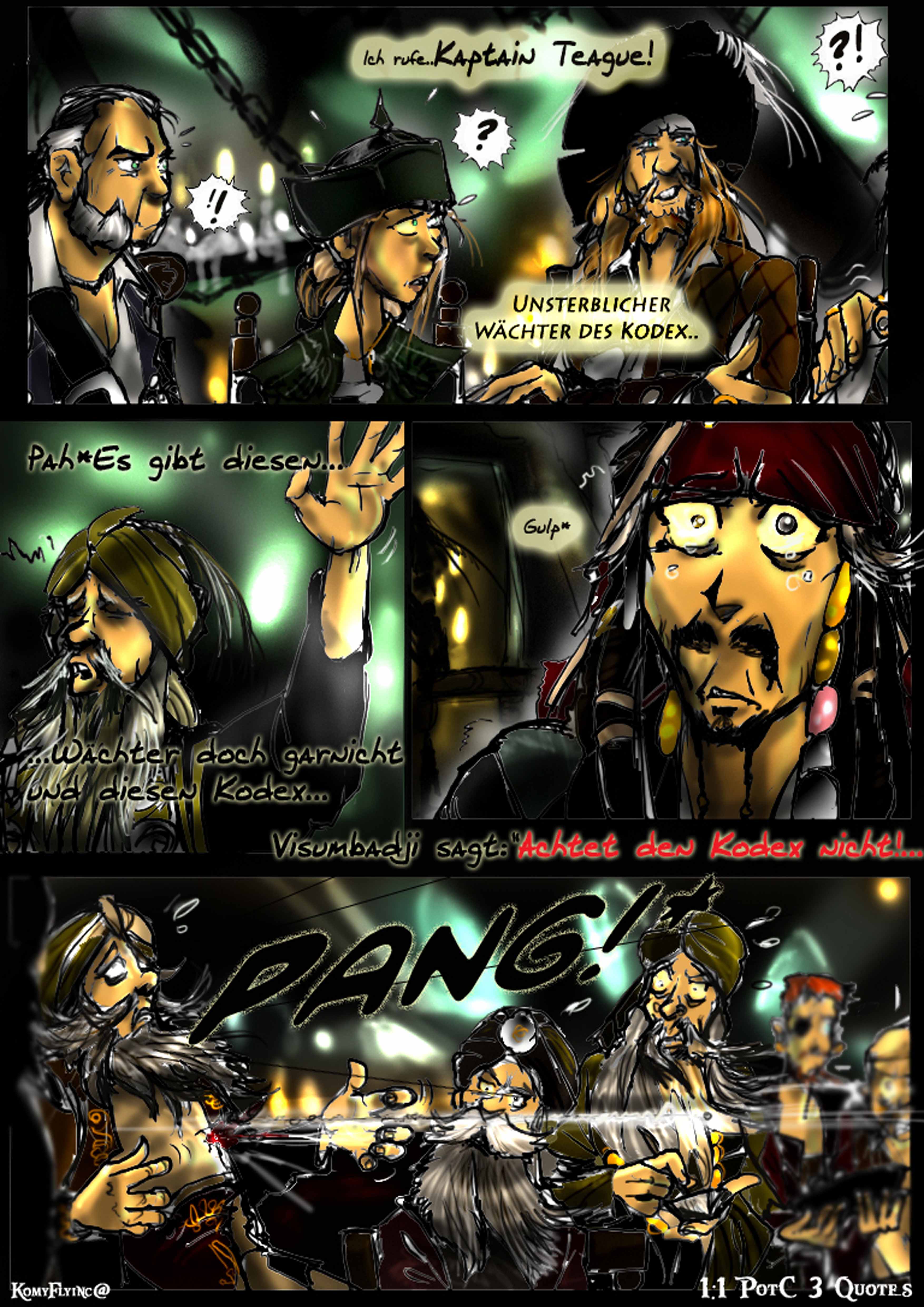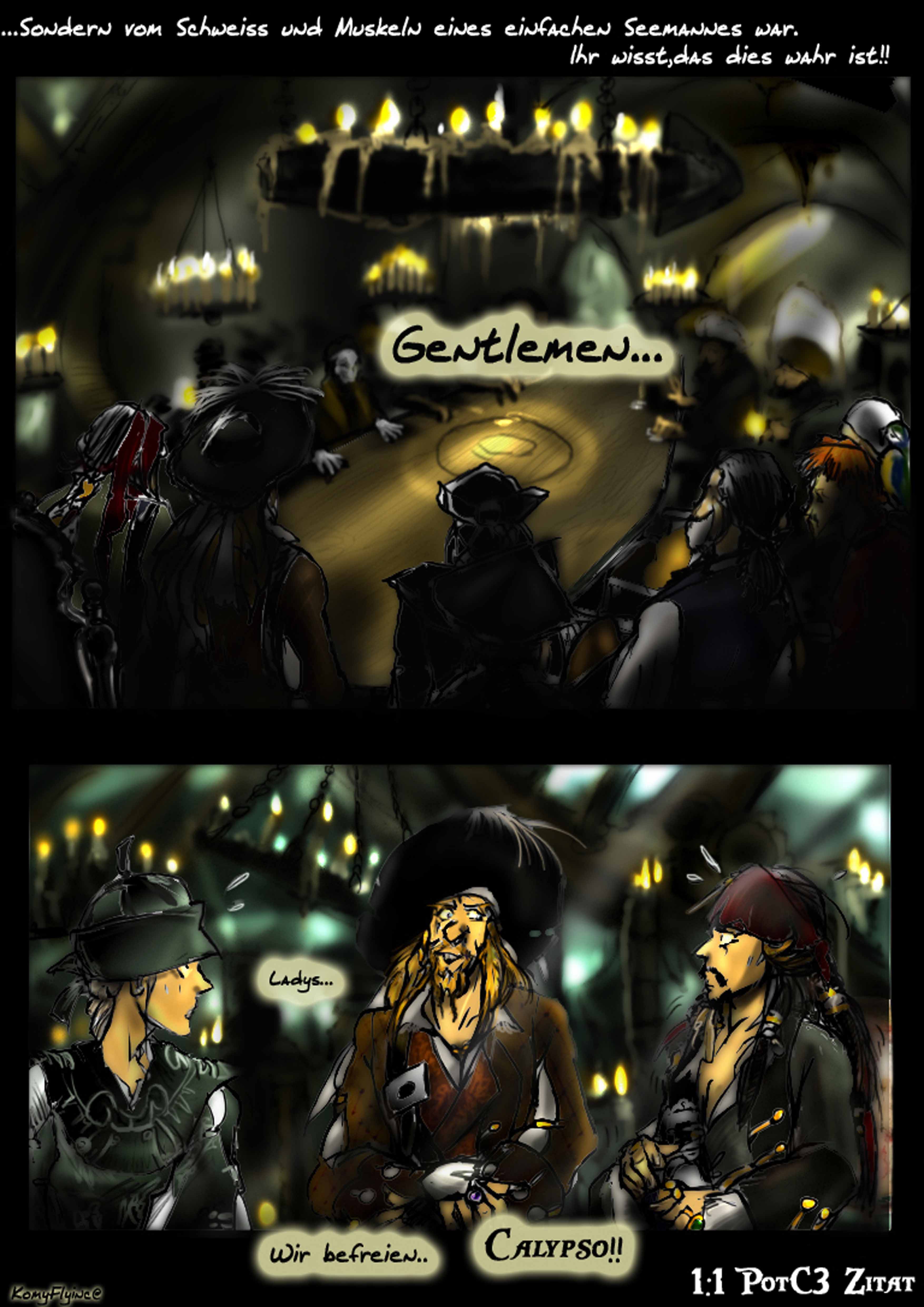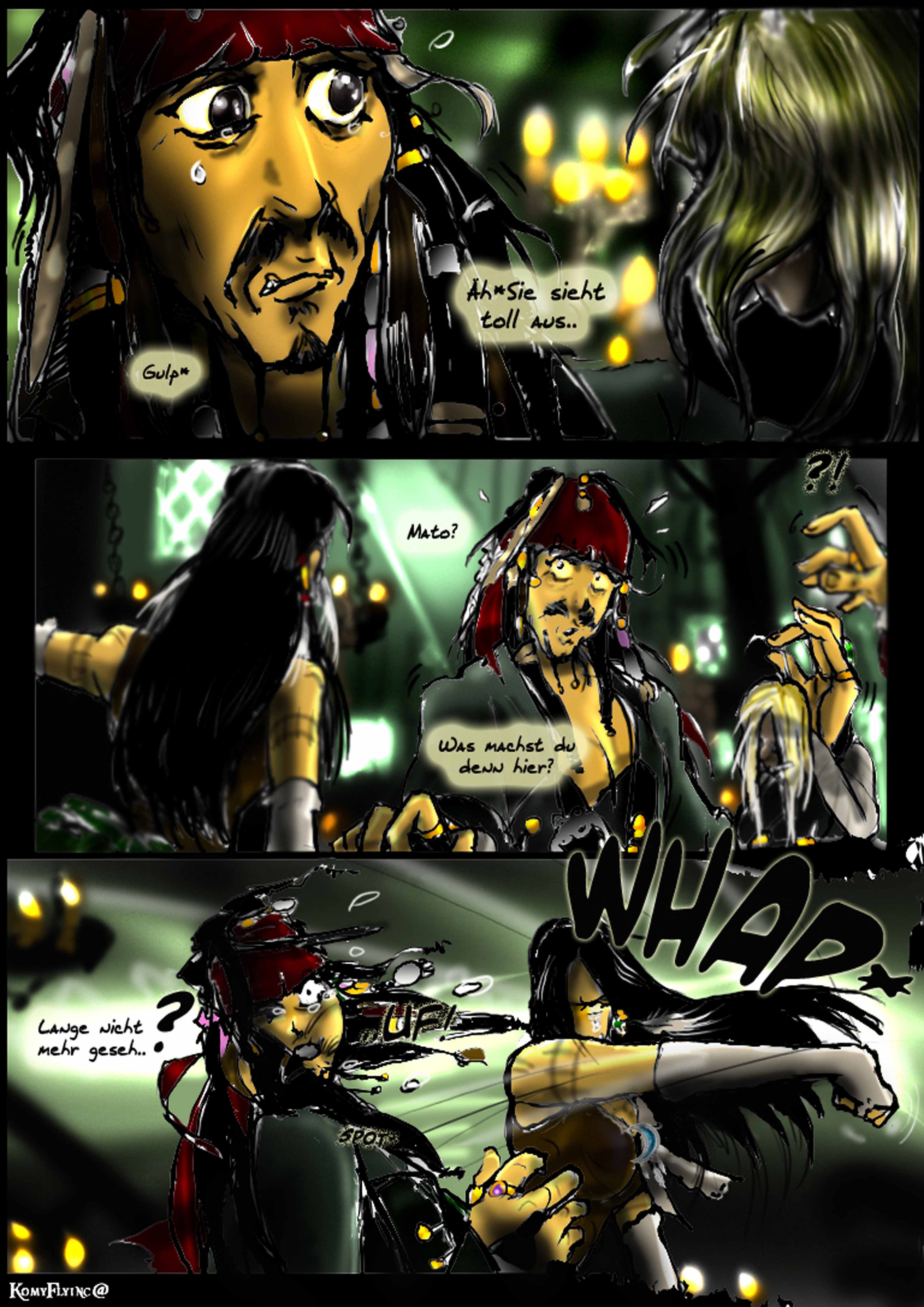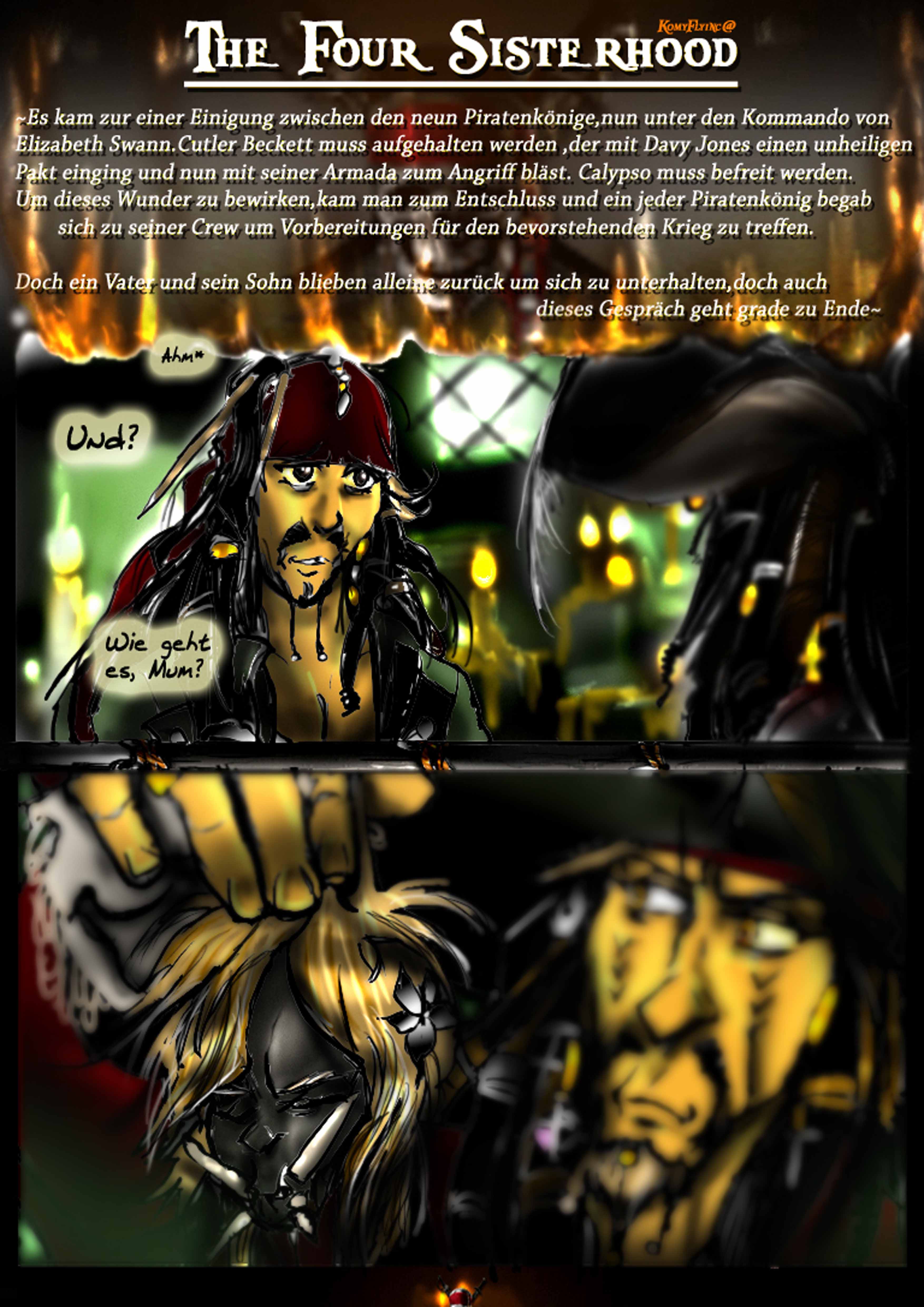 und das sein erstes Kommando nicht gutausging. Cutler Beckett Vater ,später von ihm selber gejagt wegen der Meuterei und Befreiung der Sklaven(Den Verlorenen aus Sümpfen,die bei Jacks Tod ihm das letzte Geleit sangen)Das P eingebrannt auf seinen Arm, die Andeutungen von Cutler Beckett und selbst Davvy Jones Zitate sollte man ansehen nochmal und gut kombinieren^^alles versteckte Hinweise in den Filmen.