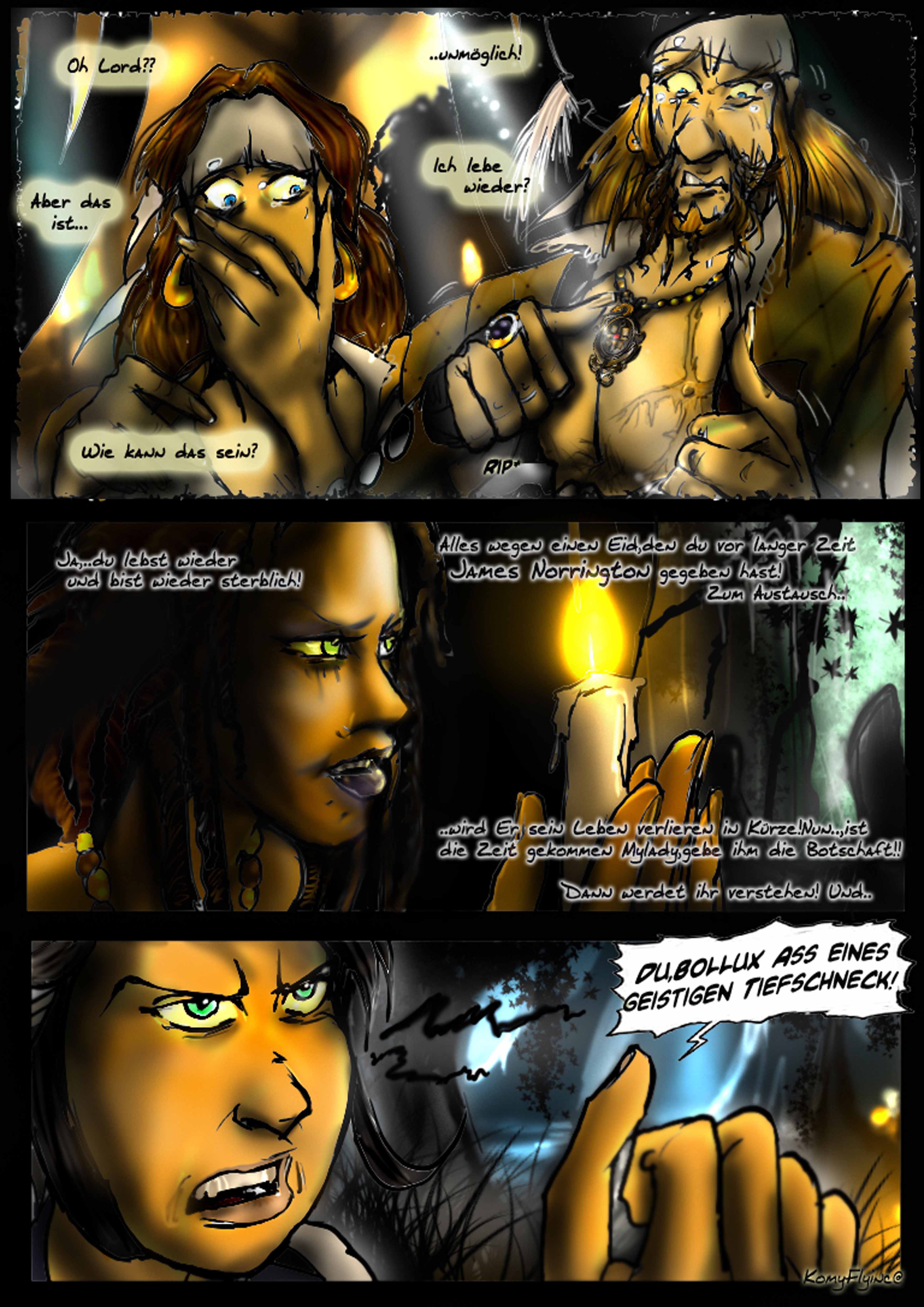 Hector steht da etwas zerrauft mit abstehenden wilden Haaren und roten Gesicht.Das rechte Auge blutet dank einen verirrten Messerangriff. Die Seide ist hier und dort nur noch ein Fetzen,die langsam zu Boden bröselt und der Säbel hat endlich seine Arbeit getan,denn es ist nur noch der Knauf zu sehen,mehr nicht.