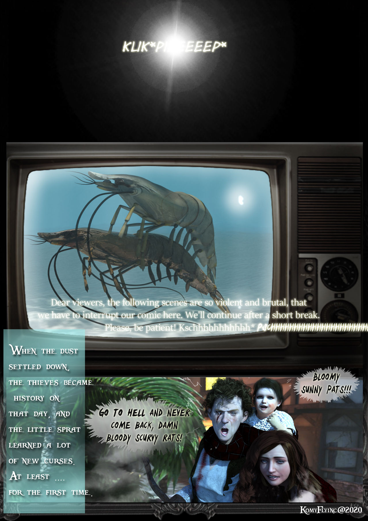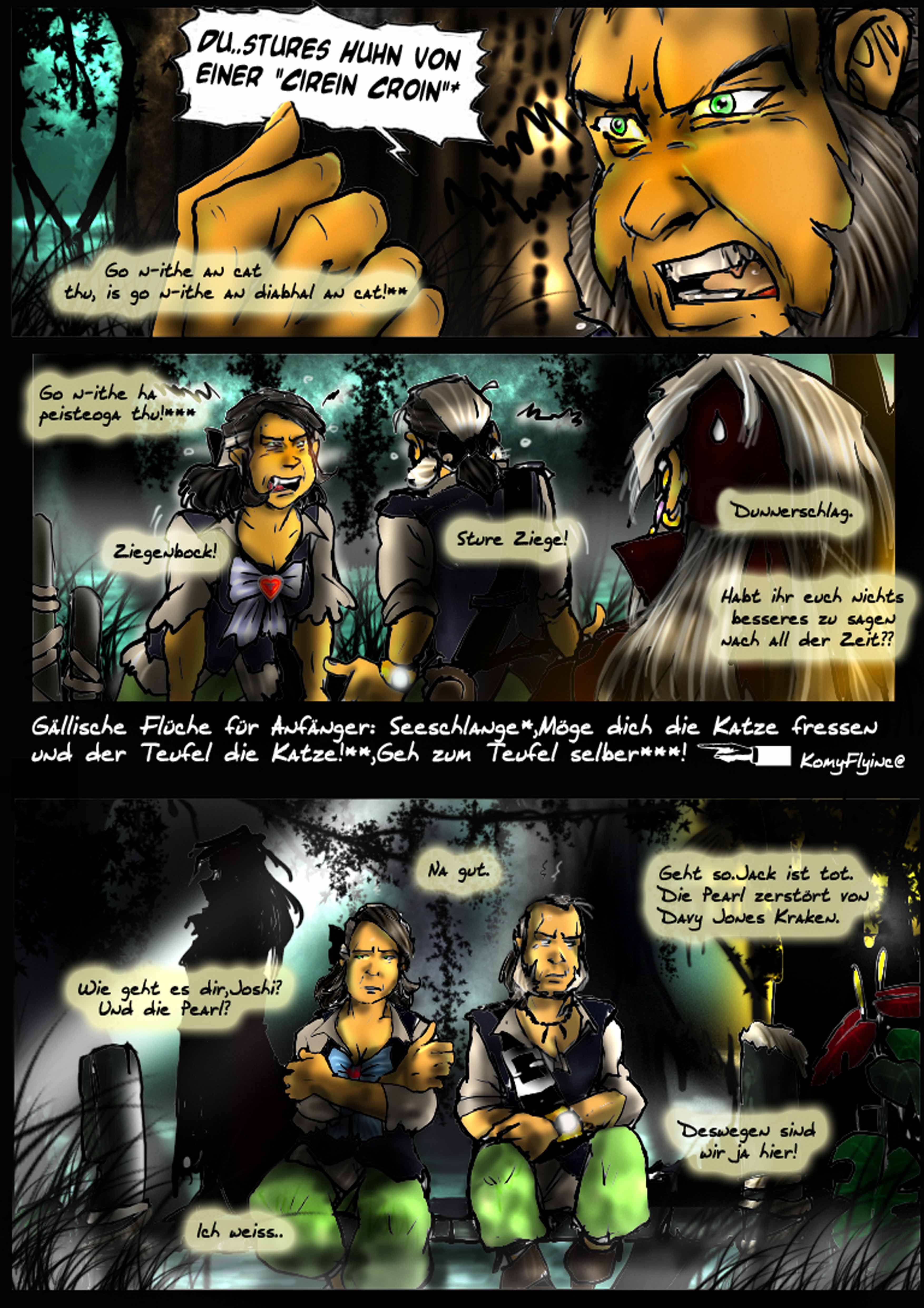 Erzähltext:Und als der Staub sich gelegt hatte ,waren die Diebe historische Geschichte geworden an diesen Tag und die kleine Sprotte hatte eine Menge neue Fluchwörter lernen können.Zumindest ....Ersteinmal!