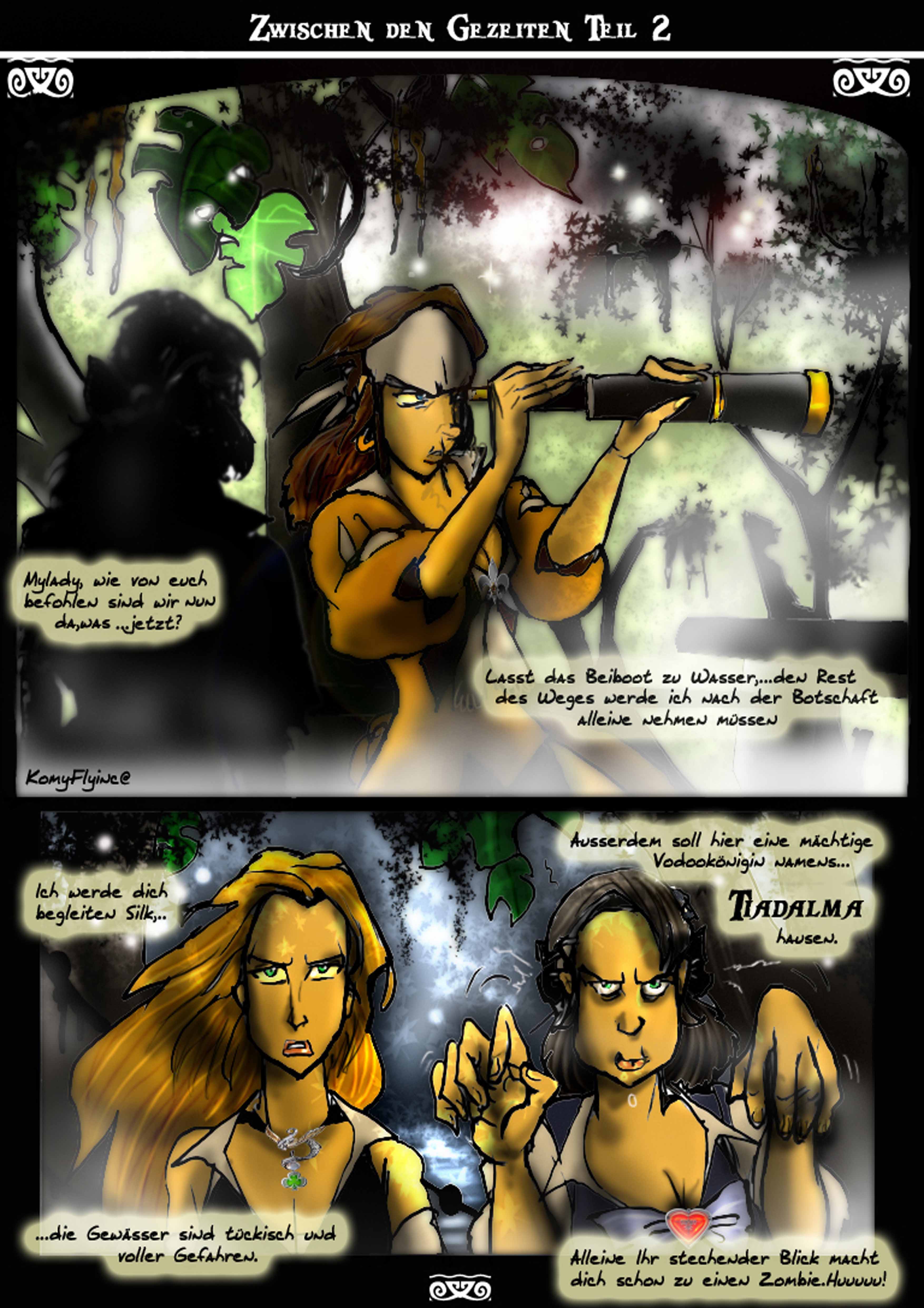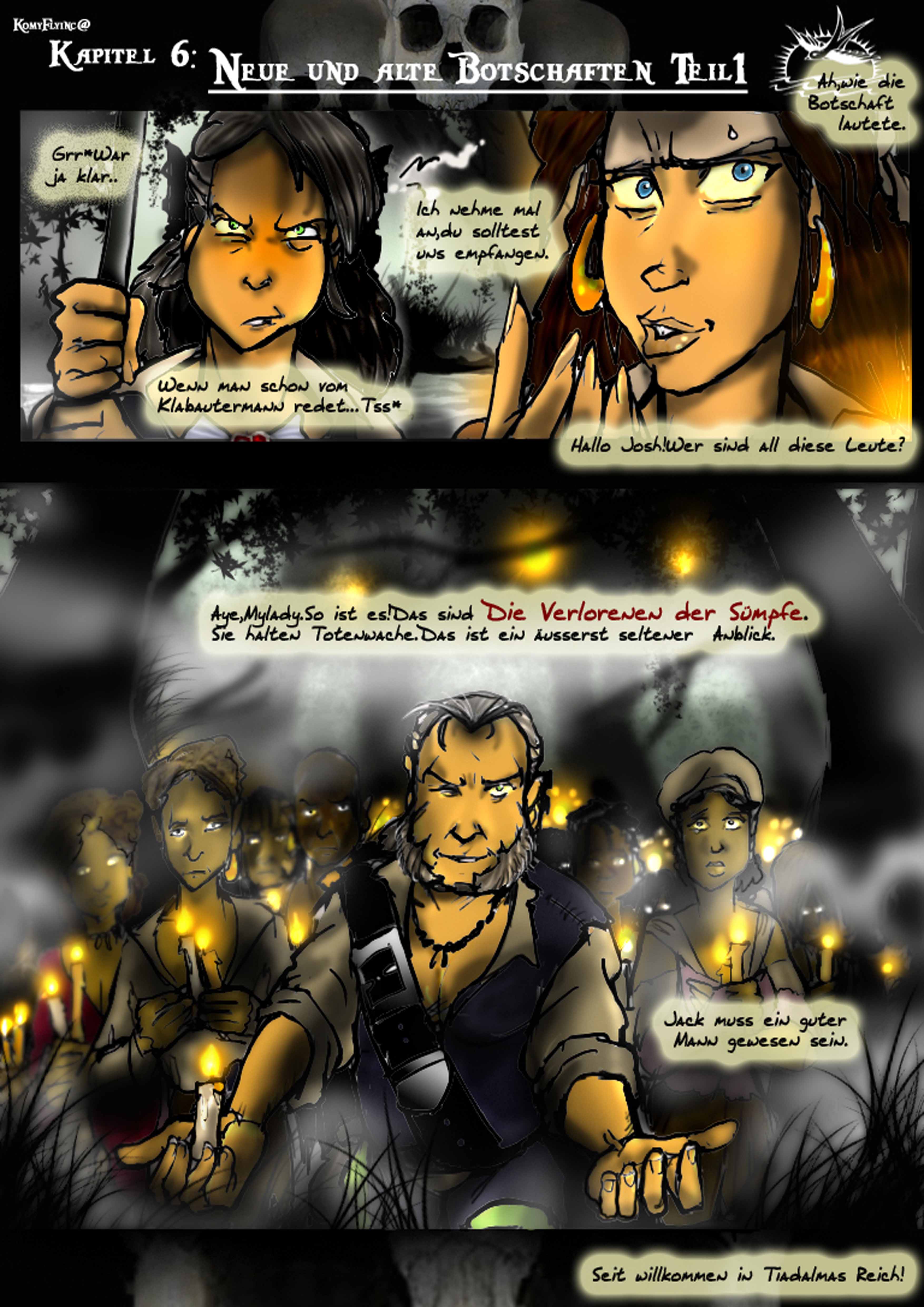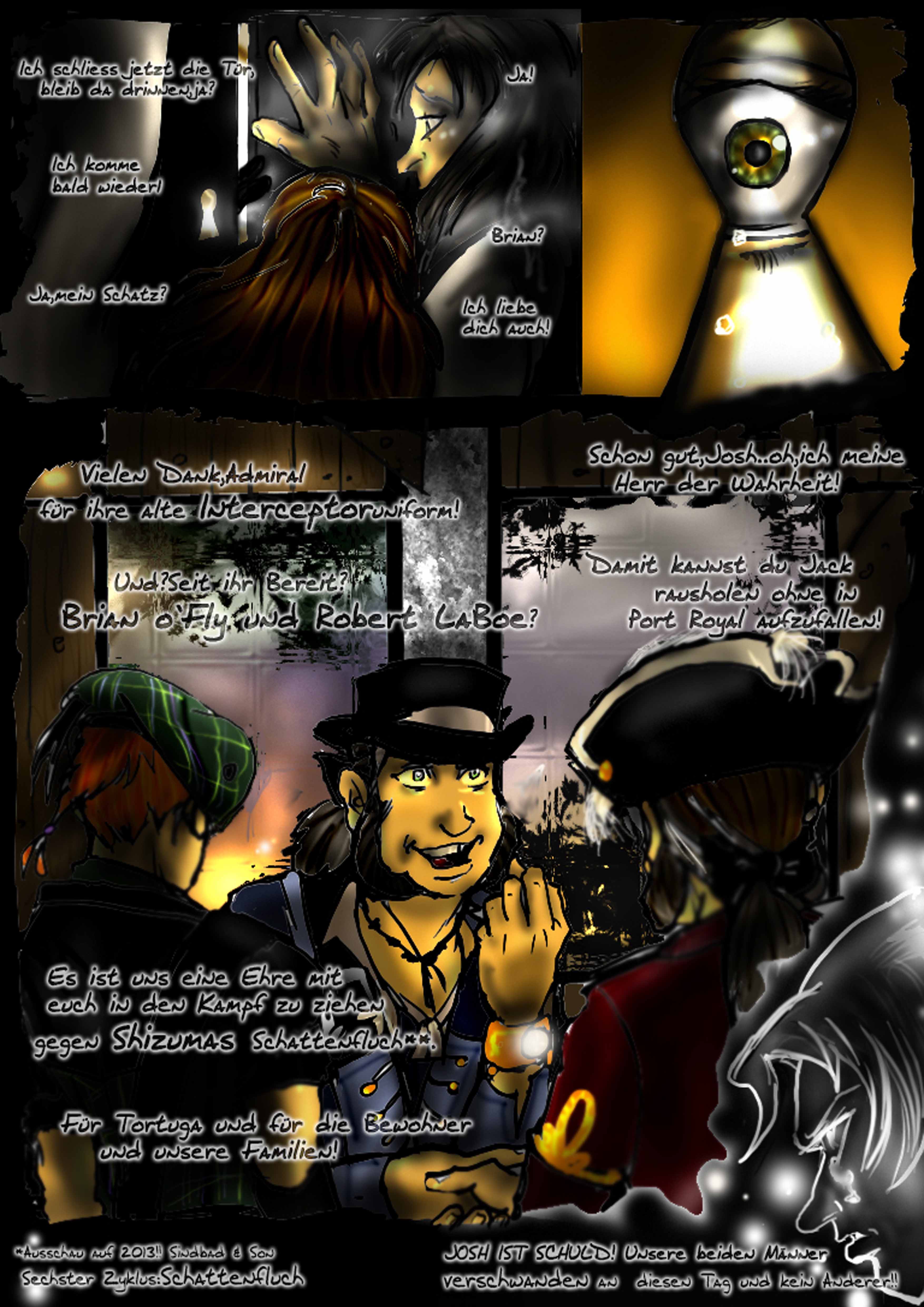 Nebel wabert durch den Sumpf.Es ist heiss.Ein monotoner Gesang erfüllt die Luft.Vor einer verfallenen Hütte steht der erste Maat der Black Pearl und erwartet durch einen Eid und zehnjährigen schon andauernden Gelübde seinen ehemaligen Kapitain und einen Gast