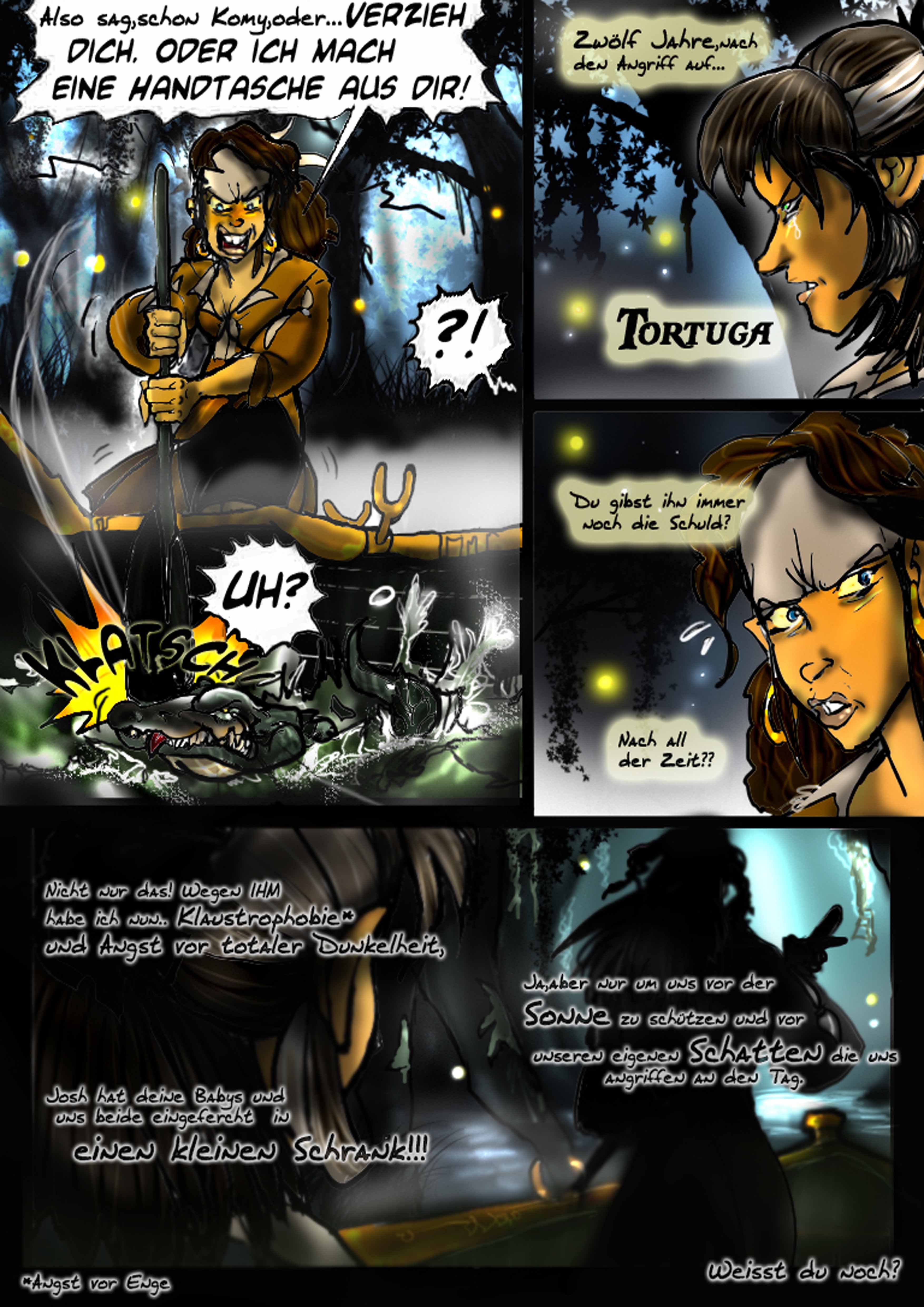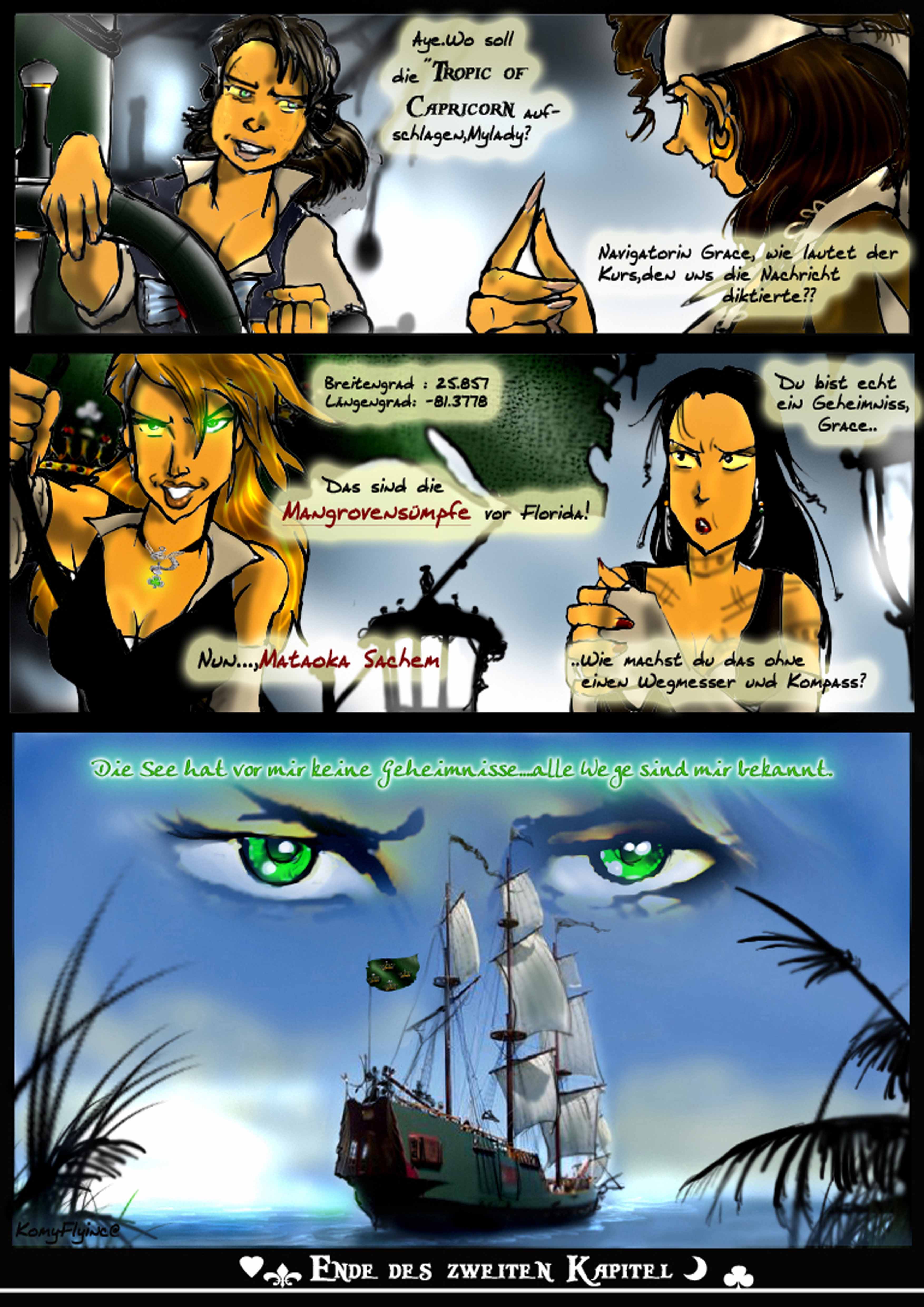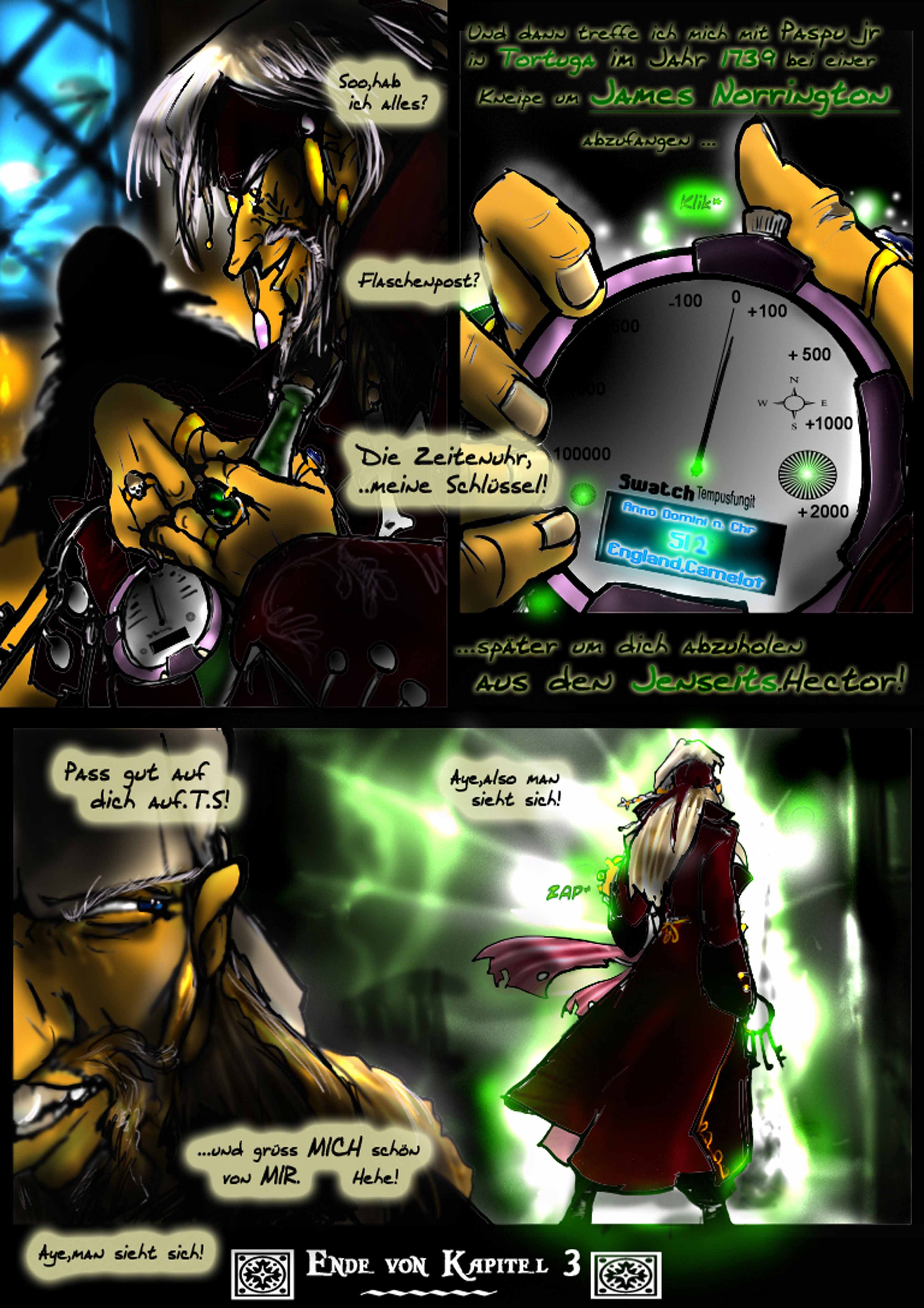 Nebel wabert durch den Sumpf.Es ist heiss.Ein monotoner Gesang erfüllt die Luft.Vor einer verfallenen Hütte steht der erste Maat der Black Pearl und erwartet durch einen Eid und zehnjährigen schon andauernden Gelübde seinen ehemaligen Kapitain und einen Gast