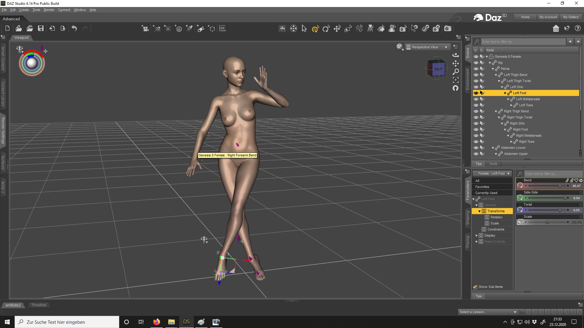 Hier ziehe ich zb den rechten Arm mit dem Tool und die Figur folgt der Bewegung,wie jemand der ihr am Ärmel zieht