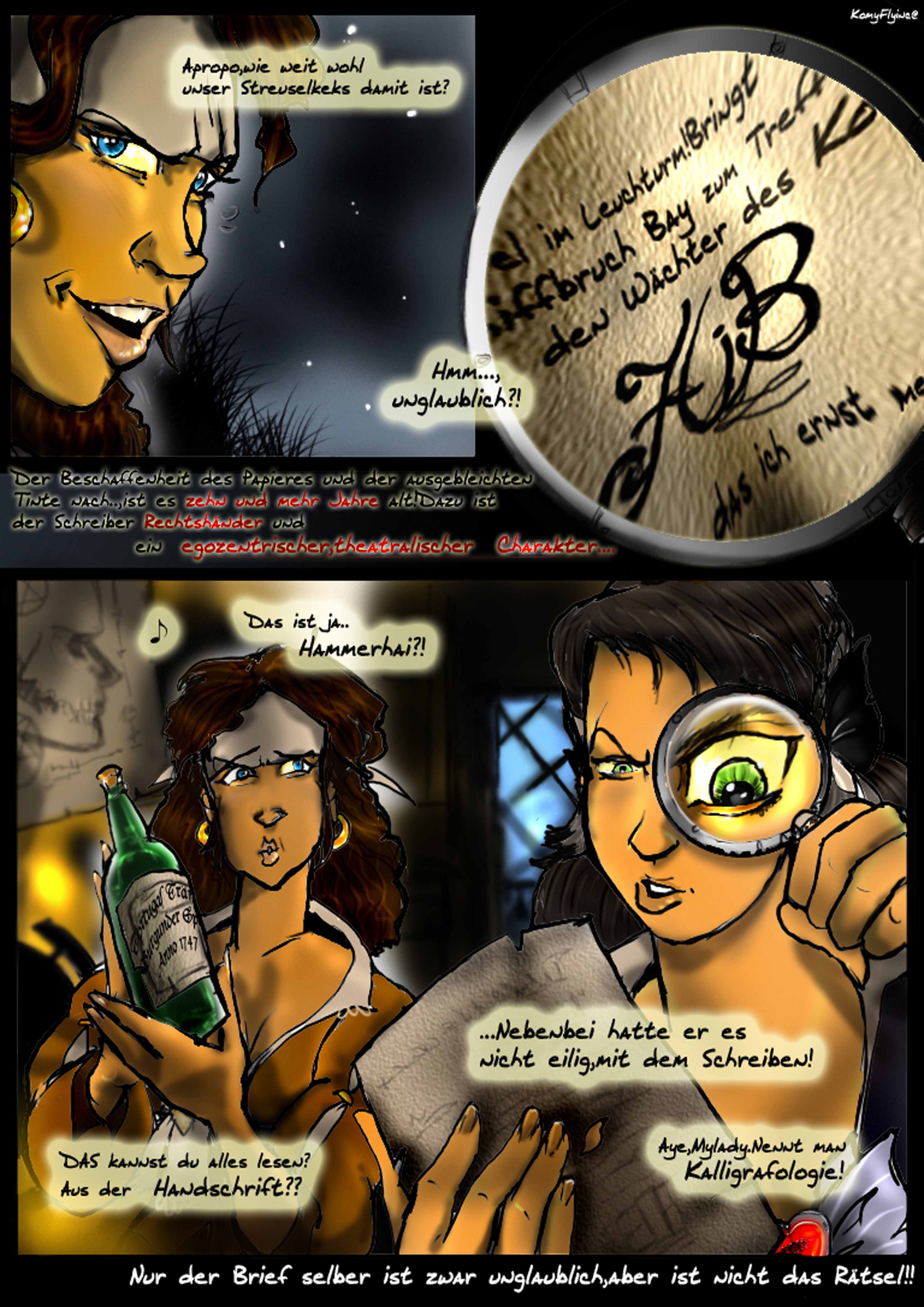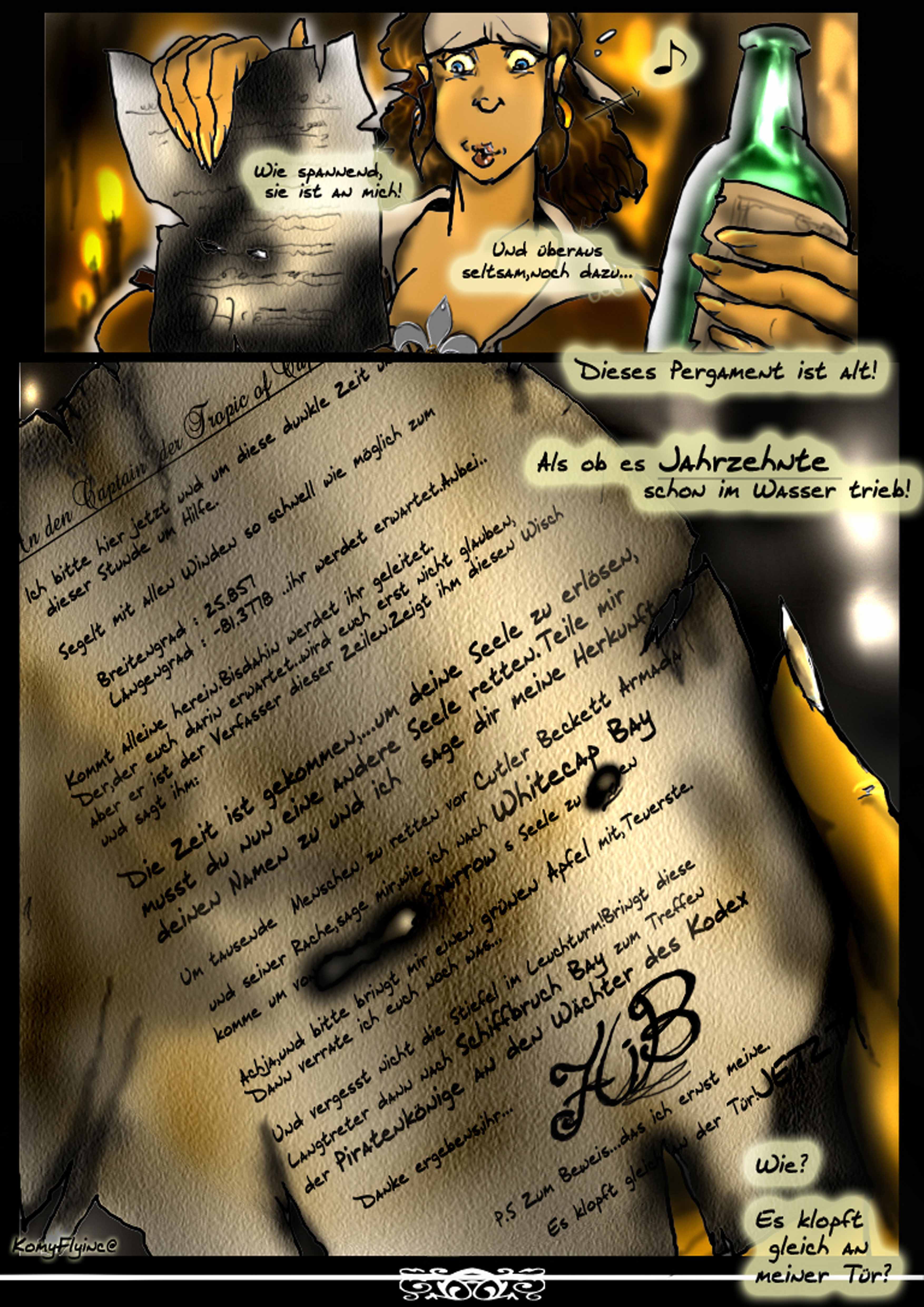 Eine recht geheimnissvolle Botschaft,nicht wahr?Geheimnissvoll gehts weiter.Denn während Mylady die Flaschenpost liest,klopfe ich an der Tür...
