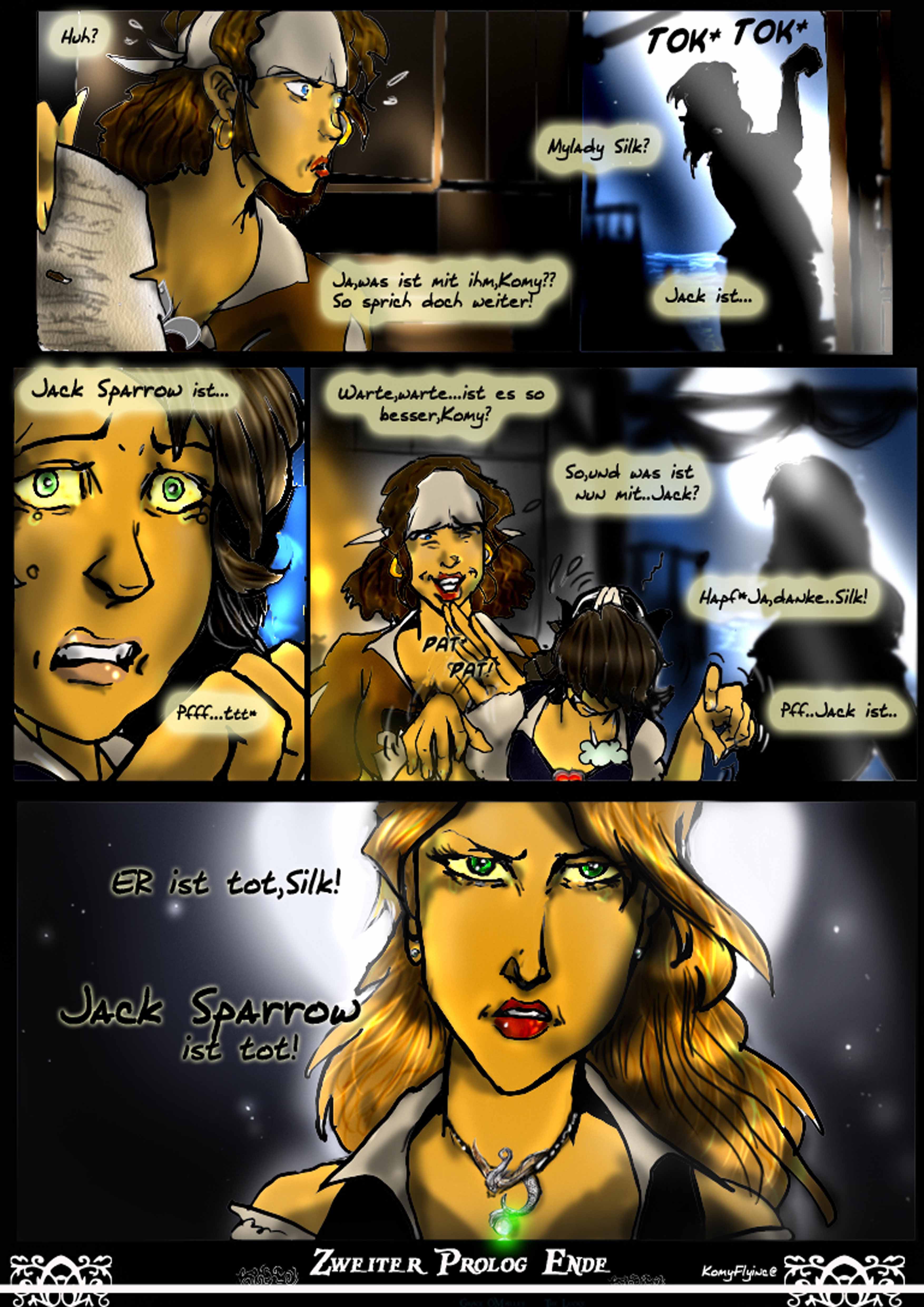 Lachend und höhnend erzählt er grade der Crew,dass er ihn Jack getauft hätte ,falls jemand noch Erinnerungen hegt an einen gewissen jemanden.Die Crew lacht und der Vollmond geht auf und bestrahlt das Deck.