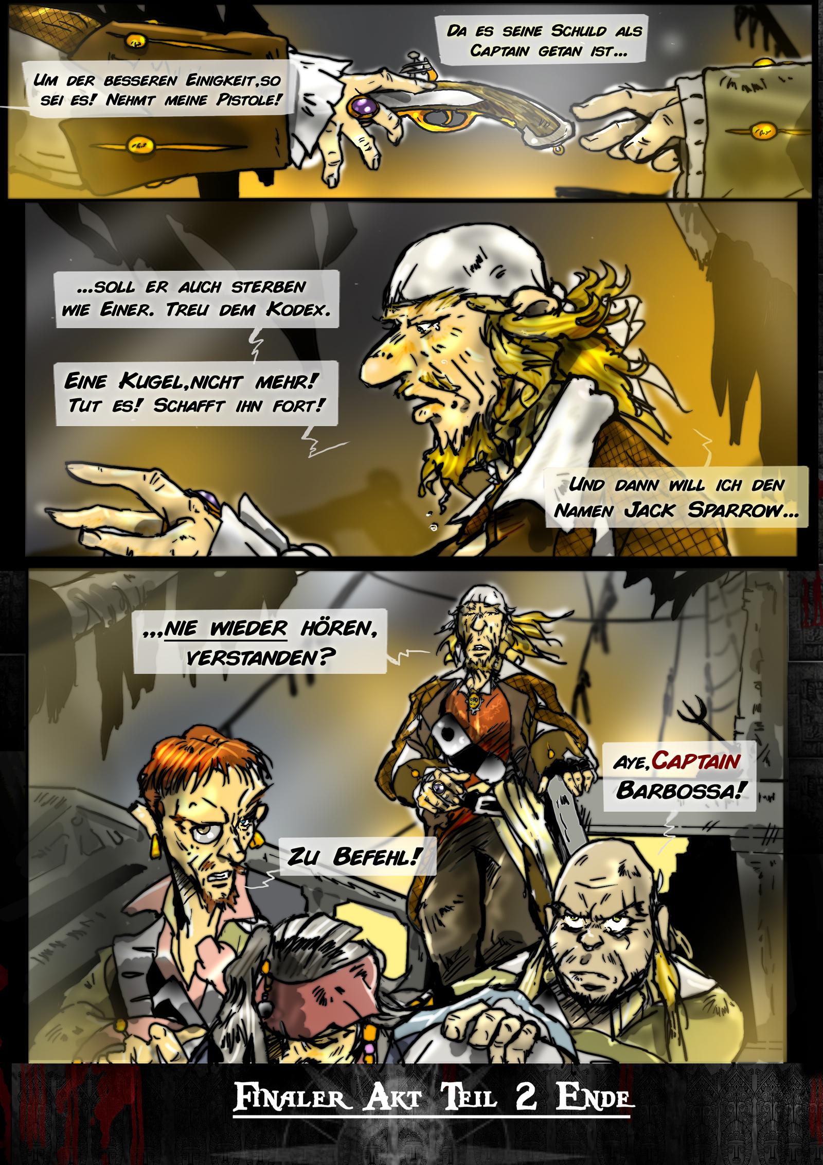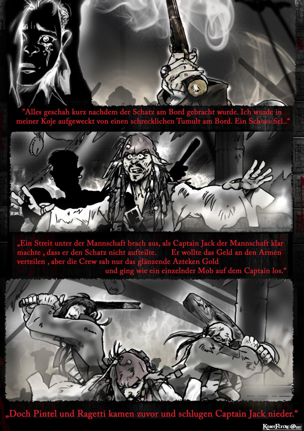Und weitergehts mit unserer Geschichte und die wahre Begebenheit kurz vor der Meuterei und mir scheint das es Hector Barbossa nicht angefangen hat,ganz im Gegenteil-er beschützt sogar Jack-was der traumatisierte Will Turner nicht mehr mitbekam-auch wenn es Barbossa ziemlich schüttelt