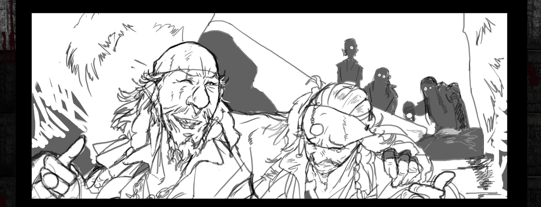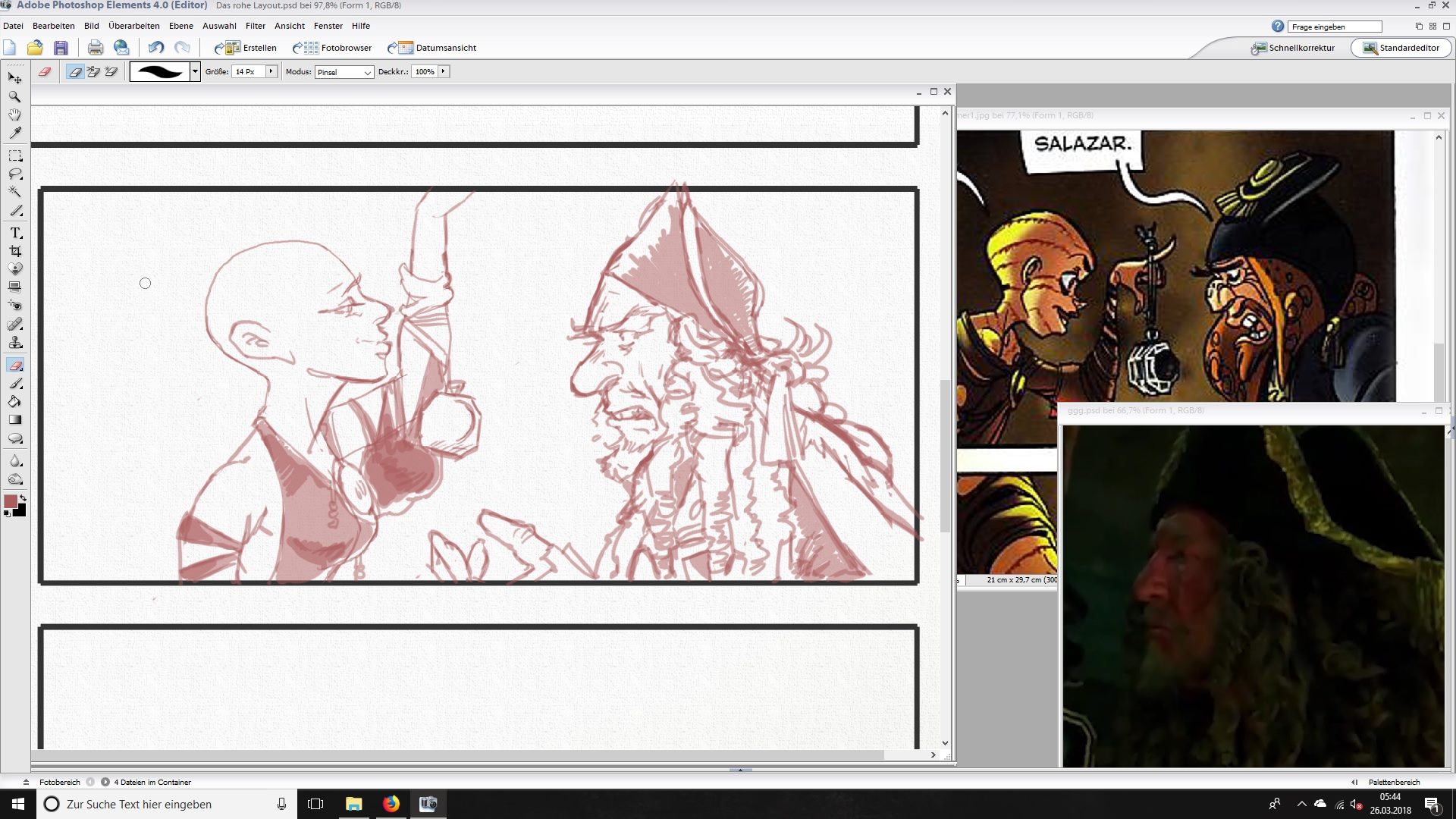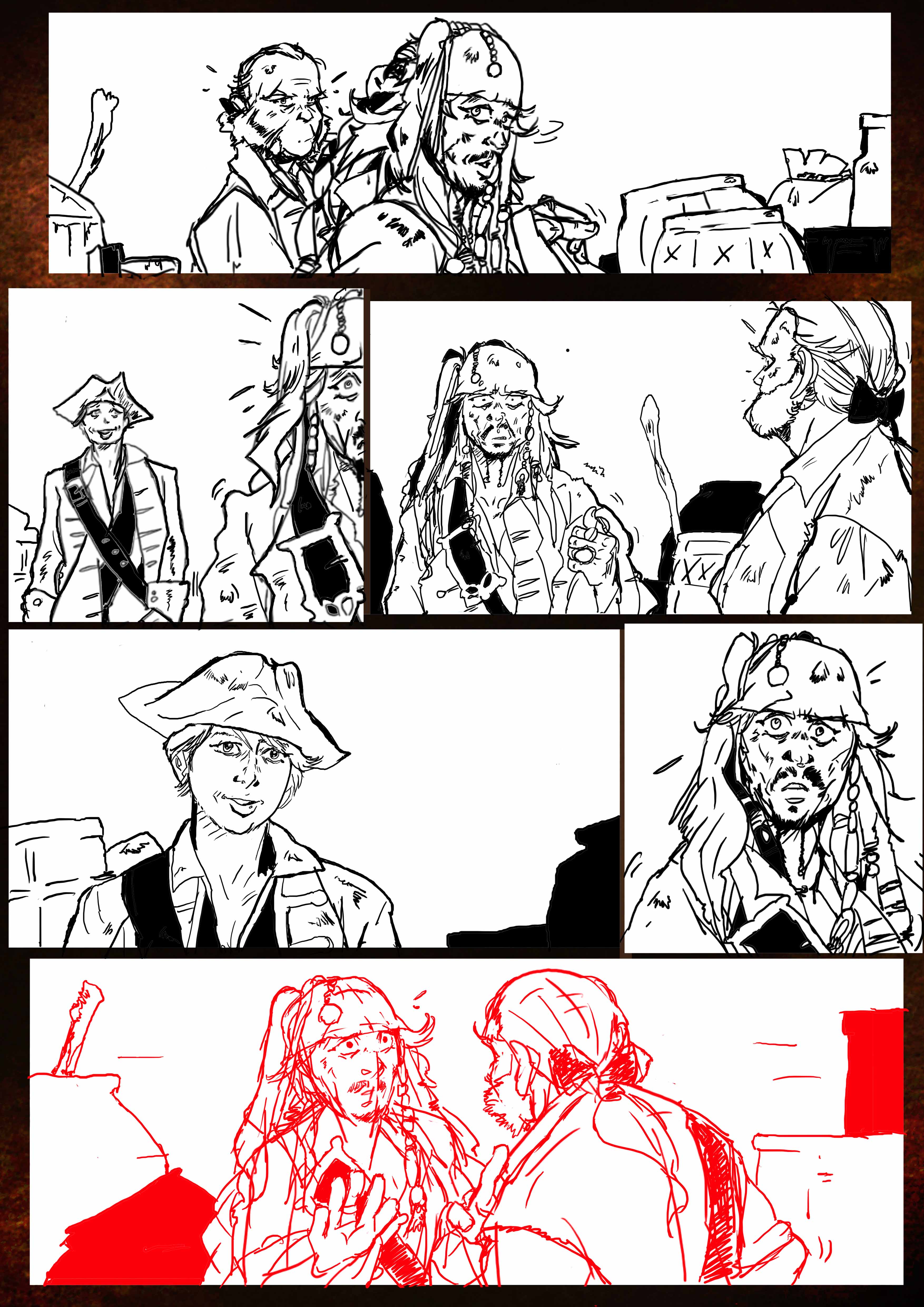 Als nächstes kommt die Rohzeichnung....so ne Art Skizze die die Figuren in Position setzt in den Sequenzen.Hier einige Arbeitsprozesse wo das passiert