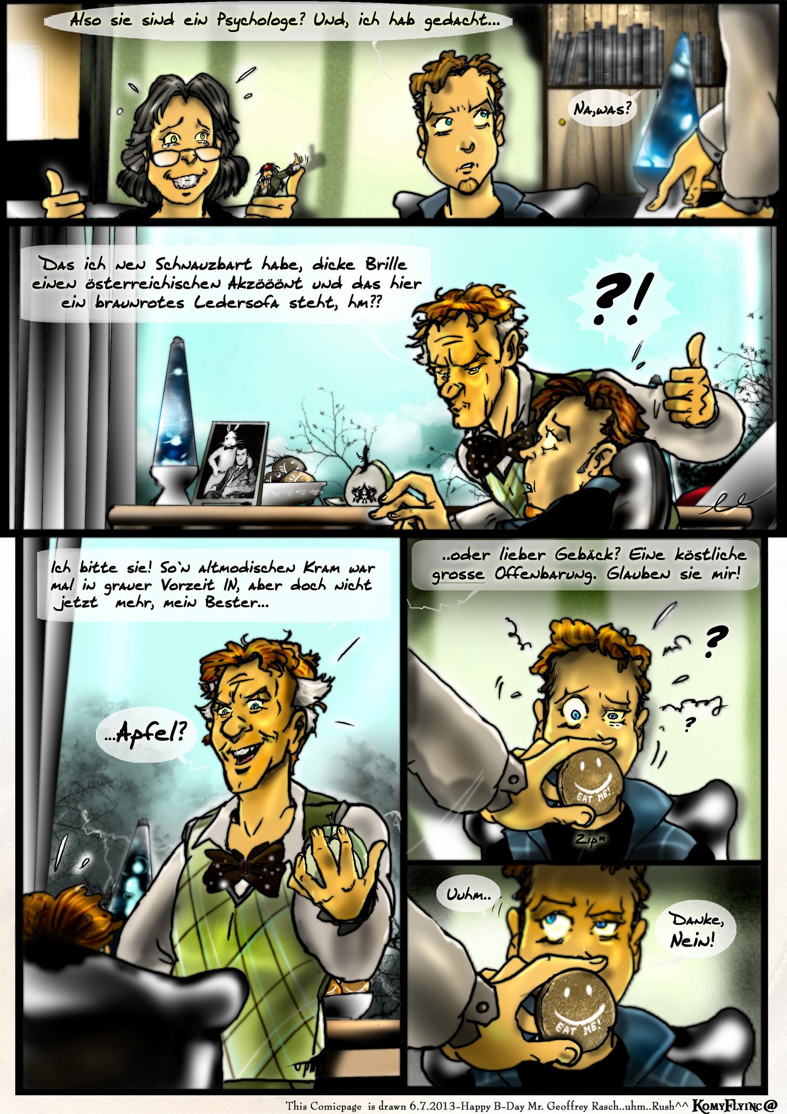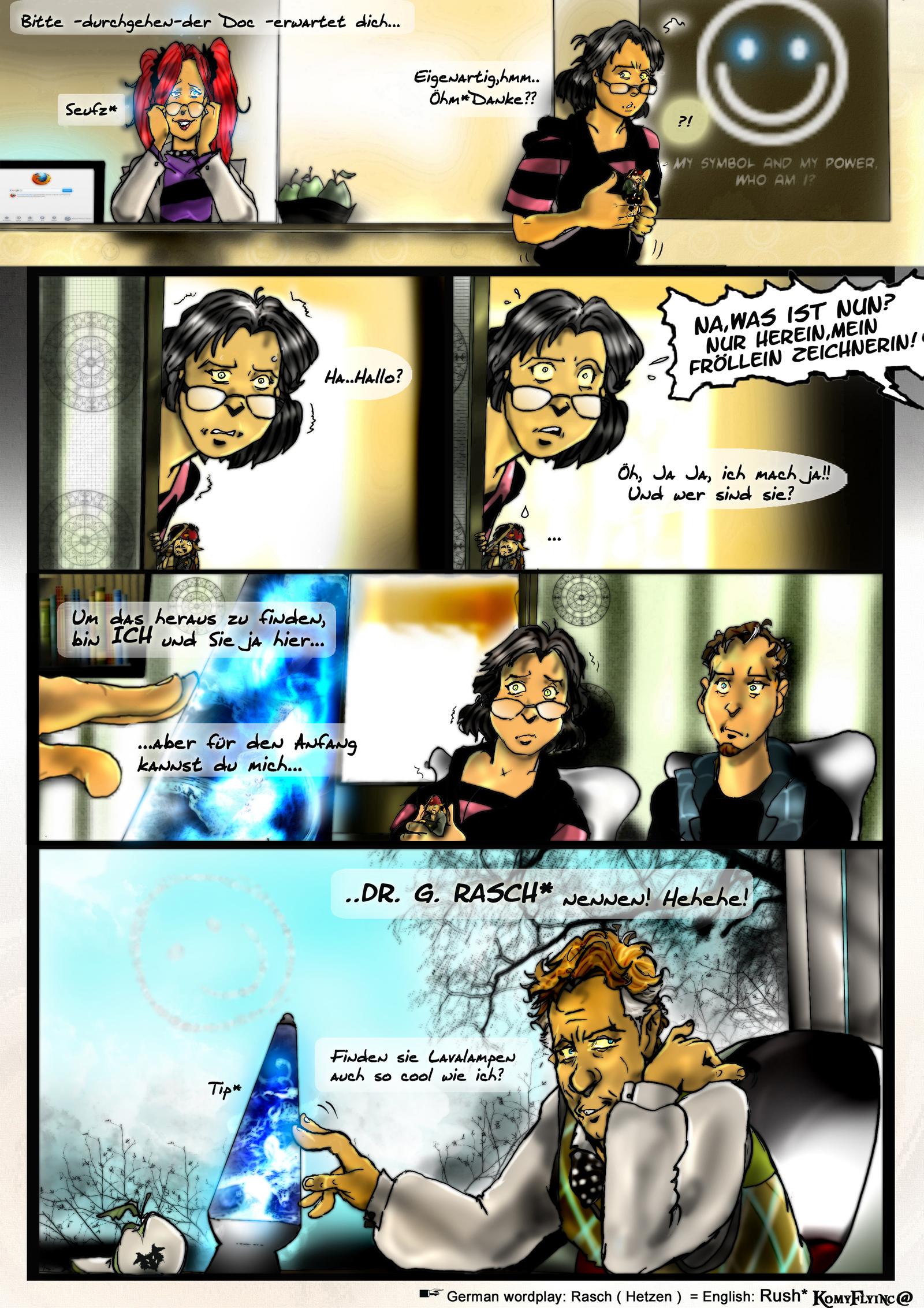 -Ich habe Hinweise versteckt im Comic wie zb in den Briefmarken des Pakets womit ich ankam, die Tapete des Wartezimmers,im Poster,