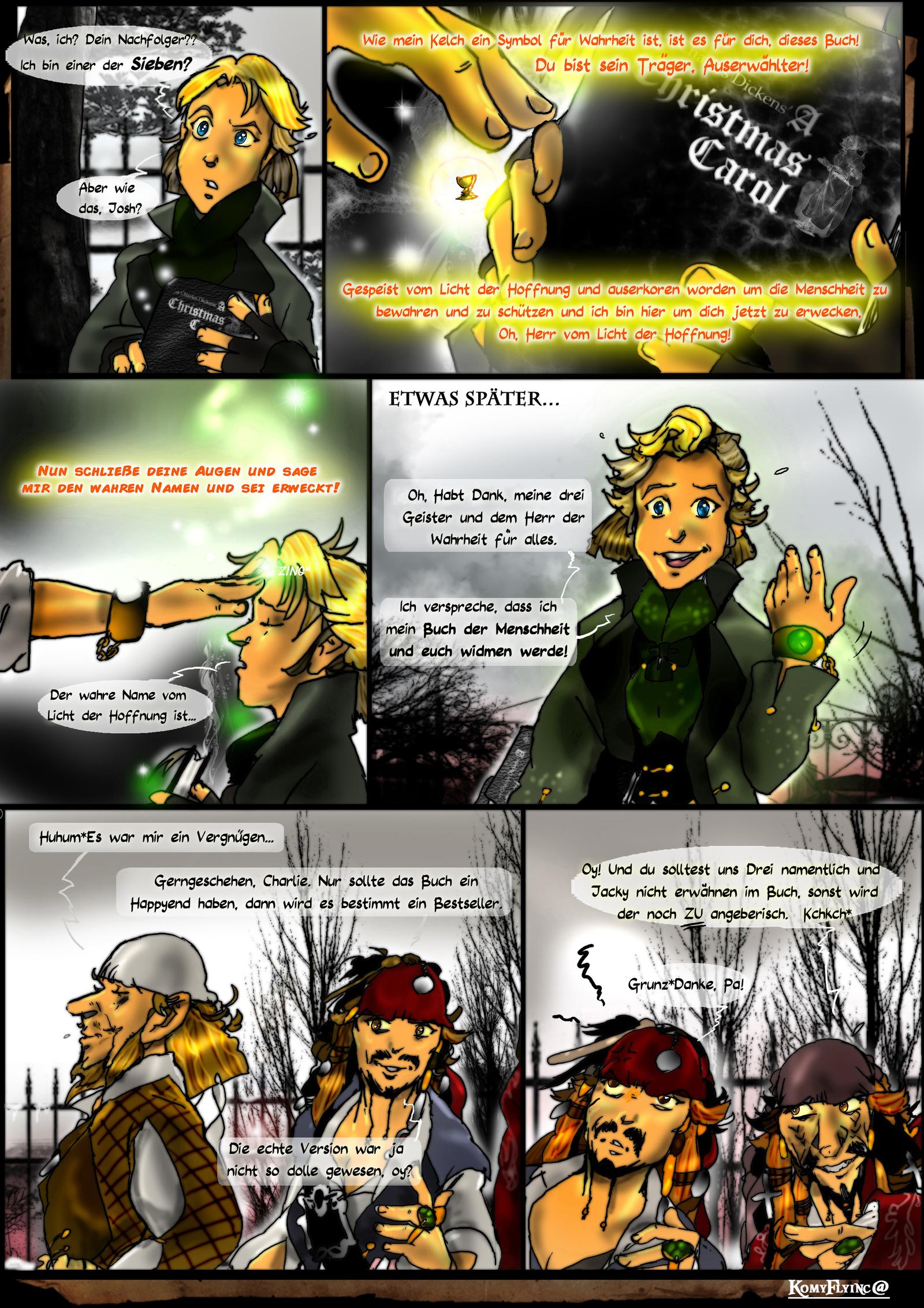 (Kleine Anmerkung: Ich habe am Auszuges des Charles Dickens Text nichts verändert,das steht genauso da!Was mich dann inspirierte aus Jack den vergangenen Geist der Weihnacht zu machen,obwohl in meiner ersten Version den Job der olle Kodexwächter T.S machen sollte)