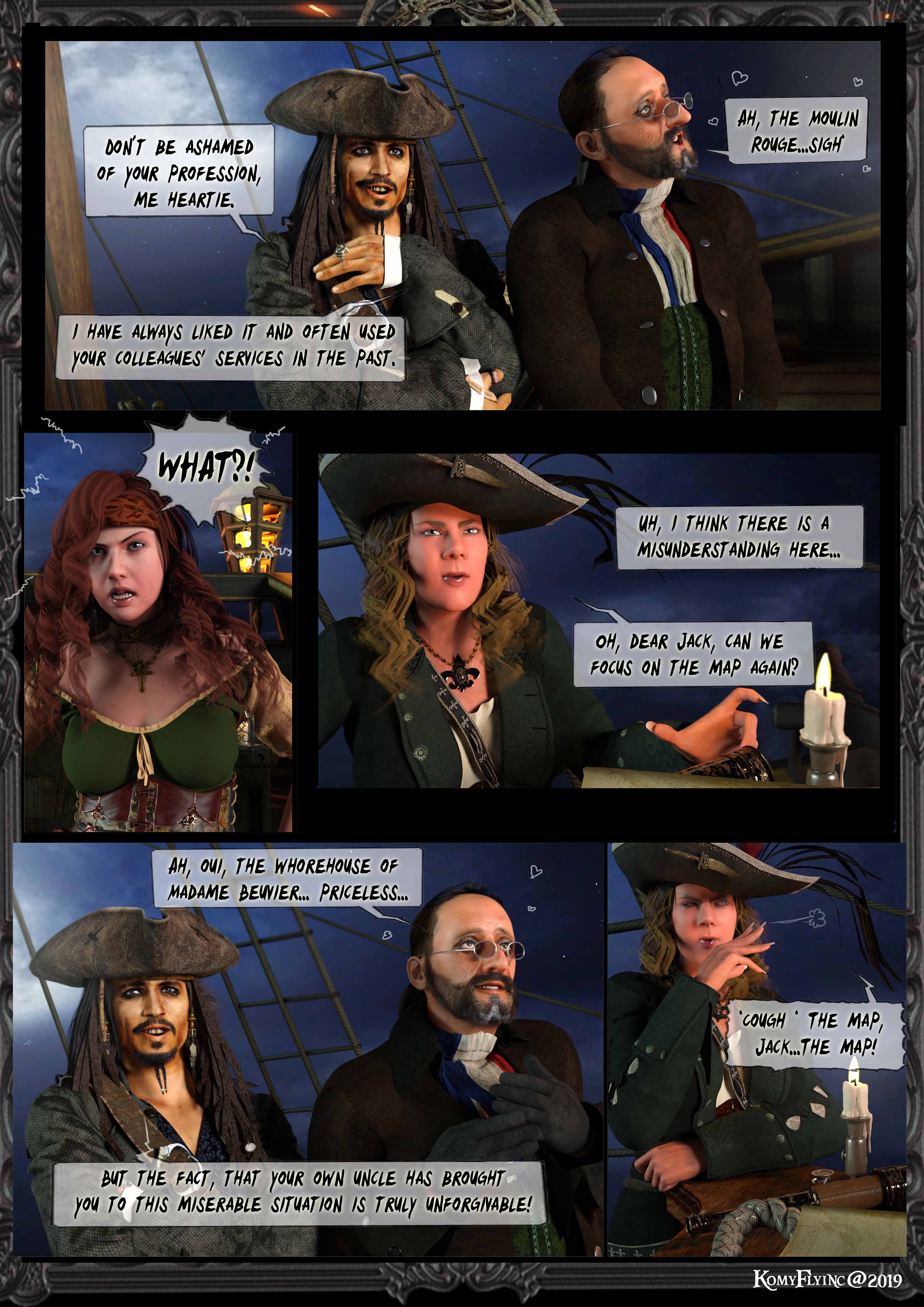 Jack verschränkt die Arme: Aber das euer eigener Onkel euch in diese Lage brachte,ist wirklich unverzeihlich.