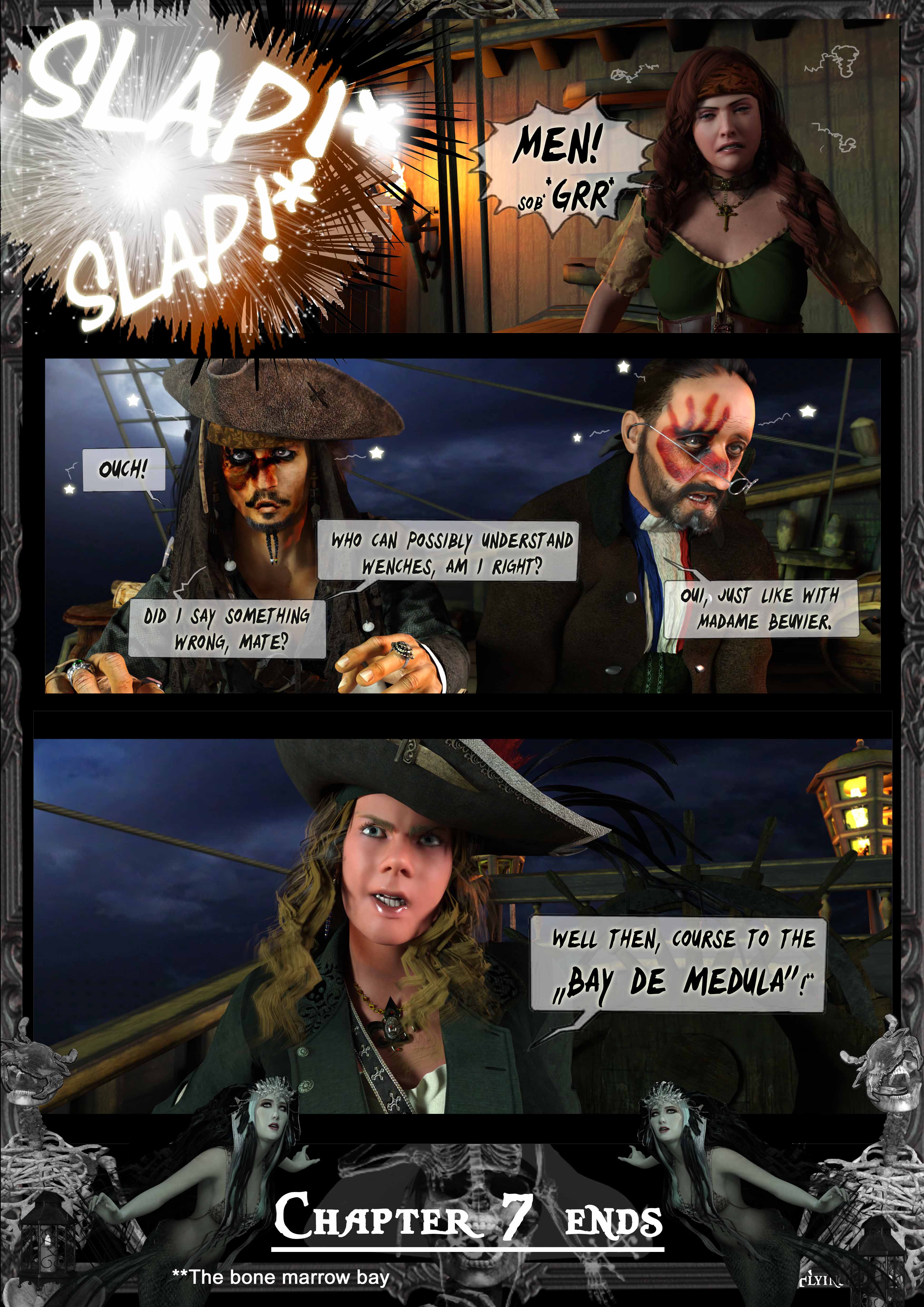 Barbossa :Flieht und nehmt eure dreckige Seelen in die Hand,der Feind wird uns bald schinden.