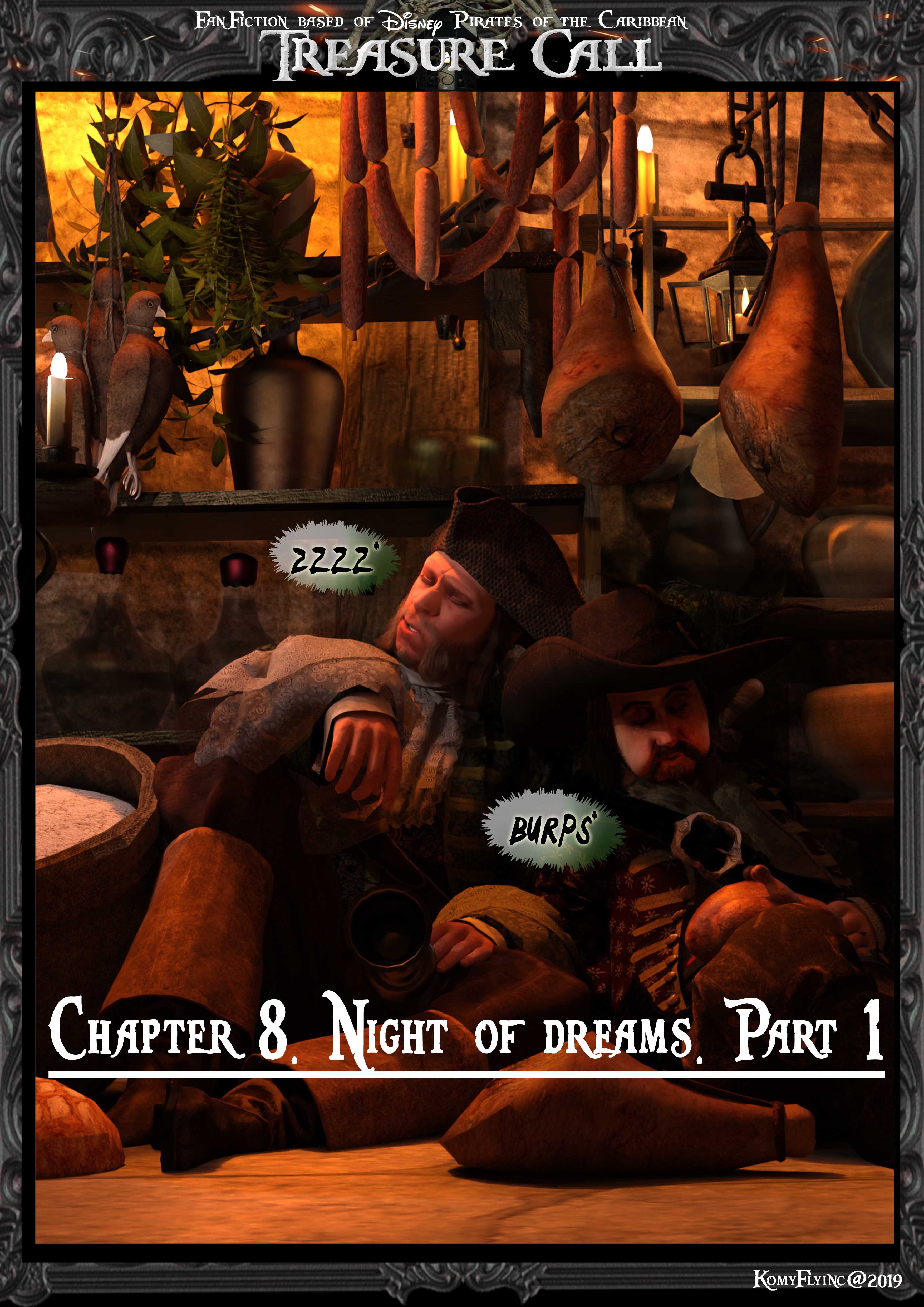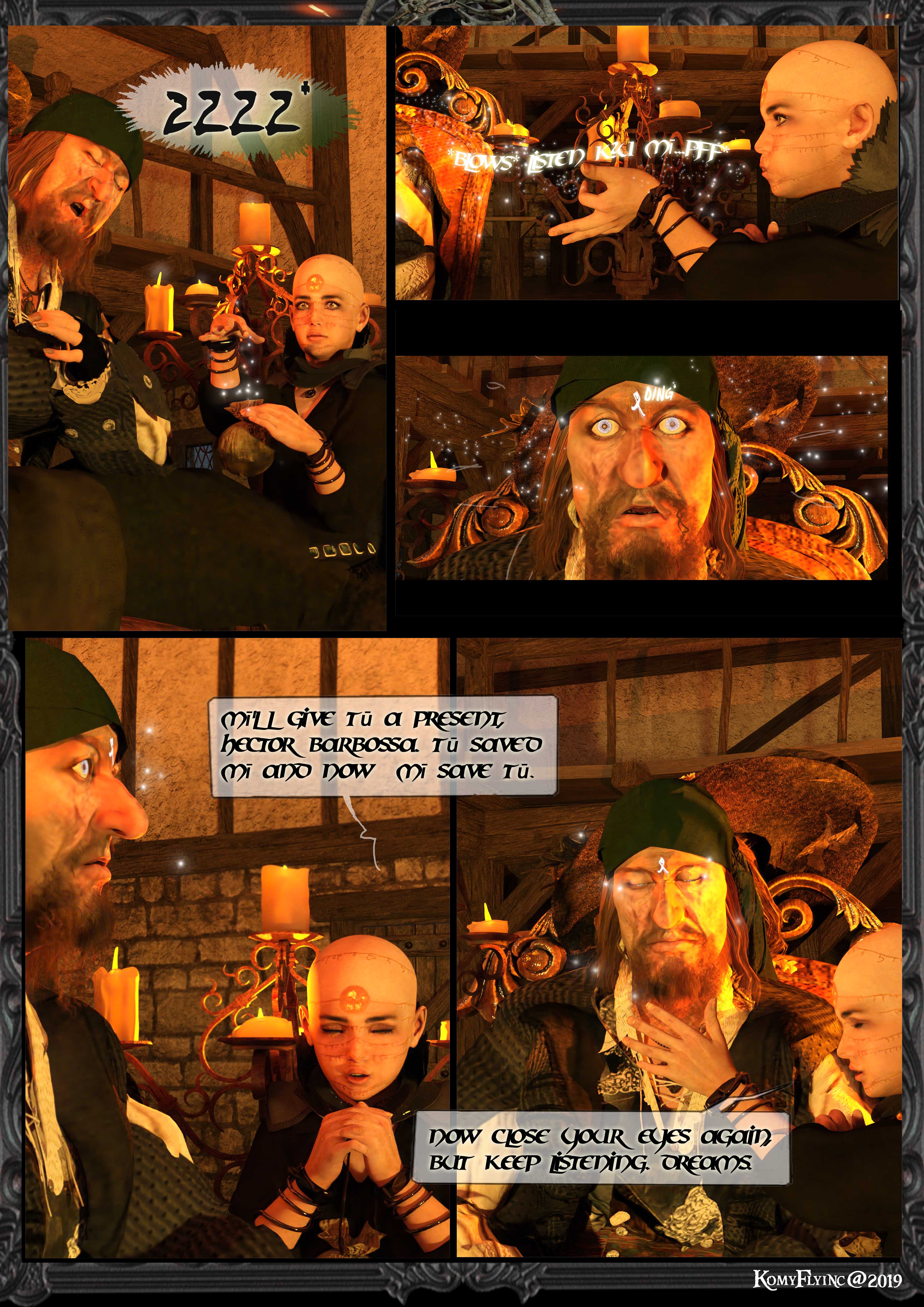 Ja,ganz recht,der allseits wachsame Barbossa schläft wie ein Baby im Abrahams Schoß ..Er schnarcht sehr laut.