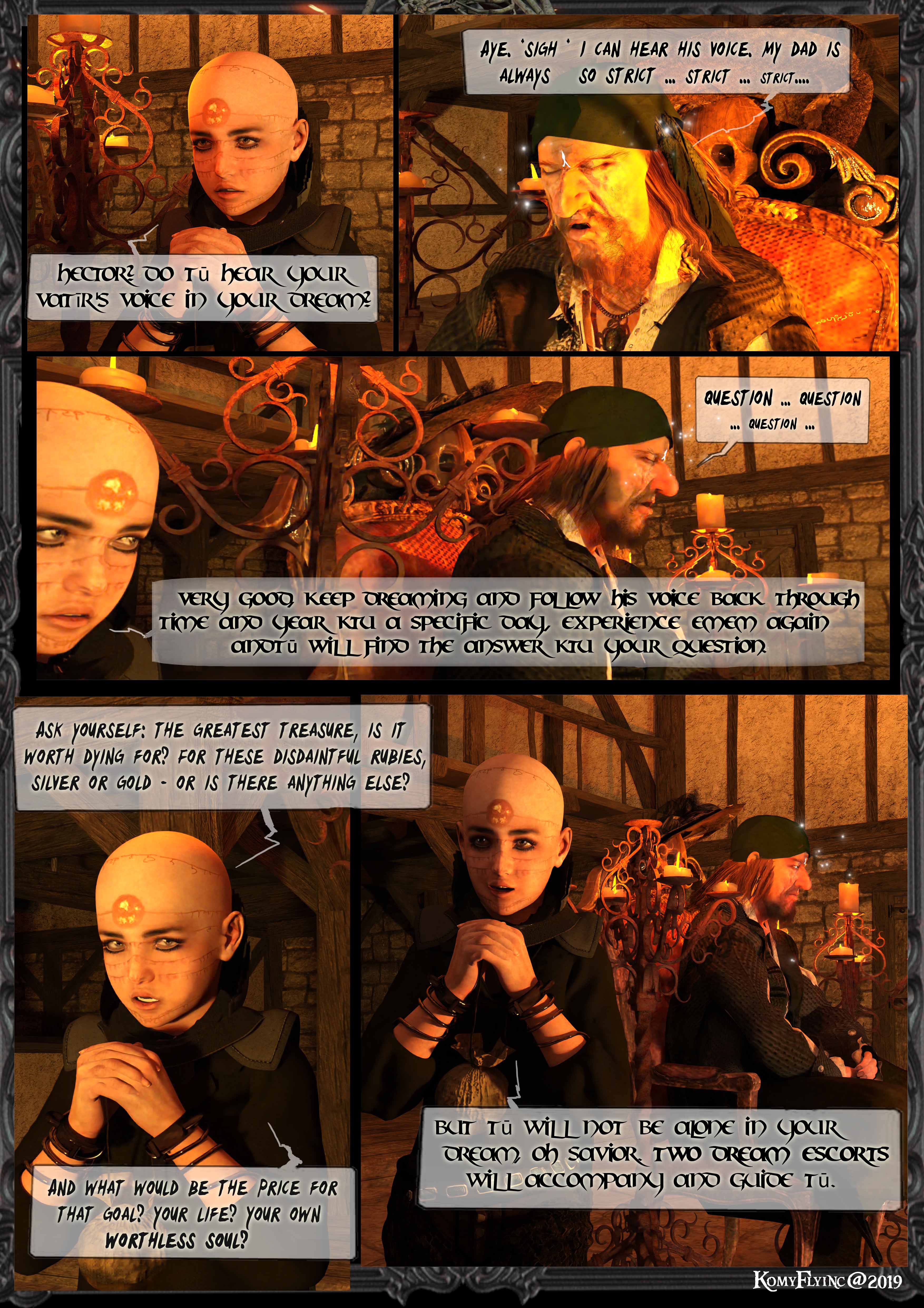 Sie spricht aber in ihrer merkwürdigen keltischen Sprache und doch versteht es Hector trotzdem auf magische verhexte Weise.