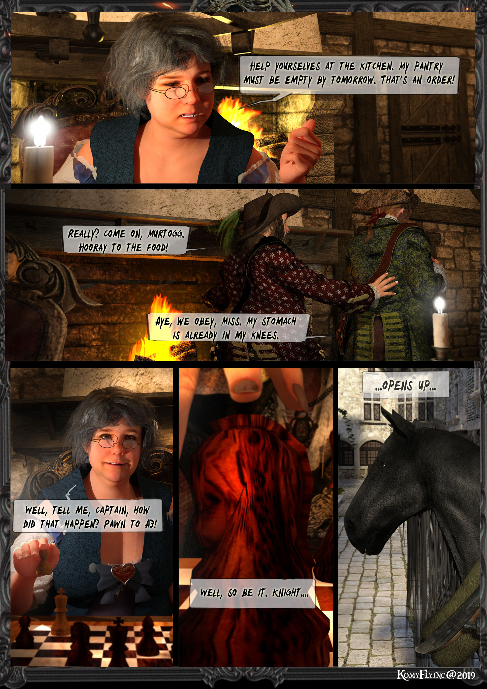 Hector schaut streng zu Murtogg mit seinen neuen Zwicker(ein Monokel),was sein linkes bekanntes blaues Schlaaaaaangenauge nun noch extremer macht: