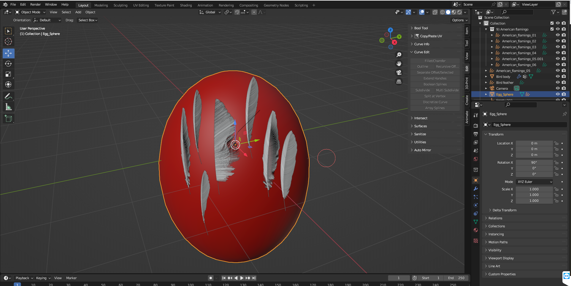 Tja reinholen kann ich die Federn über append, ich rufe den Ordner Objekt auf und klicke auf eine Feder. Die Feder ist da ... ich möchte die Feder auf dem Ei haben, aber wie? Mit dem Tut komm ich natürlich nicht klar, obwohl ich Stunden damit zugebracht habe. Wahrscheinlich muss ich noch andere Ordner in Blender holen?