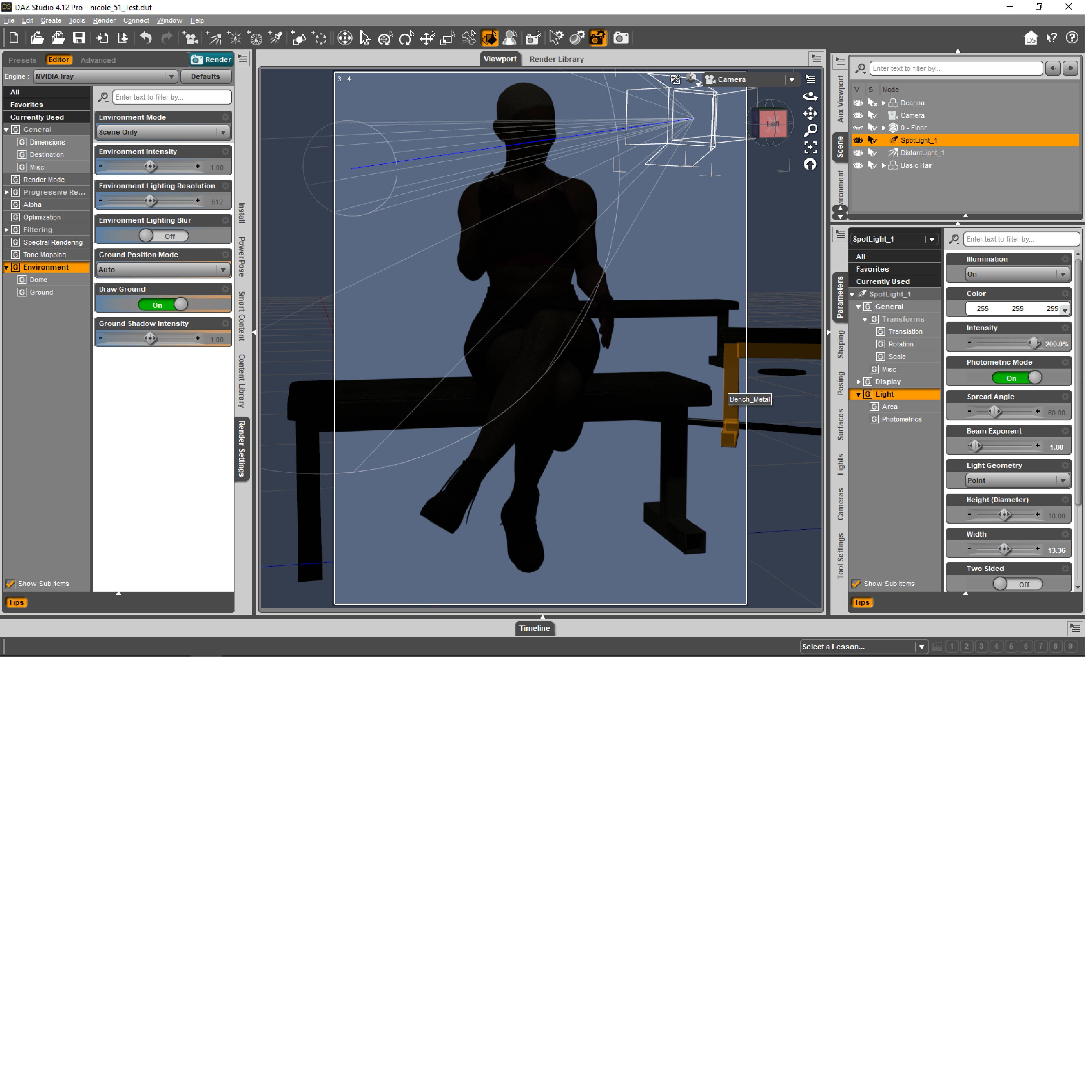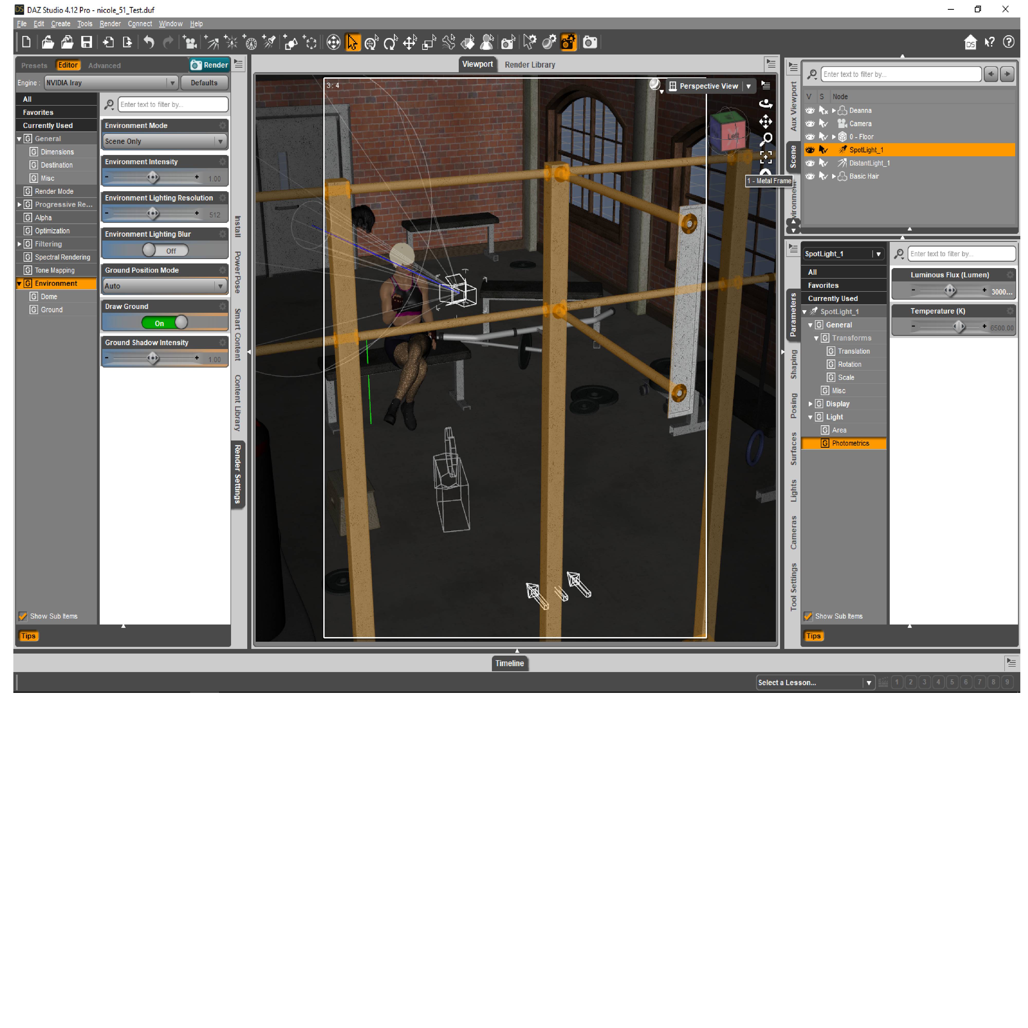 Hier nochmal die zwei Screenshots man sieht das Spotlight, das Distanzlight und die Kamera