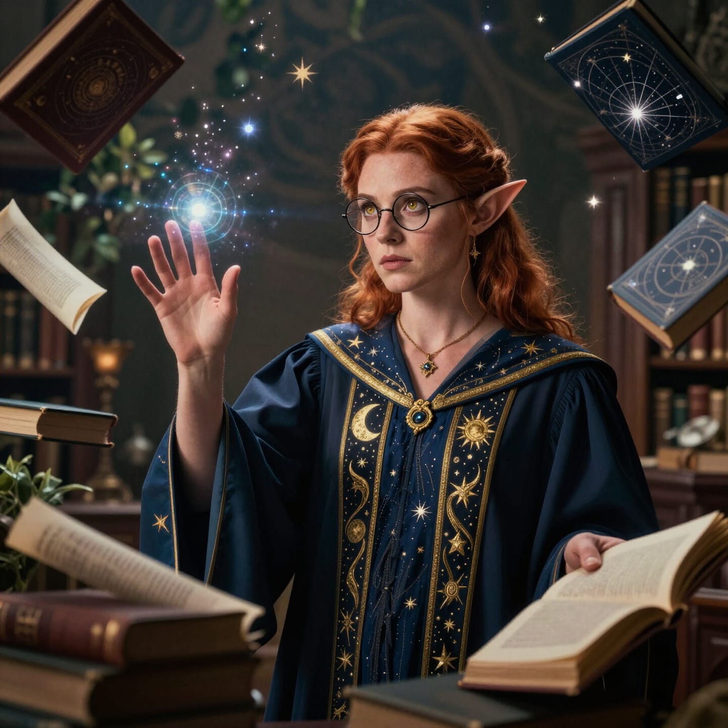 Da habe ich auch gepromptet: klein, dürr, zerzaustes Haar. Und die Brille natürlich. Hat funktioniert.