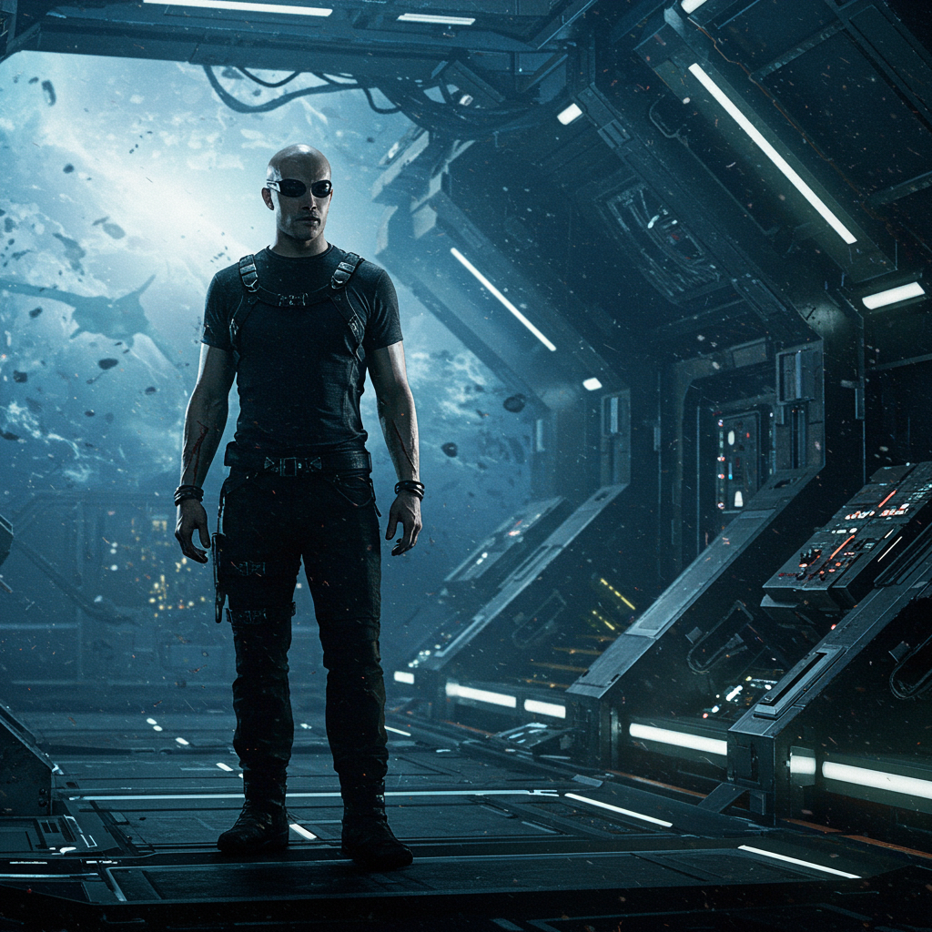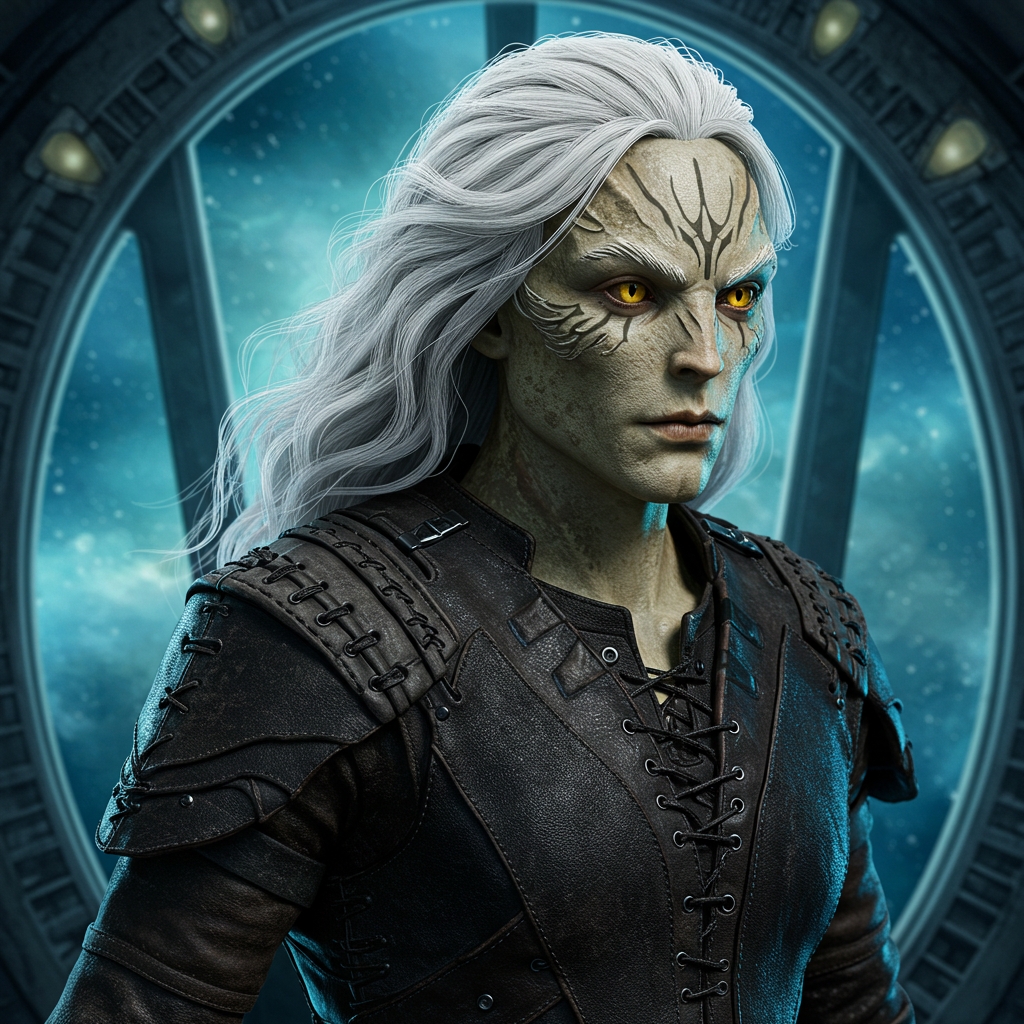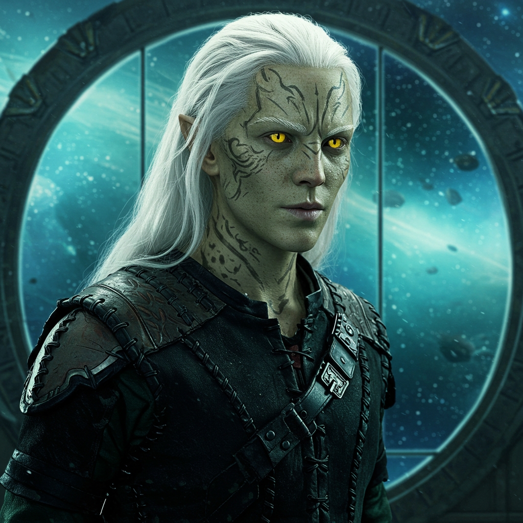 Mit ImageFX hat das gut geklappt. Sogar diesen typisch blau-grünen Sternenhintergrund hat mir die KI erstellt. Nur für die Hautöffnungen auf den Wangen habe ich mit PS etwas nachgeholfen.