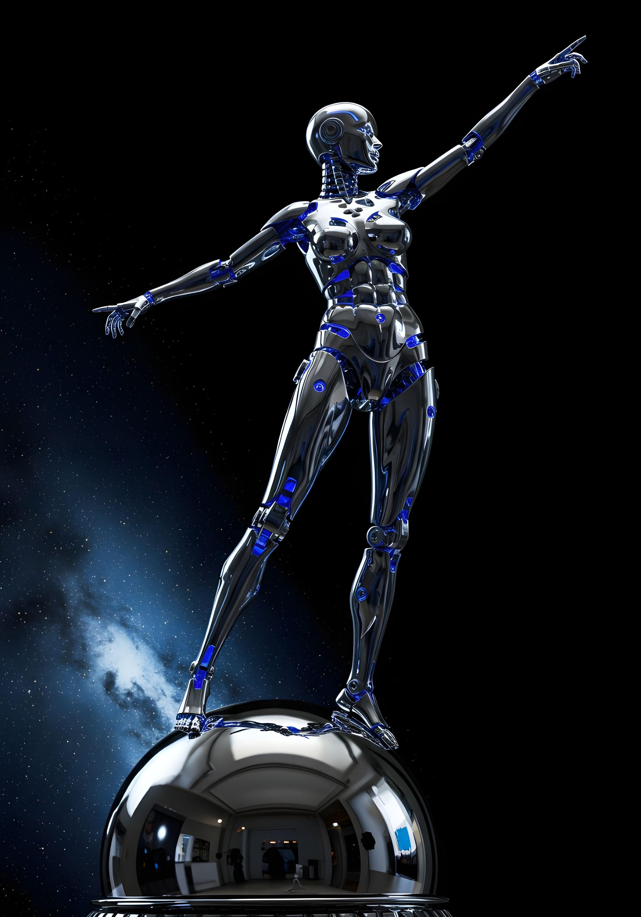 Boris Valejo hat einmal ein geniales Bild eines Chrom-Roboters gemalt. Dazu hat er einen männlichen Bodybuilder als Vorlage genommen.