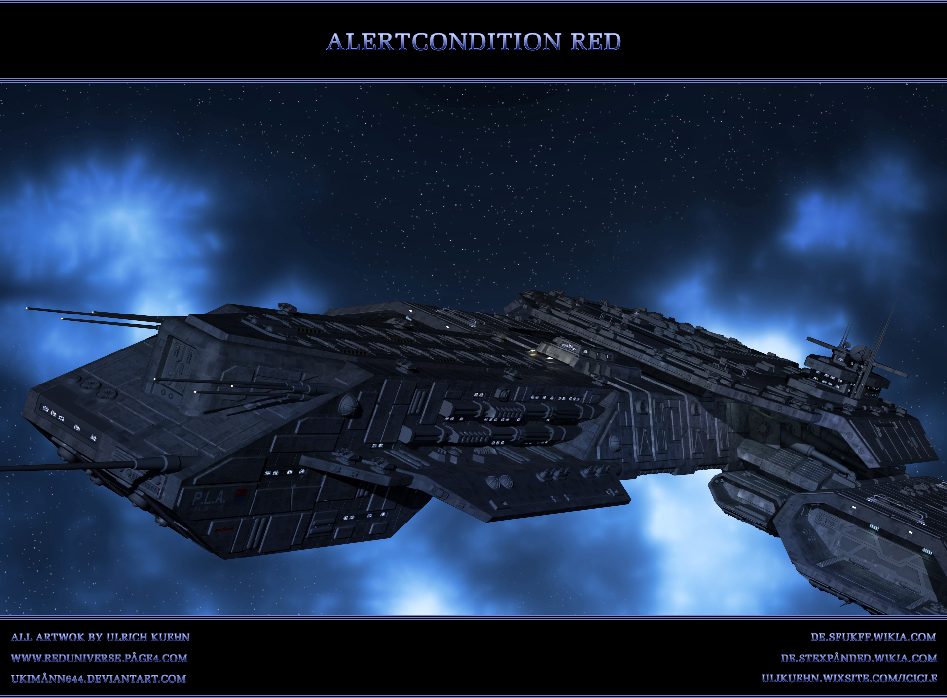 Ähnlich ist die Rechtslage übrigens auch bei 3D-Modellen zu diversen Franchises. Auch wenn ein Modell ein eigenständiges Design hat, wie meine EXETER-KLASSE. Der Hobel hat eine diskusförmige Primärhülle und Warpgondeln mit blauen Intercoolern und orangen Bussard-Kollektoren. STAR TREK scheint also deutlich genug durch, und damit wird es zum Eigentum von CBS/Paramount oder wer immer gerade die Rechte an ST hält.