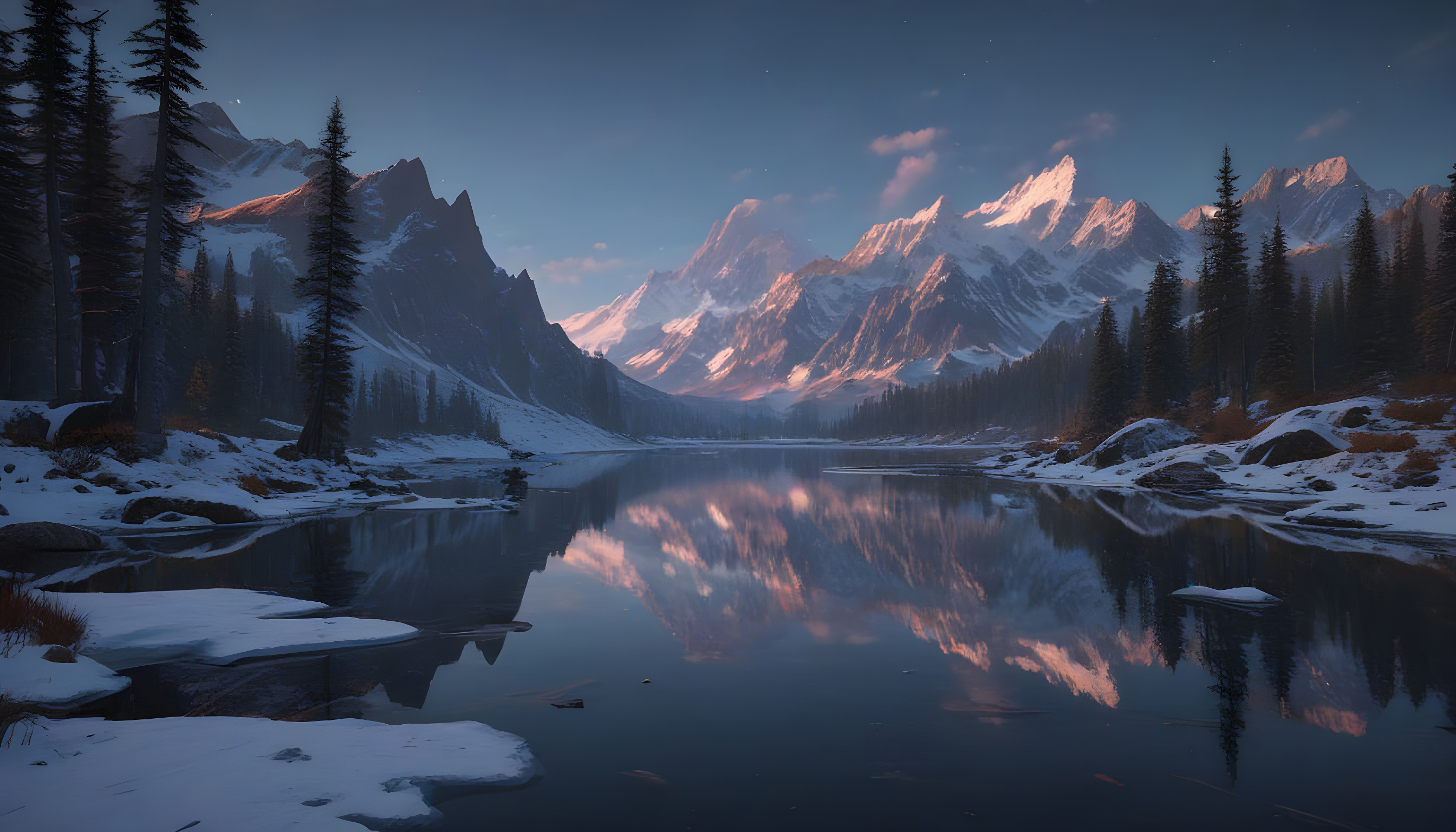 Zuerst eine Winterlandschaft in Wallpaper-Auflösung.