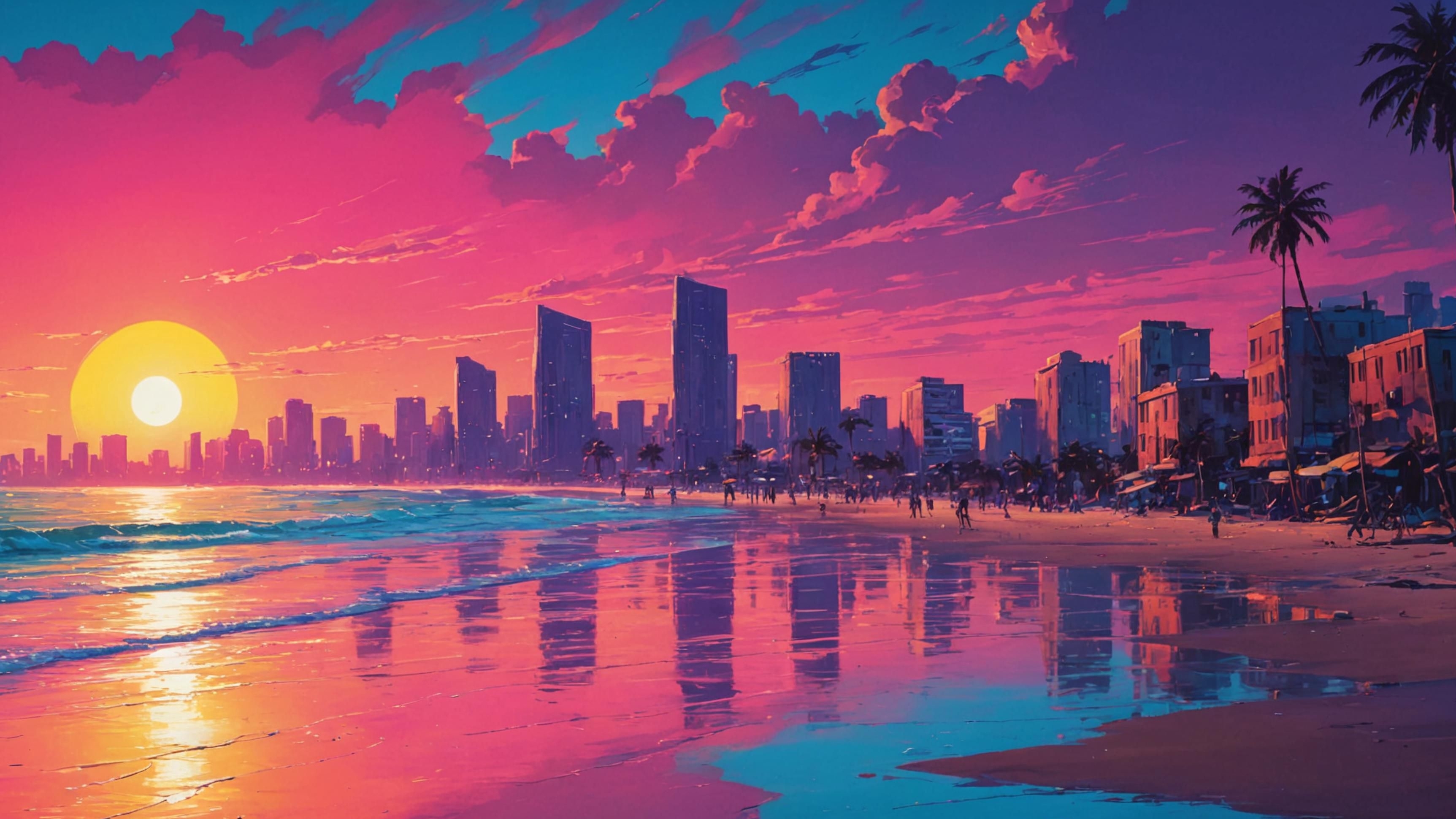 Hier eine Neon-Stadt, ebenfalls mit MonicaAI.