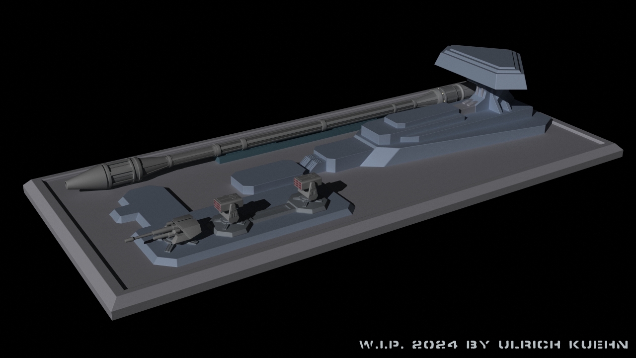 Ich habe in der Galerie versehentlich die ersten Testszenen hochgeladen und nicht die finalen Bilder. Darum hier die eigentlichen Szenen, wo auch die Details des Aufbaus bei den Landeplattformen drauf sind.
