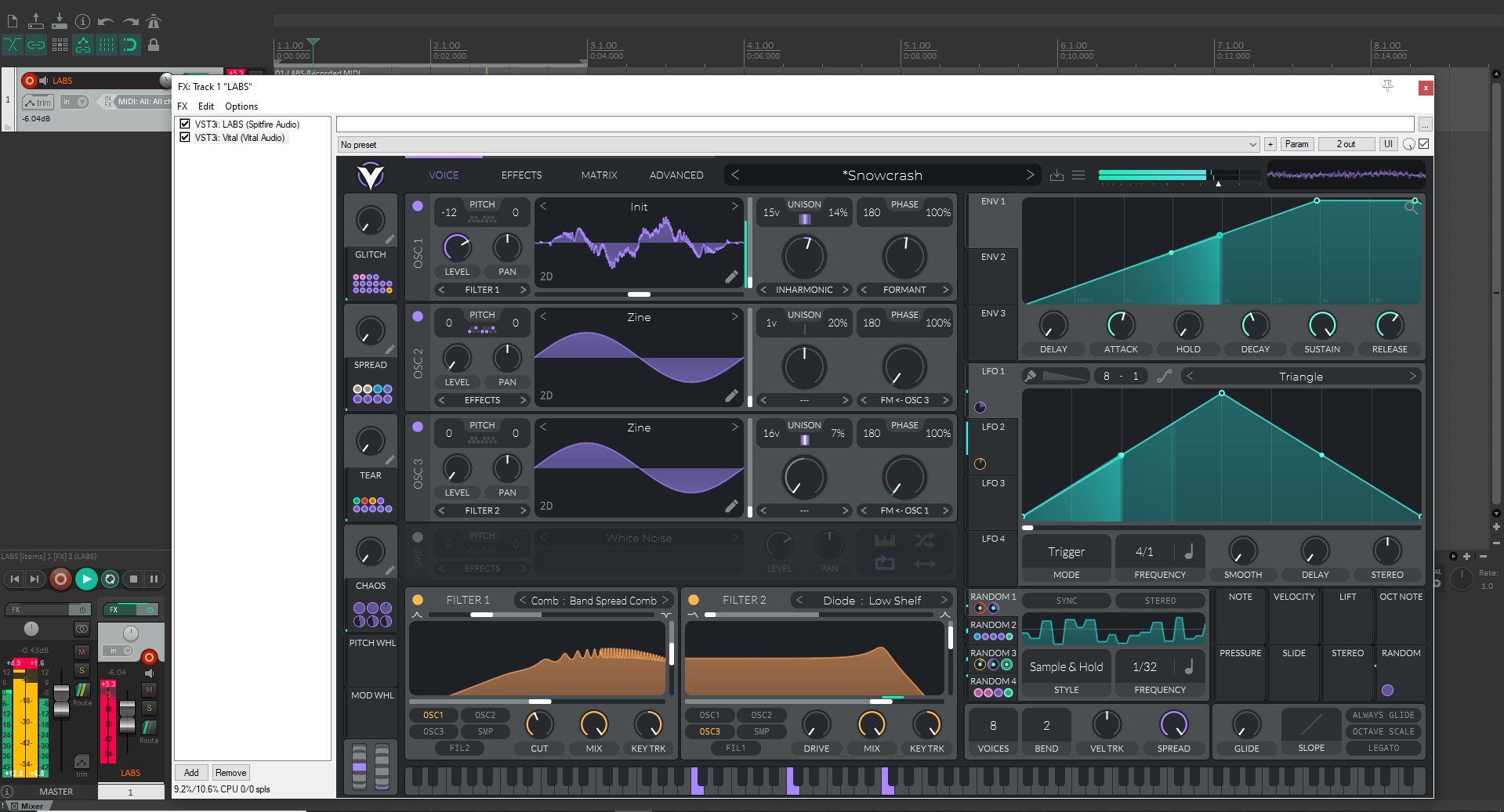 Neben den vorgestellten Spitfireaudio-VSTs nutze ich am liebsten den ebenfalls kostenlosen VITAL-Synth. Damit ist Sounddesign möglich bis der Bart durch den Tisch wächst.