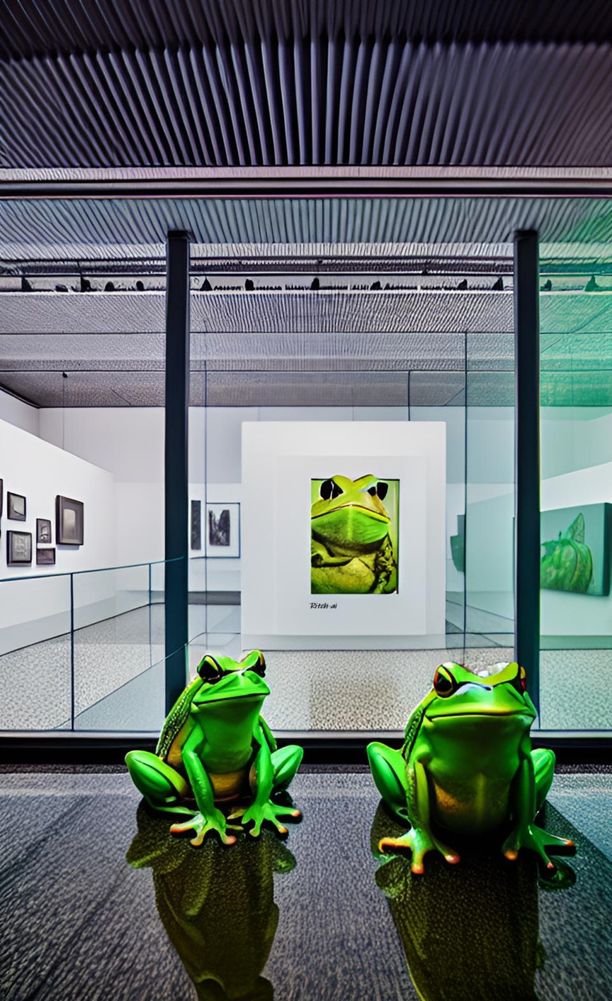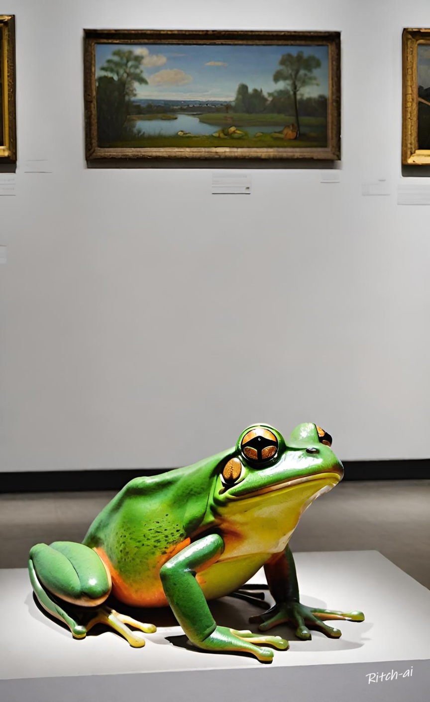 Froggie ist hier kein plastisches Exponat, sondern der Ausstellungsführer, der den Besuchern die Inhalte der Kunstwerke in internationalem QUAK erklärt. :nachdenklich: